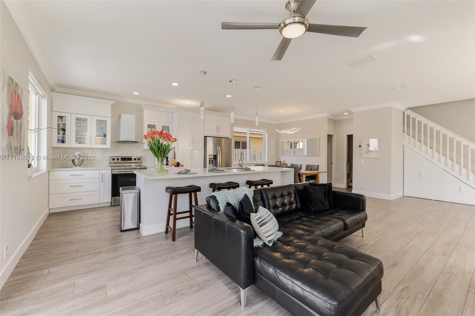 Amazing completely remodeled home, beautiful open layout, 4 beds, 2.5 baths. Home features Spanish Porcelain floors throughout main living areas and vinyl waterproof floor upstairs. New kitchen cabinets, quartz counter top and island. New Stainless Steel Appliances. Freshly Painted Interior and Exterior special paint with 10 year warranty. Crown moldings, New roof and hurricane impact windows. AC features iwave and nest. A + Schools. Gator Run Elementary School, Falcon Cove Elementary School, Cypress Bay High School. Close to I-95 and 595