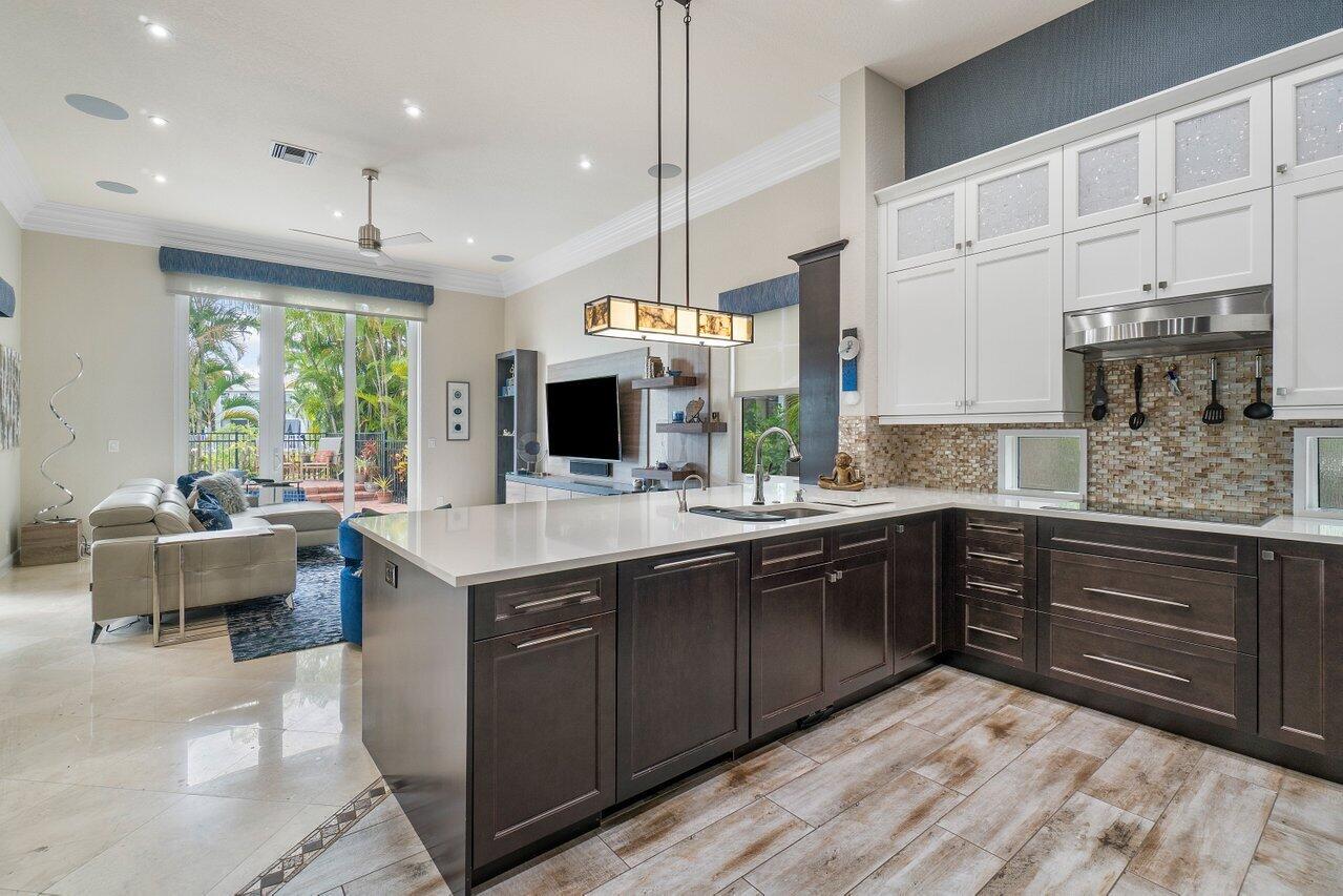 Stunning single family home at The Shores! No expense spared, upgrades galore! True pride in ownership at this one story, 4 bedroom, 3 bath home just under 3000 square feet. *4th bedroom is currently an office* Enjoy amazing sunsets from the tropical backyard with heated salt water pool, covered patio & outdoor kitchen. Impact glass windows and doors throughout. A 'smart' home where you can truly do it all from your phone (AC's, front door lock, garage, lights, speakers) complete with outdoor cameras, whole house sound system indoor & outdoor via Sonos/Control 4. A modern kitchen boasts Jenn-Air induction cooktop, double ovens w/ warming drawer. Additional upgrades include: custom built ins, wine fridge, crown molding, electronic blinds, aqua link pool system. Furniture is negotiable!