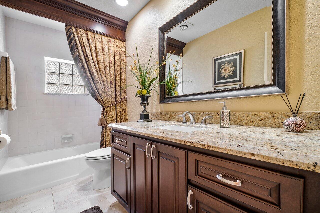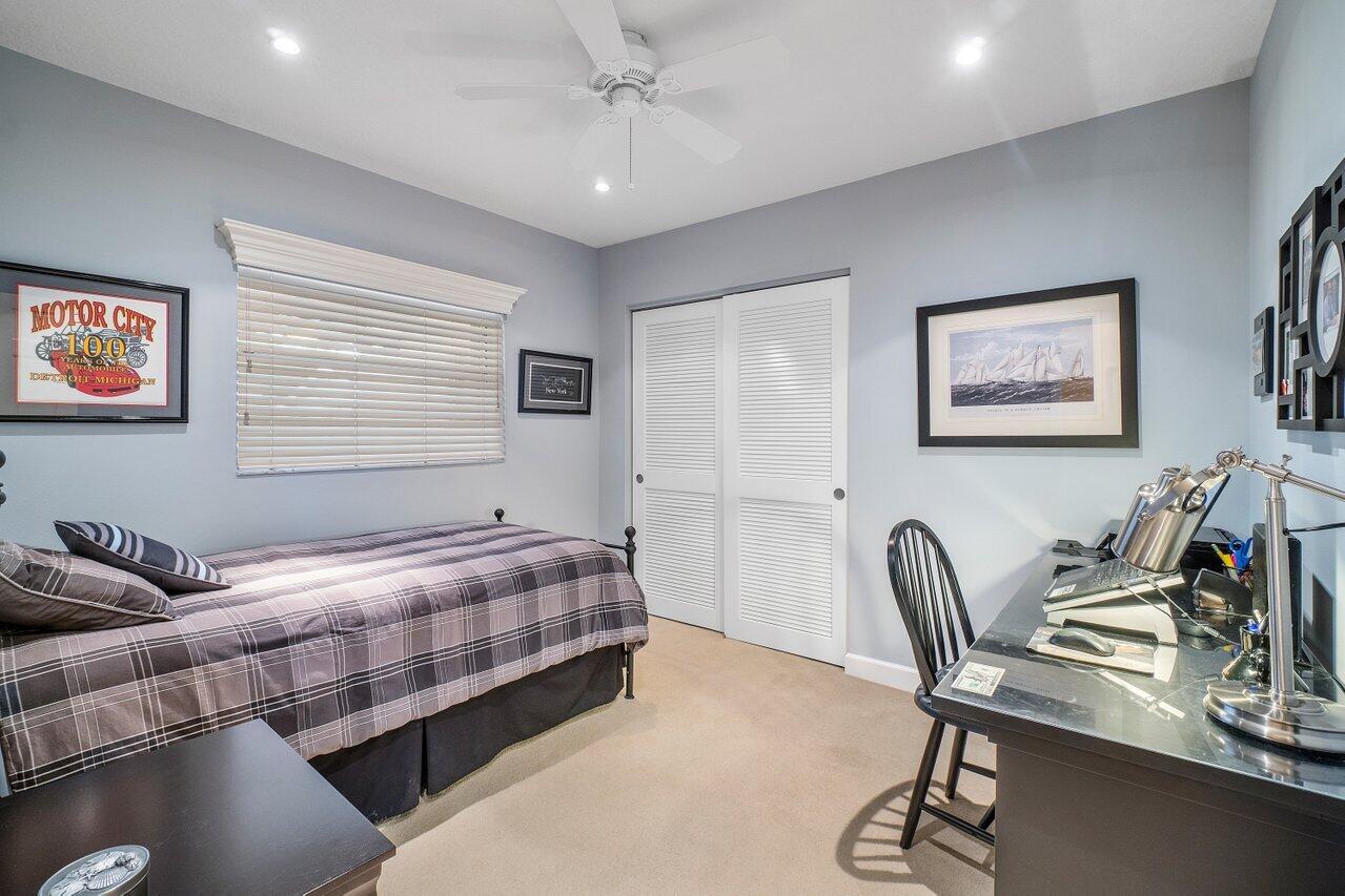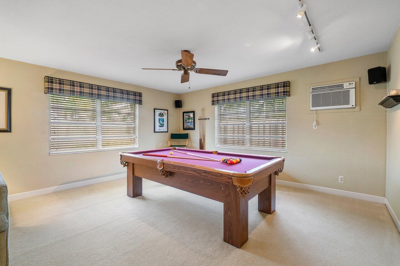 Original owner shows pride of ownership in Palm-Aire Village East cul-de-sac location! Spacious 28 x 17 family room comes with surround sound & ping pong/pool table. New roof in 2021, AC compressor & handler 2019, oversized garage offers laundry area, attic storage & new door in 2017. New refrigerator 2022, fenced yard, underground sprinklers on separate irrigation meter, tiled patio is TV ready. Yard has room for an L shaped pool. Palm Air Village Park offers volleyball, basketball, racquet ball courts, walking trail & pavilion. Please do not approach property without appointment & your agent.