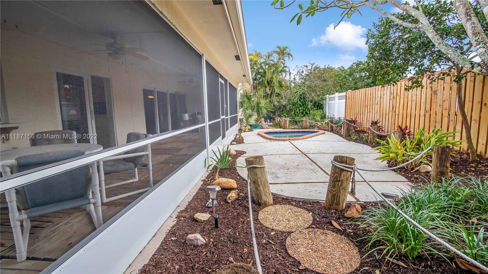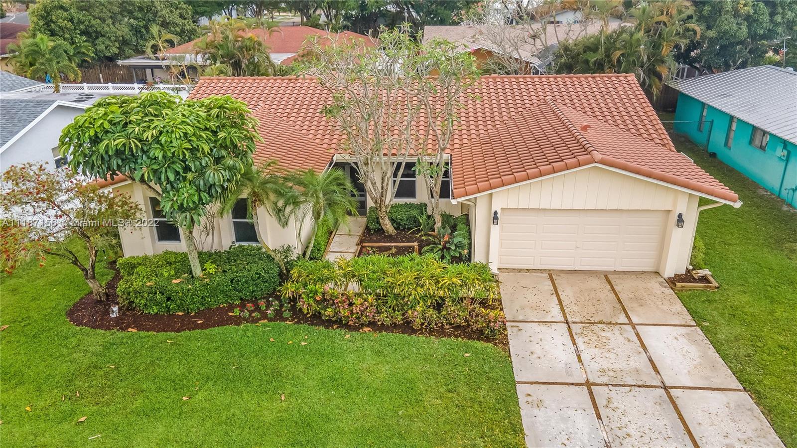 Located in the exclusive neighborhood of Plantation Hills, this oversized 3 bedrooms, 2 bathrooms, -one of which is a cabana bath- home features an upgraded kitchen with stylish custom cabinets & and stainless steel Samsung appliances. Rolled tile roof installed in 2017. Convenient hurricane rated impact windows and doors. 2021 Carrier HVAC unit. Walk-in closets in all bedrooms with satisfying space perfect for storage. Spacious screened patio lania overlooking a jacuzzi and deck, surrounded with lush landscaping ideal for your quiet evenings. Spacious laundry room off the kitchen. Large wood workbench & metal shelving in the garage are included on the sale. No HOA. Minutes to Central Park, Broward Mall with its amenities & highways. 20-minute drive to FLL International Airport.