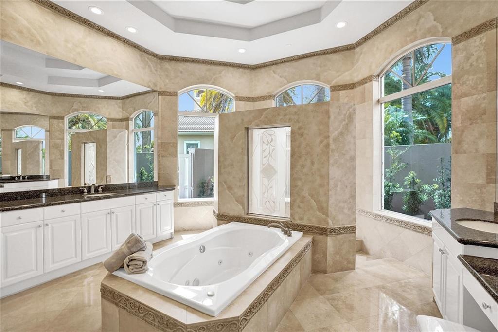 One of Heron Bay's Premier Waterfront Lots. Over 1/2 acre with Wide Water Views. Single Story Home on Cul-de-Sac Lot. Open & Spacious w/tons of Natural Light and Voluminous 12' Tray ceilings. 2 Living Rooms, 5 Beds, 5 Baths, Office w/custom cabinetry, plus a Bonus room. Over $325,000 in upgrades (by previous owner-list attached). Stunning updated Kitchen w/Butler's Pantry features Granite Countertops, Wolf, Miele and Subzero Appliances. Porcelain Tile floors in Living areas, Wood and Carpet in Bdrms. Owners Suite w/Exercise room and 2 walk-in closets. Screened-in Patio w/outdoor Kitchen. LED Lighting. Impact Windows & Doors. Lush landscaped lot w/generous side yard, Tropical Pool w/spa, and spacious 3 Car Garage. Gated Community w/Resort style Amenities.