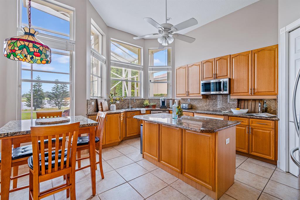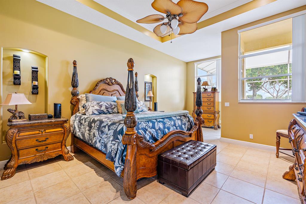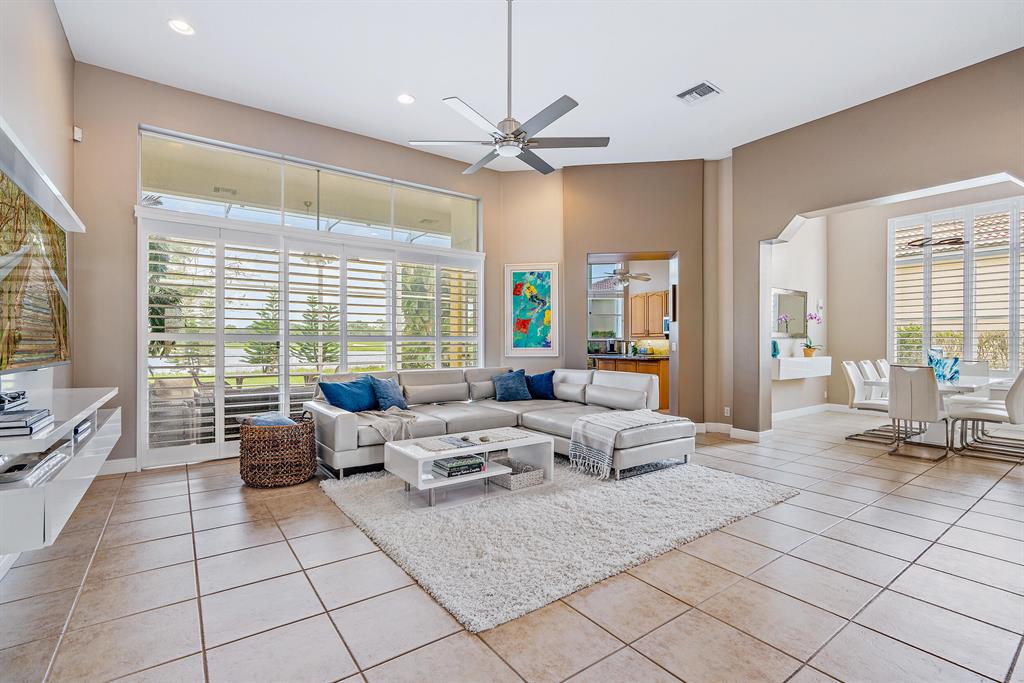 This single-level home has been meticulously maintained and in the family since it was constructed in 2000. It has a beautiful backyard overlooking the lake and 17th hole of the golf course (with SE exposure). The living room is open to the dining and kitchen and sliders open to a large screened in patio with plenty of room to add a pool. Other features include his and hers walk in closets with built-ins, huge master bathroom, the same tile throughout the entire home, plantation shutters and accordion shutters outside. Roof 2010. Golf, sport, and social memberships are available but not required. Amenities of the club incl Arthur Hills designed golf course, tennis courts, fitness center, pool, and restaurant. Community has 24 hour security and a manned gate.