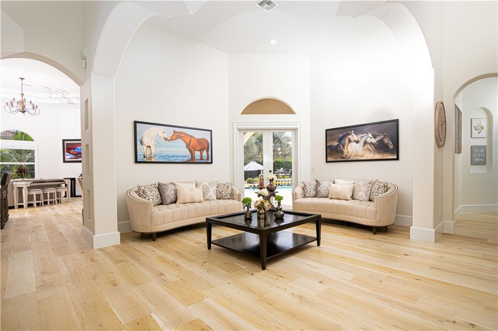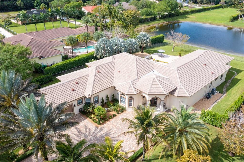This custom built beautifully renovated residence sits on a builders acre with lake views and very lush landscaping. Featuring 5 bedrooms, 4 and 1/2 bathrooms, plus a very large theater/media room with built in surround sound. Gourmet kitchen includes all custom built wood cabinetry, quartz countertops, top of the line appliances - SubZero, Viking, Miele, butler's pantry and custom built in large wine cooler. Solid mahogany wood doors with high end fixtures, white oak wood flooring throughout, all solid wood closets and cabinetry in all bathrooms, all hurricane impact window and doors, new pavers, new camera system, new fence, new a/c, brand new roof and so much more! All TV's are included in this truly meticulously maintained turn key residence.