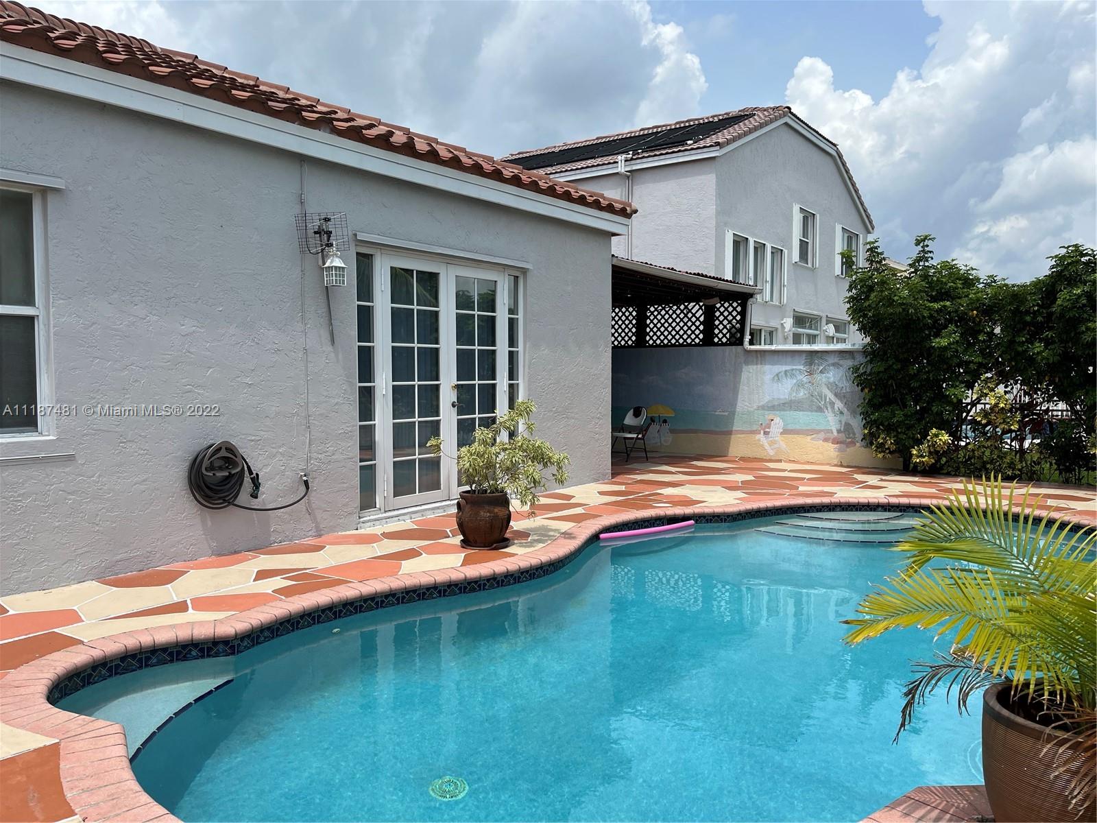 Large 3/2 home with 3yr old roof, remodeled kitchen, freshly painted, french door in family and master bedroom, tiled and wood floors, covered pool and patio overlooking the lake, tropical fruit trees in the backyard and more.