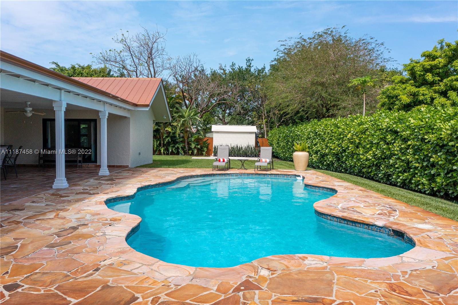 Spectacular, 4 bed, 4 bath, fully updated home located in the heart of Pinecrest. Large master suite with windows on 3 sides, double sinks, shower & jacuzzi. Half acre lot, property is fully fenced with electronic gates and has amazing oak trees. Windows & doors impact. Enormous great room with very high ceiling containing living room on one side of fireplace and formal dining/family on the other both facing pool. Vaulted ceiling has a row of windows along the roof line drenching the home with natural sunlight. Kitchen is renovated containing wood cabinets, granite counters, stainless steel appliances, cooking island with gas range & double wall oven. Home features a large, covered patio facing the pool, large two car garage & storage shed. Great Palmetto schools. Checks all the boxes!!!