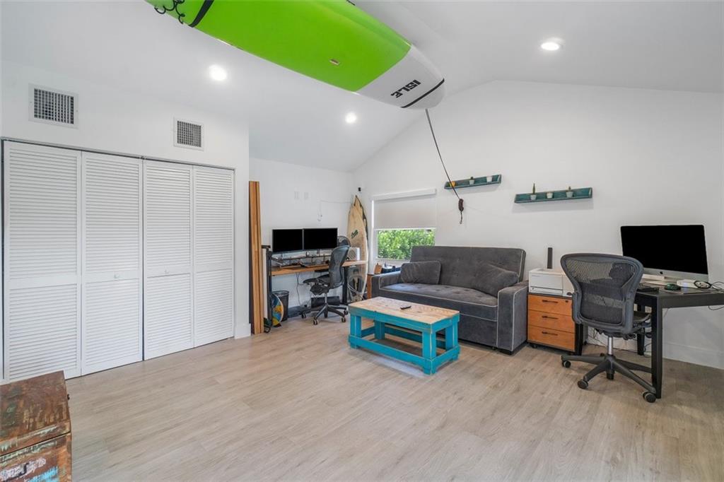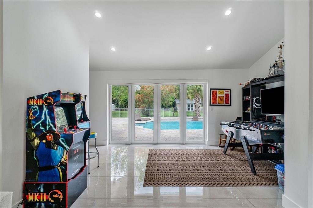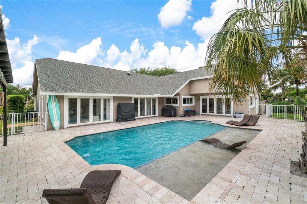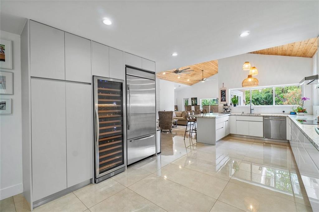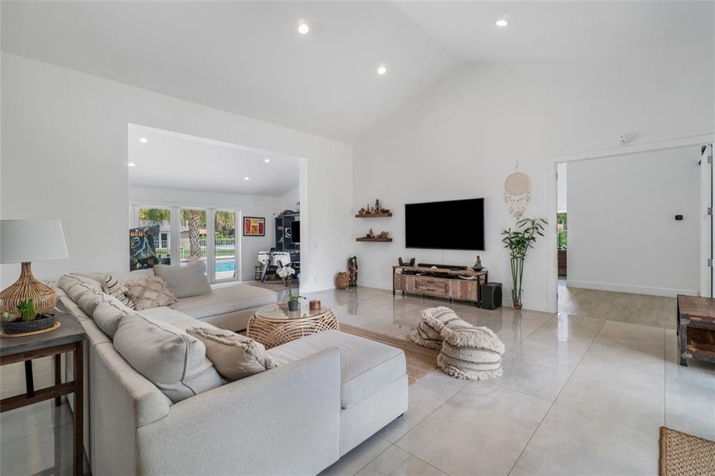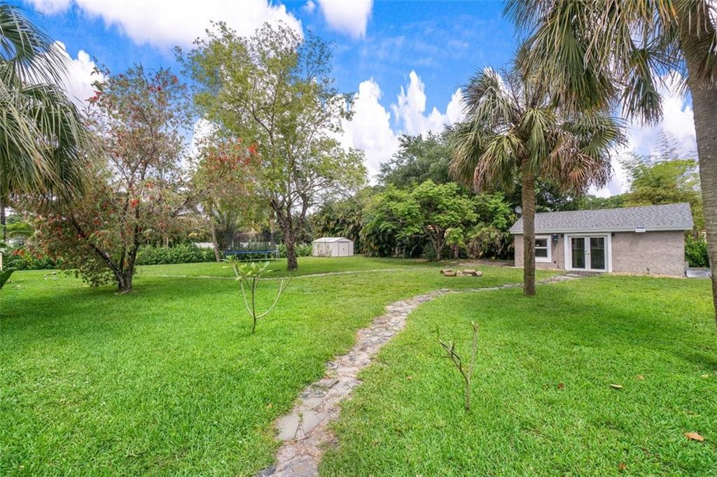 The perfect pairing of chic contemporary finishes and impeccable natural materials resulted in a stunning home with a "sophisticated relaxed" vibe. The large Kitchen/Family room area will take your breath away and features soaring wood ceilings, sleek high gloss Euro-style cabinetry, quartz counters, top-shelf appliances, to ceiling tile backsplash, and a stack stone fireplace. The Primary suite is sublime and offers a spacious sitting area, serene views & a remodeled spa bath. The idyllic guest house is perfect for multi-generation households. The expansive backyard is serene and private with a pool with a sunning shelf, relaxing outdoor living/dining areas, a guesthouse, and a sprawling lawn. Recent Updates: Impact windows/doors, septic tank, a/cs & water heaters. 2019 ROOF!