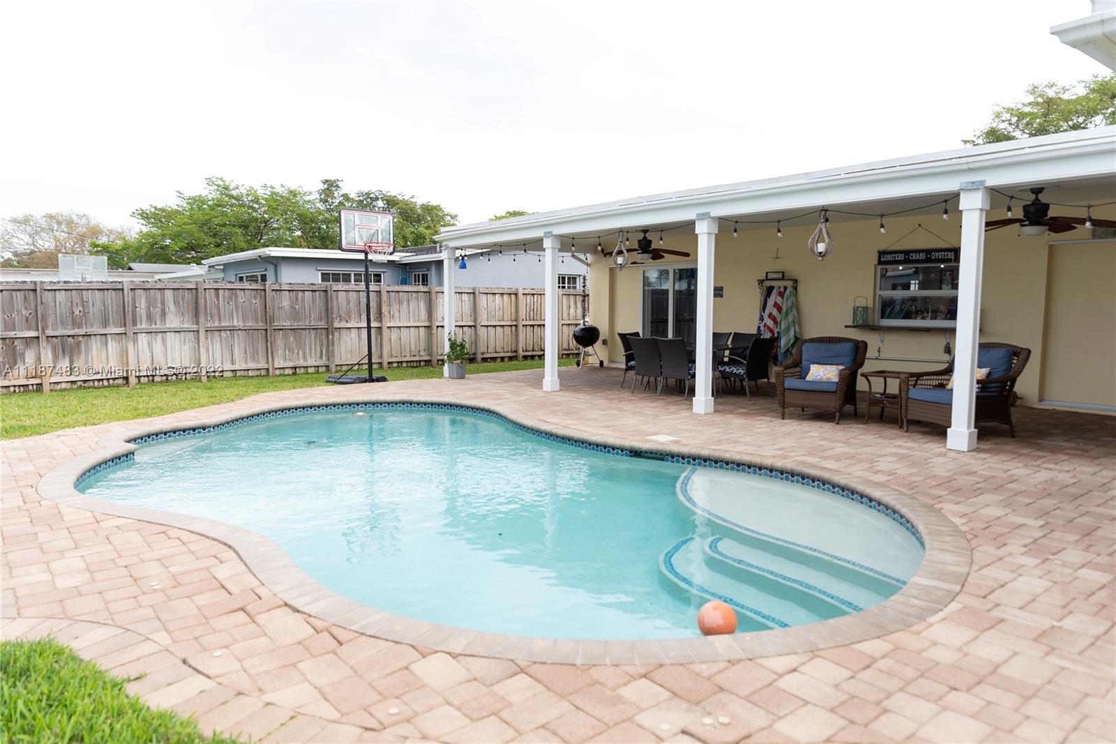 Stunning and well maintained 3 bed/2 bath Hollywood Hills pool home with spacious Florida room overlooking the refreshing salt water pool & oversized fully fenced backyard. Entertain guests, BBQ or relax by the pool on the large covered patio. Open concept floor plan and beautiful kitchen with abundance of cabinets, high end appliances, gas range and energy efficient tankless gas water heater. New A/C, impact windows and doors, & all underground plumbing replaced. Master bedroom has Brazilian wood floors, steam & rain shower and LED lights. Centrally located, close to major highways, Hollywood beach, restaurants, great schools, shopping, houses of worship and more. This Hollywood Hills gem will not last. Truly a must see!