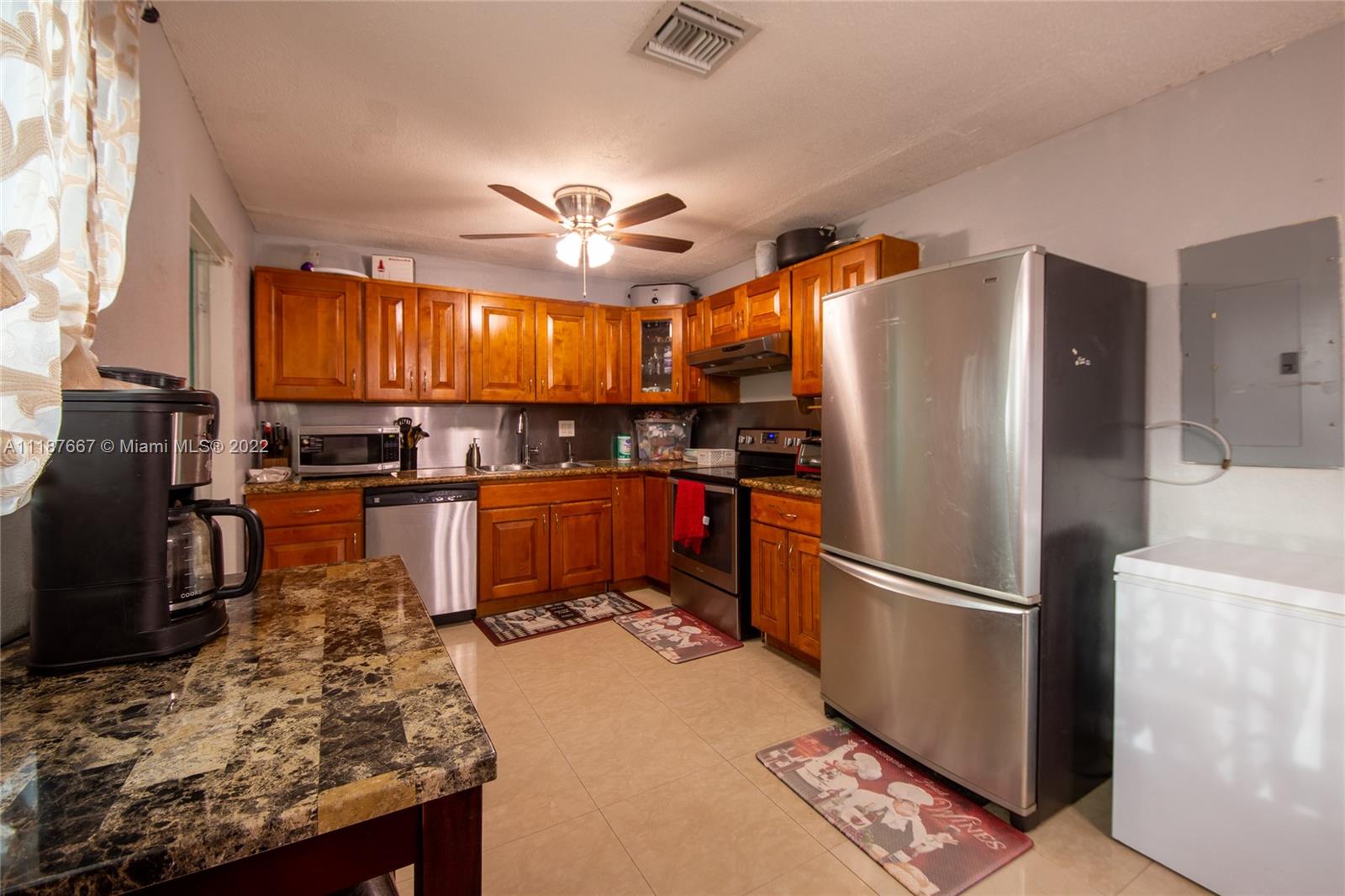 Single Family Home 3 Bedroom 2 Bathrooms in West Park featuring Solar Panels with FPL program, Hurricane Impact Windows, Stainless steel appliances, Granite counters, tankless water heater, updated bathrooms, tiles floors throughout the home, laundry room with storage cabinets, electronic gate entrance, driveway, plenty space for cars, shed in the back, fenced yard, patio roof provide shade and ready for entertainment. Located just few minutes away from I95 and Turnpike, Hard Rock Casino, Downtown Hollywood, 4 miles from the beach. This home is ready to move in!