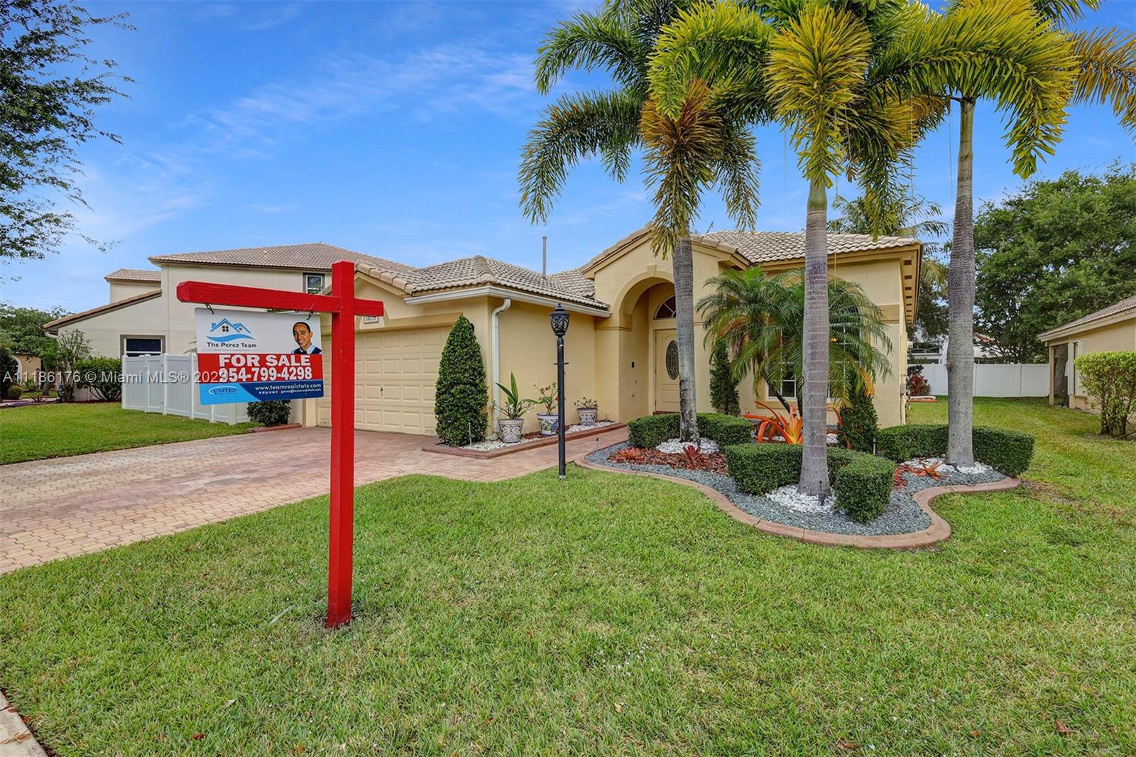 One Story, 3 bedrooms, 2 1/2 bathrooms, and 2-car garage. Covered Tiled Patio, paved driveway, A/C unit (2016) and Gas Water heater replaced in 2019, Stainless steel appliances, shelves closets lamps @ fans stay. Located in the prestigious community of Pembroke Falls: 4 gated entrances to the community, 24 HR Security, fiber optic cable, natural gas, resort-style Clubhouse: Ballroom, Heated Pool, Spa, Fitness Center, Tennis, Basket Ball, Tot-Lots, picnic, pavilions, basketball courts, tennis courts, gym, meeting room, pet park, and more. Onsite Management. HOA includes basic cable, alarm & internet. Close to malls, restaurants, theaters, library, parks, dining & I-75 -->>