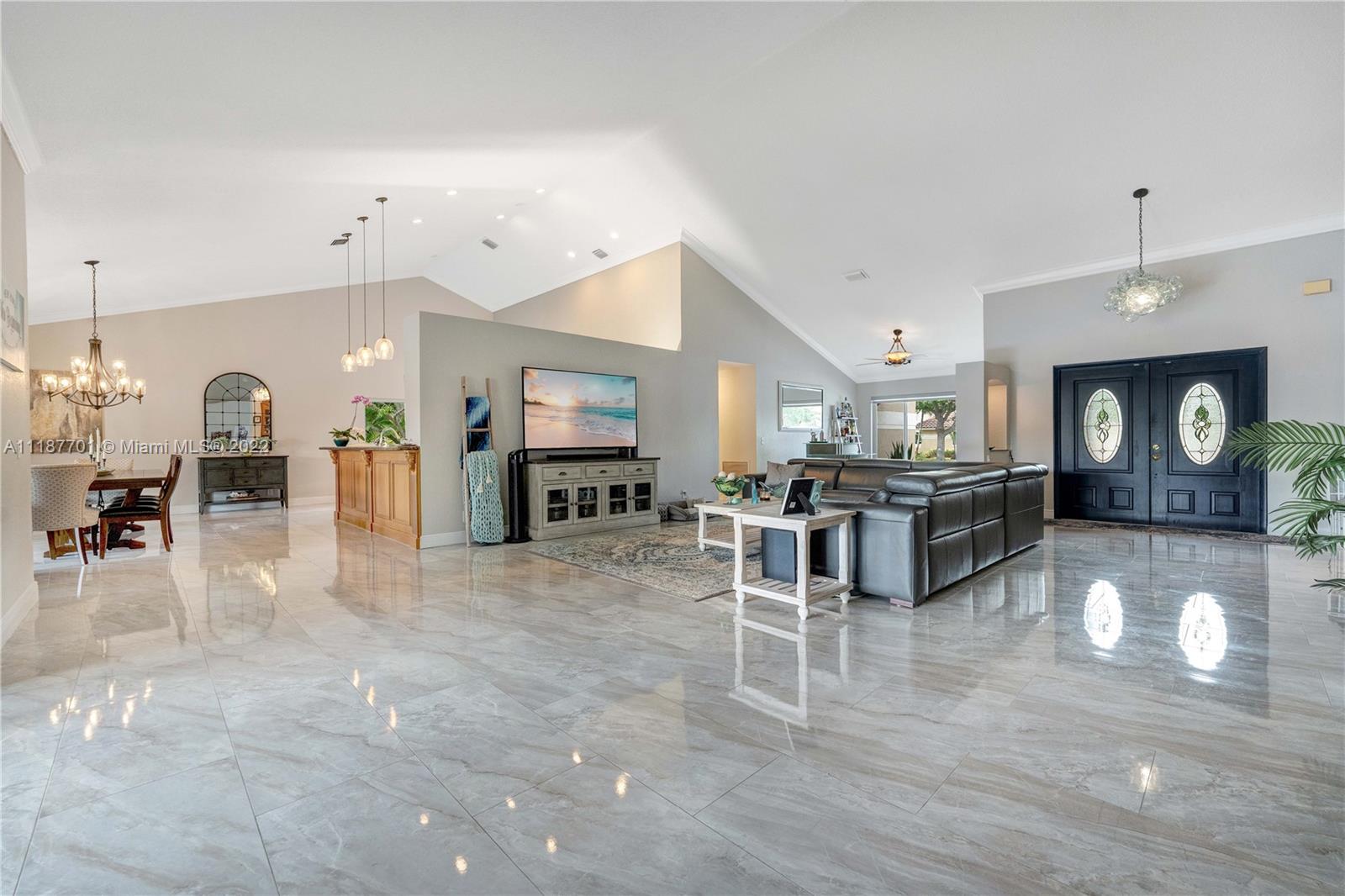 Looking for a completely renovated airy space to call home? Look no further. This estate is situated in the heart of Pembroke Pines, home to natural wildlife and greenery. The estate is the perfect place to get away from it all. This is a four bedroom, three bath adjusted 3,355 Sq.Ft home overlooking a beautiful quiet lake. The oversize lot/ side yard has ample room for wedding reception, play area for the young ones or could be built upon for a guest house. The estate sits on one of the safest communities in Pembroke Pines; Spring Valley with low HOA and great schools in the district. The owners spare no expense when remodeling the estate and truly outdid themselves with impact window, enjoyable Tiki hut, large pool and top of the line tile flooring throughout the property.
