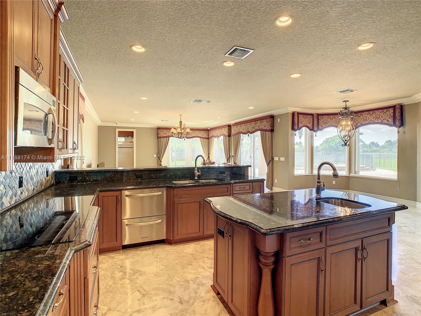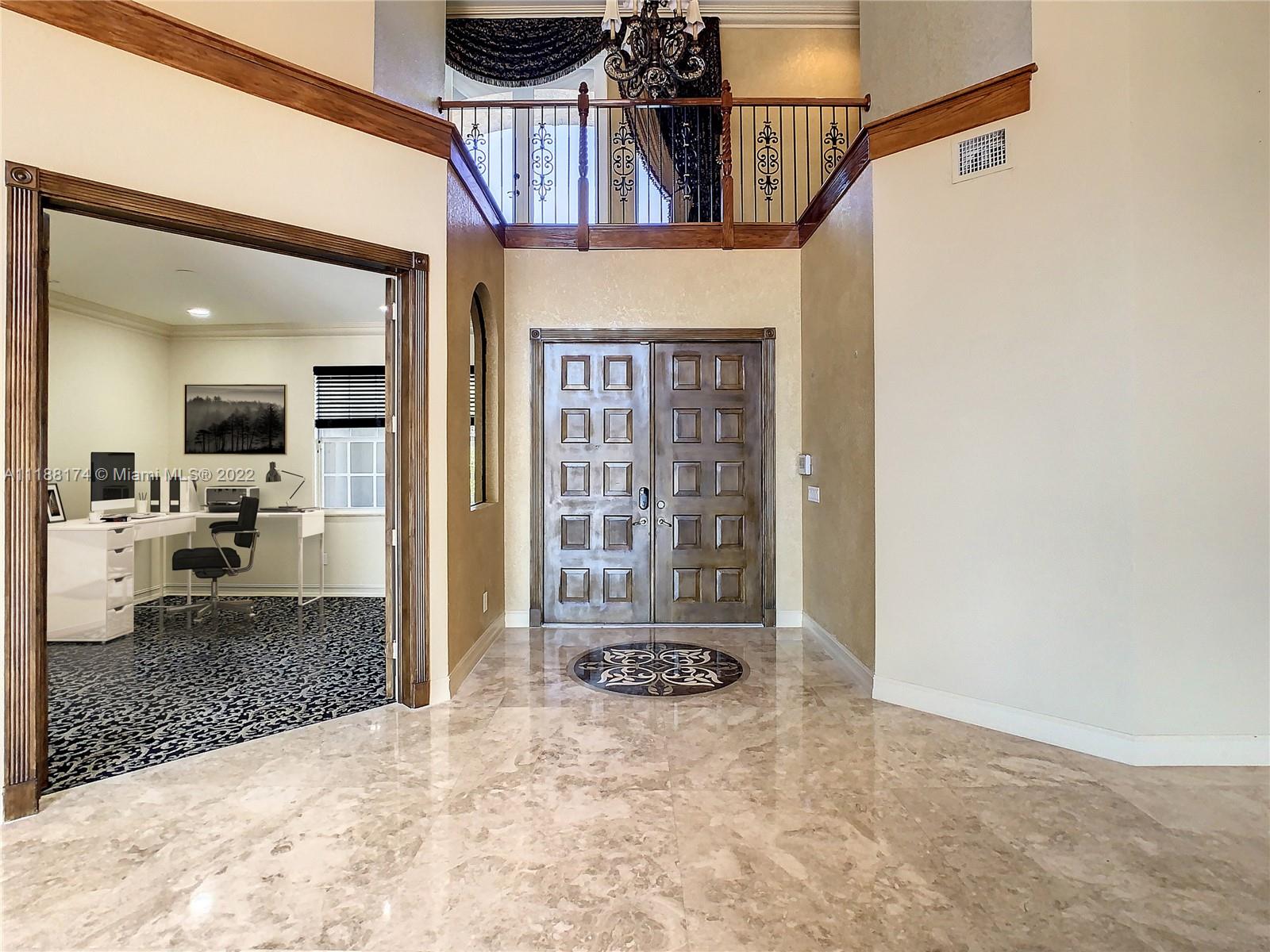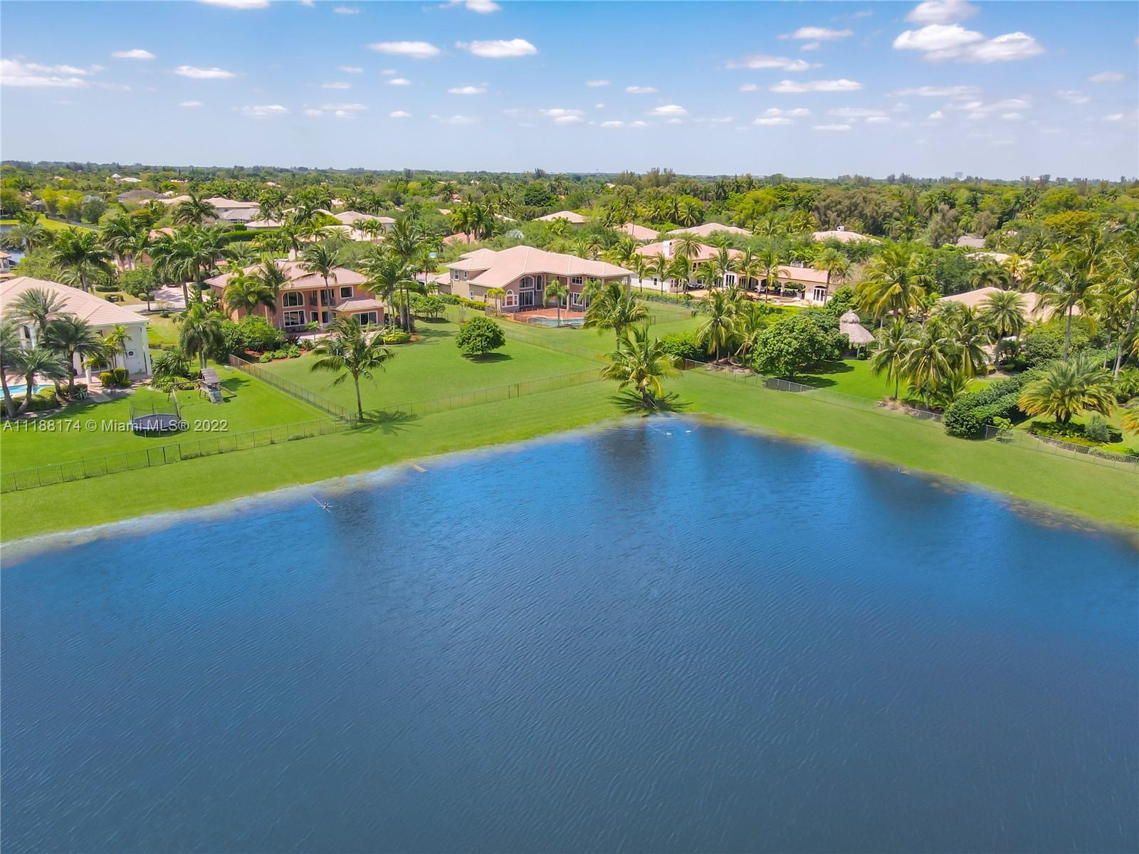 Live in one of Davie's most splendid, gated communities. An elegant, well-appointed home, impeccably maintained, only one owner! Also, the largest model in Long Lake Ranches. 24-foot vaulted ceilings, a grand sweeping staircase, marble floors and custom carpets, custom his/her closets, and a gourmet kitchen with double dishwasher drawers, double ovens, main and prep sinks and center island with storage. This luxurious home features 6 bedrooms and 7 full baths. Each bedroom has its own private bath, and 1 cabana full-bath for guests. The first floor features the primary ensuite with sitting area, an office and a second bedroom/bath. Second floor has a media room, a bonus/game room, and 4 other bedroom ensuites. Lovely pool/spa, landscaping and lake views. The perfect retreat to live.
