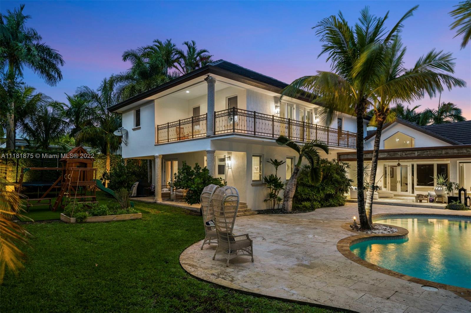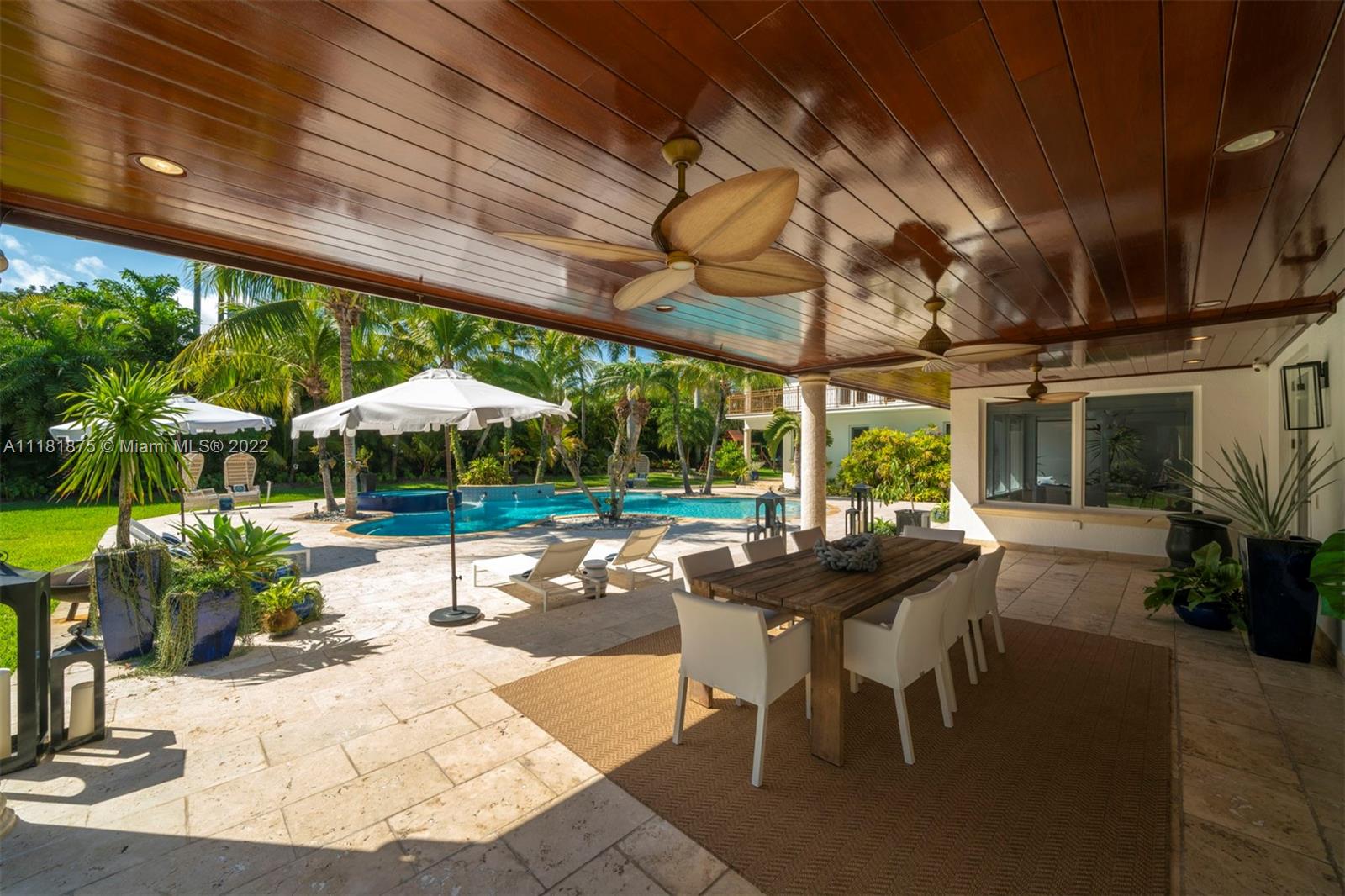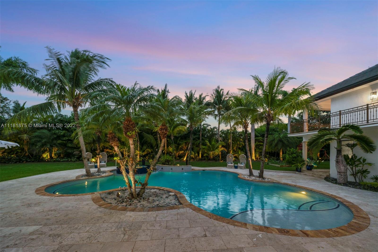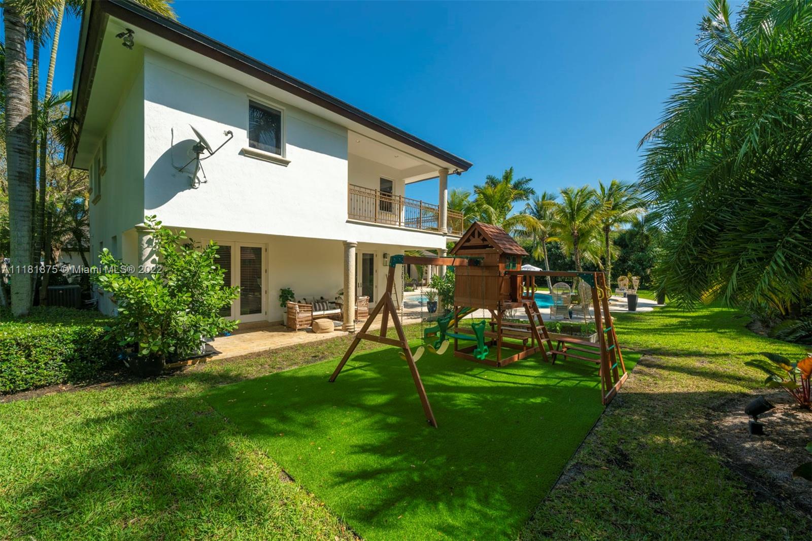 This exquisite 2-story retreat is a family dream home, featuring 6 BR, 6 BA and a myriad of contemporary comforts & conveniences. Designer details abound including custom millwork & vaulted cedar ceilings. The chef-style kitchen is replete w/ high-end appliances, finishes & a large island w/ quartzite countertops. The family room showcasing coffered ceilings features a wet bar & Sonos sound system. The owners’ suite is a standout w/ a large den, custom oak herringbone floors, a walk-in closet w/ granite island & French doors that open to a balcony. Likened to a resort-style oasis, the backyard stuns with a heated pool, optional saltwater system, large jacuzzi & tennis court. Additional features include impact windows, phone-activated sprinklers, security system & full-home generator.