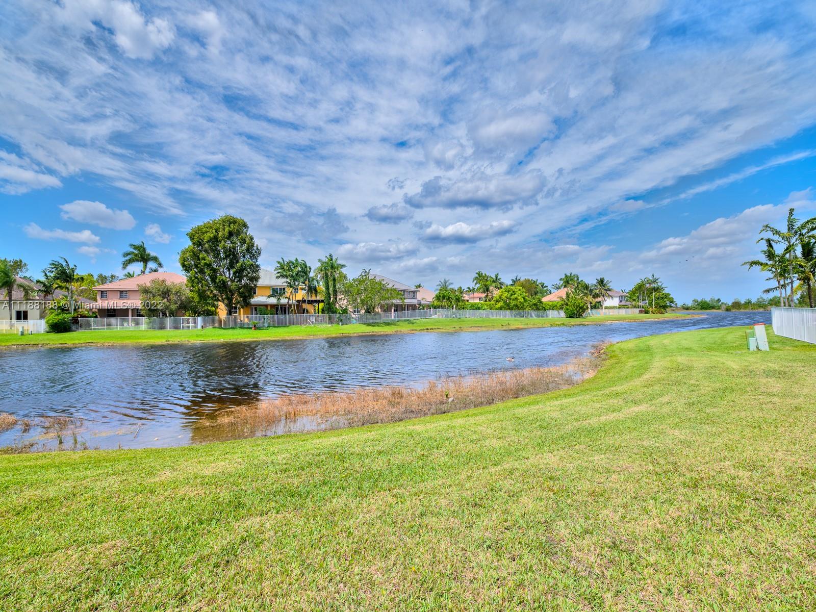 Welcome Home! Wonderful lakefront home overlooking a beautiful lake. Enjoy your morning coffee and a lovely sunset with this peaceful view. Here is your chance to own a 3 bedroom single family home with a tech 2 car garage with flooring and wall system. A lot of natural light with an open floor plan. A hardwire network computer system, 6-year-old AC (still under warranty), and 6-month-old roof (with warranty). This community has 2 gates, offering easy access. EXCELLENT SCHOOL DISTRICT (A+). The community is known for its amazing recreation: 3 pools, mini-golf, community clubhouse, basketball, tot lot, & more with low HOA! 24-hour guard and convenient location to highways and a short drive to Ft. Lauderdale airport and to the beach.