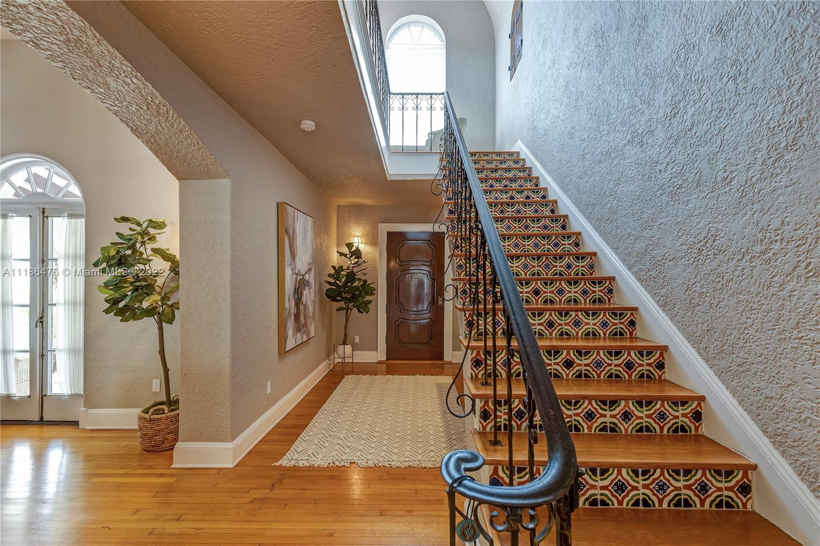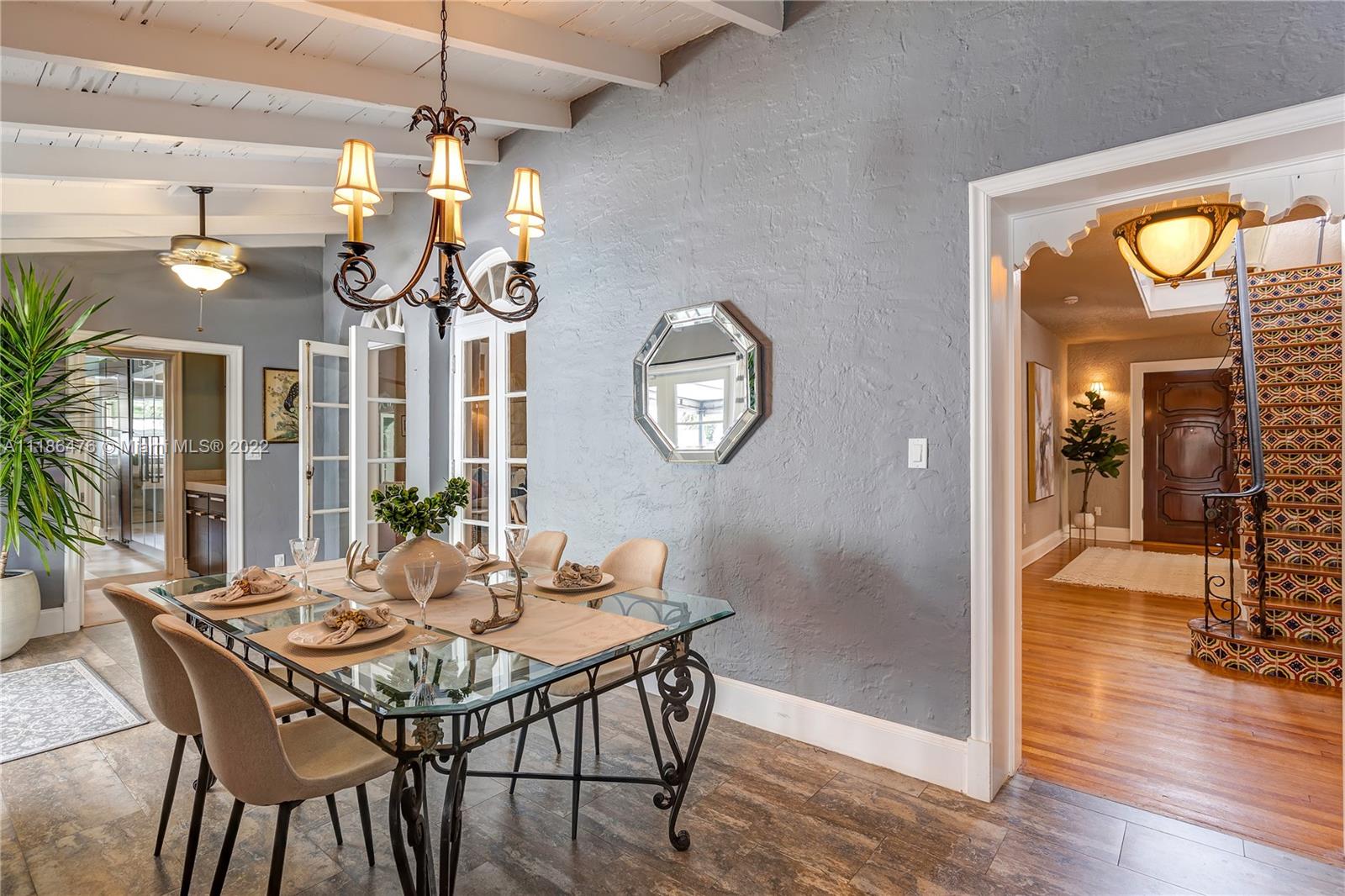 One of a Kind, Spectacular Mediterranean Estate situated on an expansive 19,200 SF corner parcel inclusive of towering oaks, a spacious main house+attached guest house. Main residence w/an impressive grand living/dining room, 6bds,5 full baths &2 halves. Custom details throughout such as the 14th pecky cypress ceiling, ironwork, French Doors & remote fireplace. Window-lined poolside loggia leads to renovated guest house w/separate kitchen, laundry, living/dining, office & 2nd master. Walled grounds w/cover terrace, porte-cochere, full impact glass, heated saltwater pool w/built-in infinity jacuzzi & full house generator. Includes plans for a detached 2 garage. A true masterpiece!!