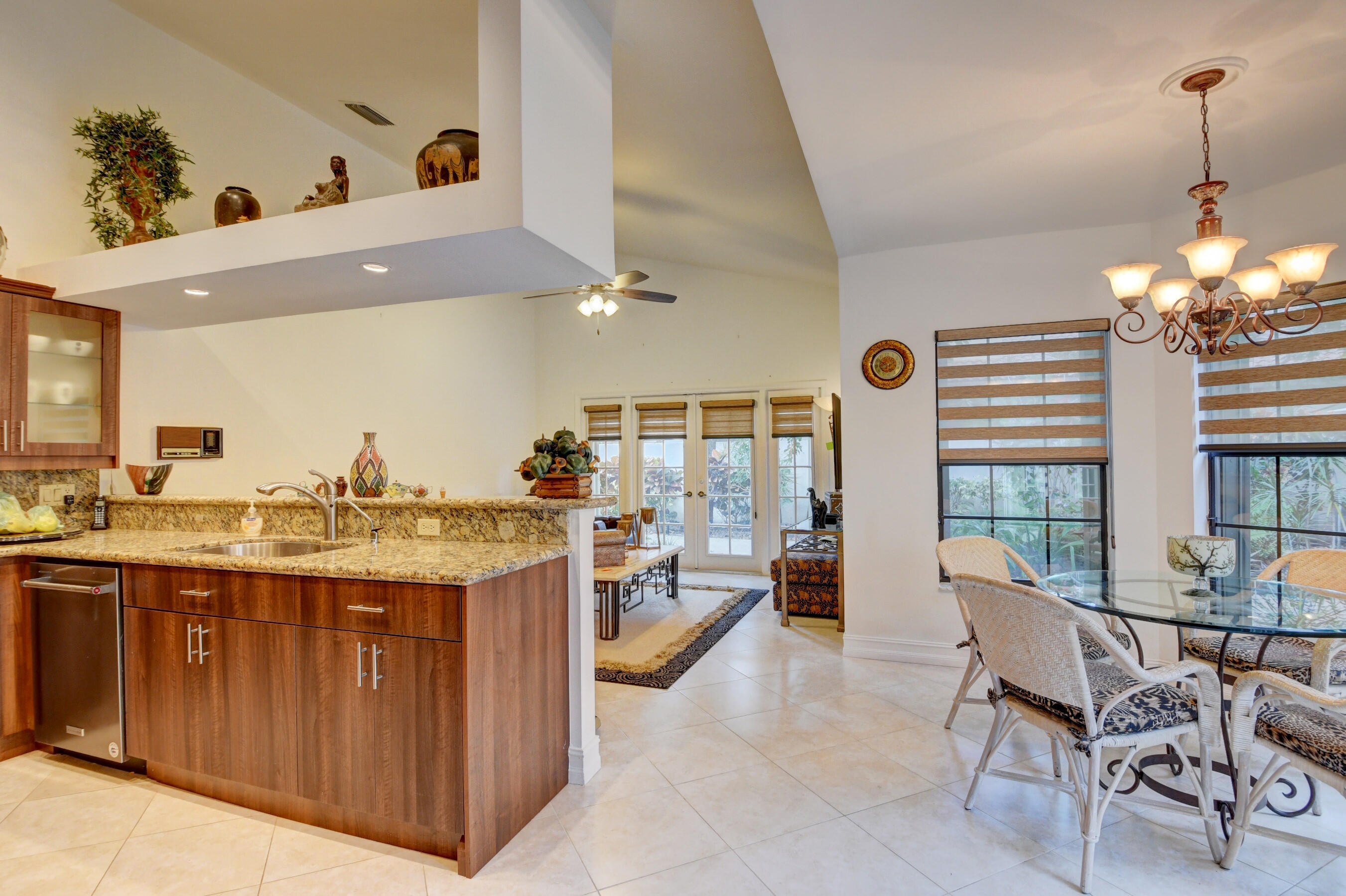 This is the 1 story home you've been waiting for. Modern layout with open family room. Upgraded kitchen with stainless appliances and granite countertops. SMOOTH ceilings - NO POPCORN. Large format ceramic tile floors throughout. Lots of French doors and decorator window treatments. Master bath and 2nd bath have updated showers and vanities have beautiful granite counter tops. ALL WINDOWS have ACCORDIAN SHUTTER HURRICANE PROTECTION. (3 yrs old). Very private backyard with tropical view. Large patio off kitchen area - great for entertaining. Third bedroom is used as den/office. 2 Zone AC 1 recently replaced. Membership optional