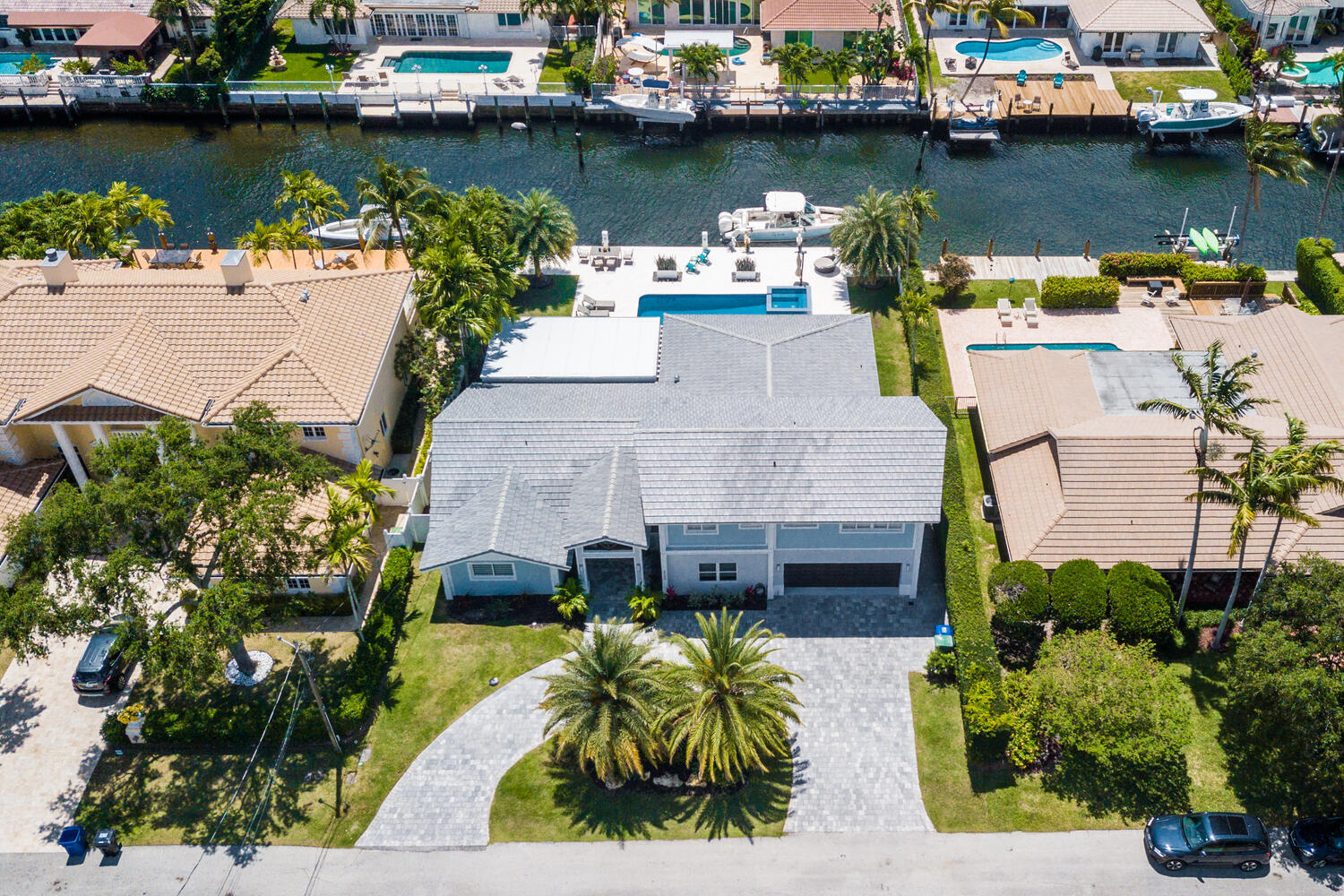 Completely Remodeled Waterfront Home Located In Coral Ridge Country Club. Property Is 3rd Home From Point, Providing Wide Intracoastal Views. Open Floor Plan, Large Designer Kitchen With Viking And Sub-Zero Appliances. Kitchen Includes Wine Refrigerator And Custom Bar Includes Cigar Refrigerator. Resort Style Patio And Salt Pool With Sun Shelf & Hot Tub, Extended Patio Roof Covers Summer Kitchen, Fireplace And TV. Large Exterior Entertainment Space, New Seawall, 85 ft Raised Dock With Tumbled Marble Pavers & 16k lb Boat Lift. Impact Windows & Doors, 500 Gallon Propane Tank That Services Viking Range, Pool Grill, Hot Tub And Water Heater. Roof 2020Master Suite Is Privately Tucked Away On 2nd Floor.