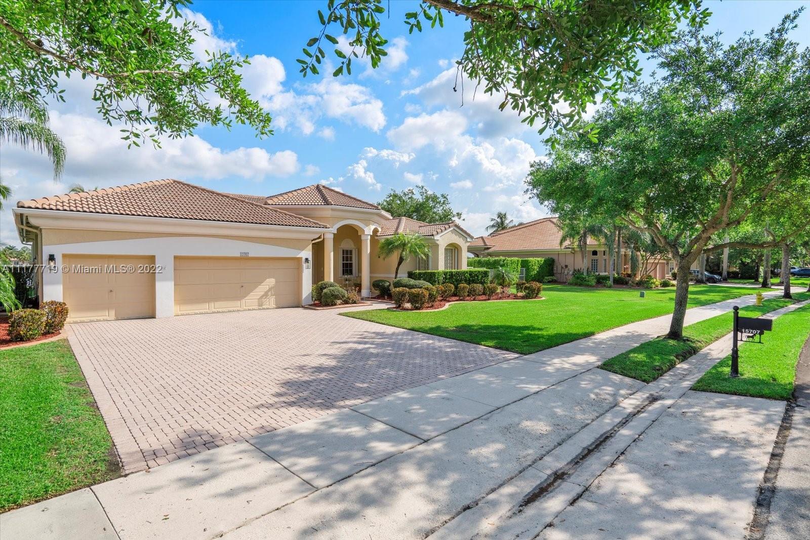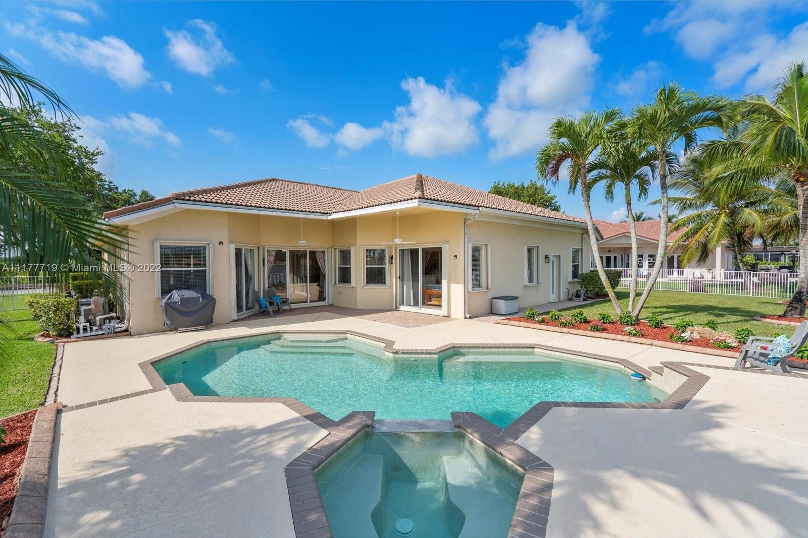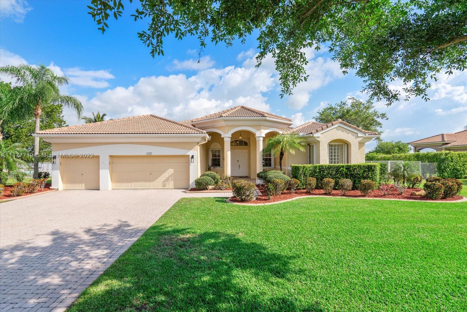 Your only opportunity to own a marvelous lakefront home! This home has been well taken care of and constantly maintained. The sprawling home located in the gated community of Highland Ranch Estates in Davie and offers a desirable open floor plan, high ceilings, and expansive lakefront views. The home includes 4 bedrooms and an office/den, 3 car garage with plenty of built-in storage. Master bedroom has a sitting area. Large master bathroom has separate tub and shower, hers & his toilet. Large, gourmet kitchen equipped with multifunctional cabinets, Corian countertop, double oven, kitchen island and other stainless appliances. Enjoy the stunning lake front view from your master suite, living room, and family room. Pool with Jacuzzi in the fenced private backyard overlooking 43 acres lake.