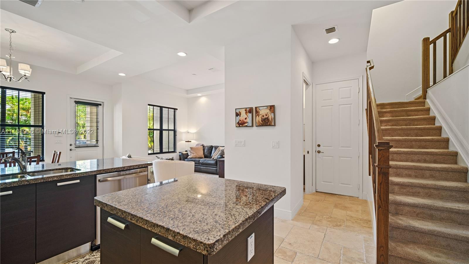 Fabulous modern townhouse in a prime location in Downtown Doral. This move-in ready tri-level townhome has 3 bedrooms/3 baths upstairs with a half bath on the entry level which opens up to a spacious kitchen w/stainless steel appliances and living/dining area. The 2nd floor has a large owner’s suite with walk-in closet and spa bath as well as 2 extra bedrooms. The third level has a separate living area with a full bath that can be converted to a 4th bedroom and a roof top terrace w/built in summer kitchen, excellent for entertaining. Close to A+ rated elementary schools, Miami airport and shopping malls.