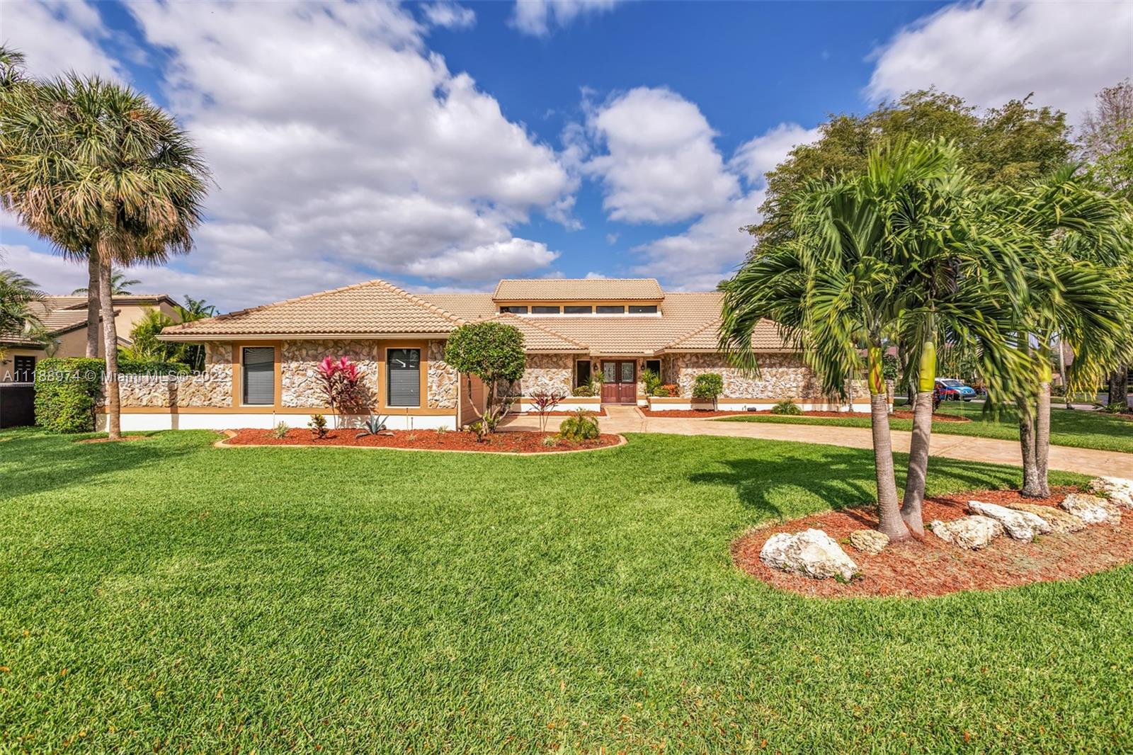 RARE FIND 4 BEDROOMS & 4 FULL BATHROOMS. Upgraded bright meticulously maintained ranch style home. Kitchen Aid Appliances with upgraded 42"wood cabinets very inviting open floor plan. Cathedral 12' Ceilings. Brand New Impact windows. A great family house with split floor plan. Corner lot with lush landscaping. Long driveway fits over 8 cars. NO HOA. A+ schools in heart of Coral Springs. Seller is Motivated. Bring a reasonable offer for a quick closing. Per seller, actual square feet is 2,924 living area and 3,440 total square feet.