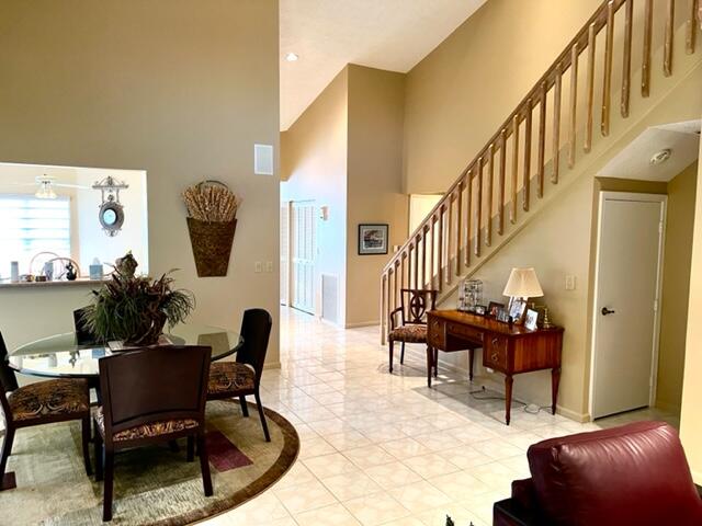 Offering a beautifully maintained spacious two bedroom, three full bath corner unit with a den and an air-conditioned finished patio in the Meridiana community at Boca Pointe. Master suite is located downstairs with a second bedroom upstairs both equipped with generous walk-in closets. Vaulted ceilings create a wide-opened feel in the great room with plenty of natural lighting throughout. Offered partially furnished. Boca Pointe is located just outside the city limits of Boca Raton, in southern most Palm Beach Co, FL. It includes the Club at Boca Pointe, Boardwalk at SW 18th Street, and over 4k residences within 29 diversified Villages. Optional memberships include the 18 hole championship golf course at The Club at Boca Point as well as social or tennis/fitness memberships.