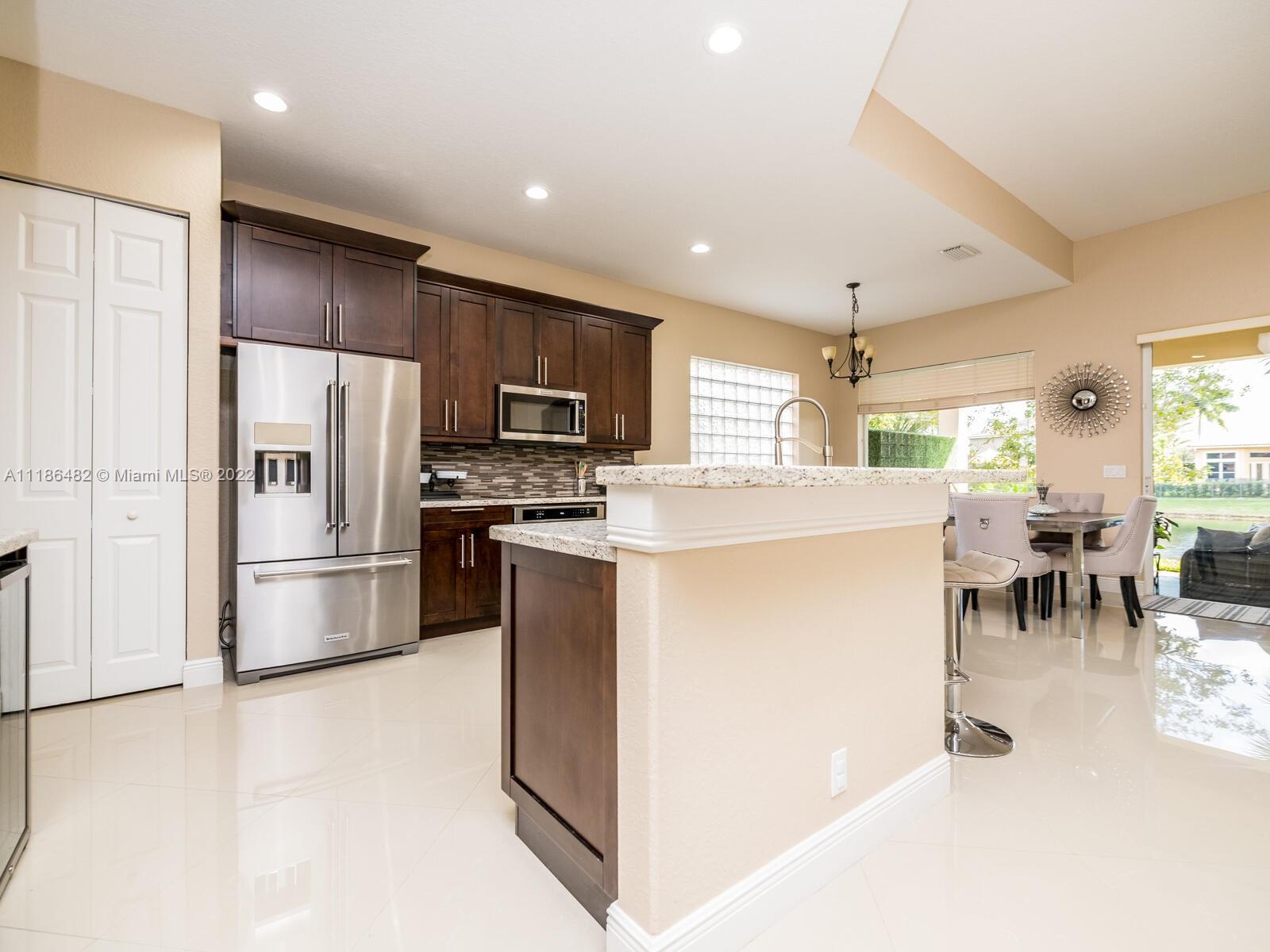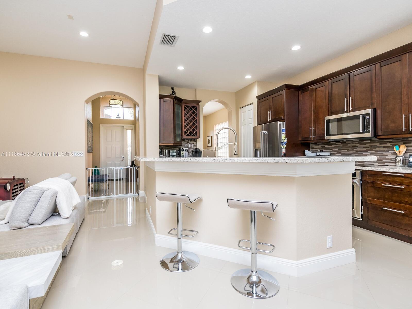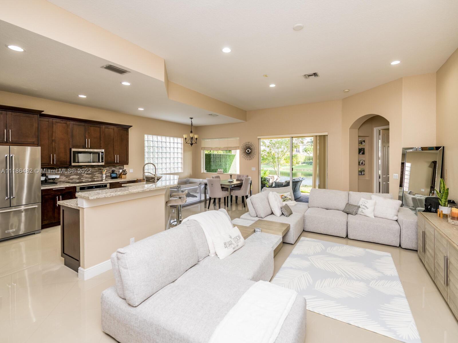 Heron Bay home on the lake! 3 bedrooms 2 baths. Large formal dining room and family room. Stunning kitchen with stainless steel appliances upgraded kitchen with granite countertops and wine cooler. High ceilings throughout the home. Beautiful ceramic tile and wood floor in rooms. Excellent split bedroom floor plan. Perfect entertainer's delight with plenty of room to accommodate all guests. Enjoy your mornings or afternoon on this lake view patio with a sitting area. Resort-style clubhouse with tons of amenities. Schools rated A+. Hurry won't last. PLEASE READ BROKERS REMARKS