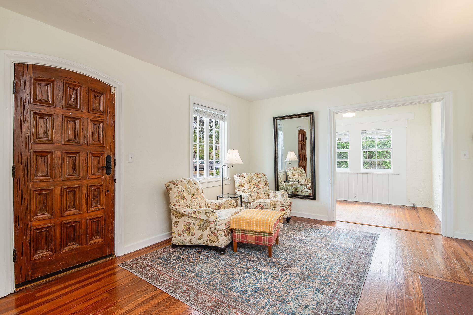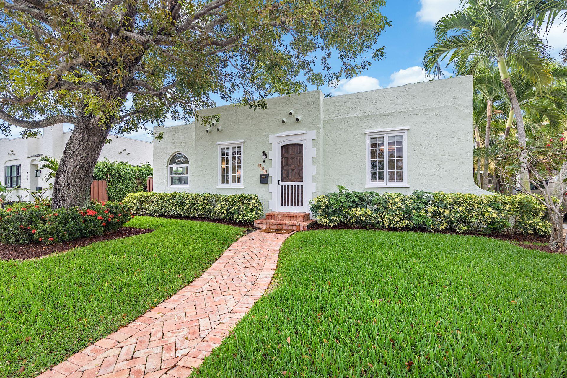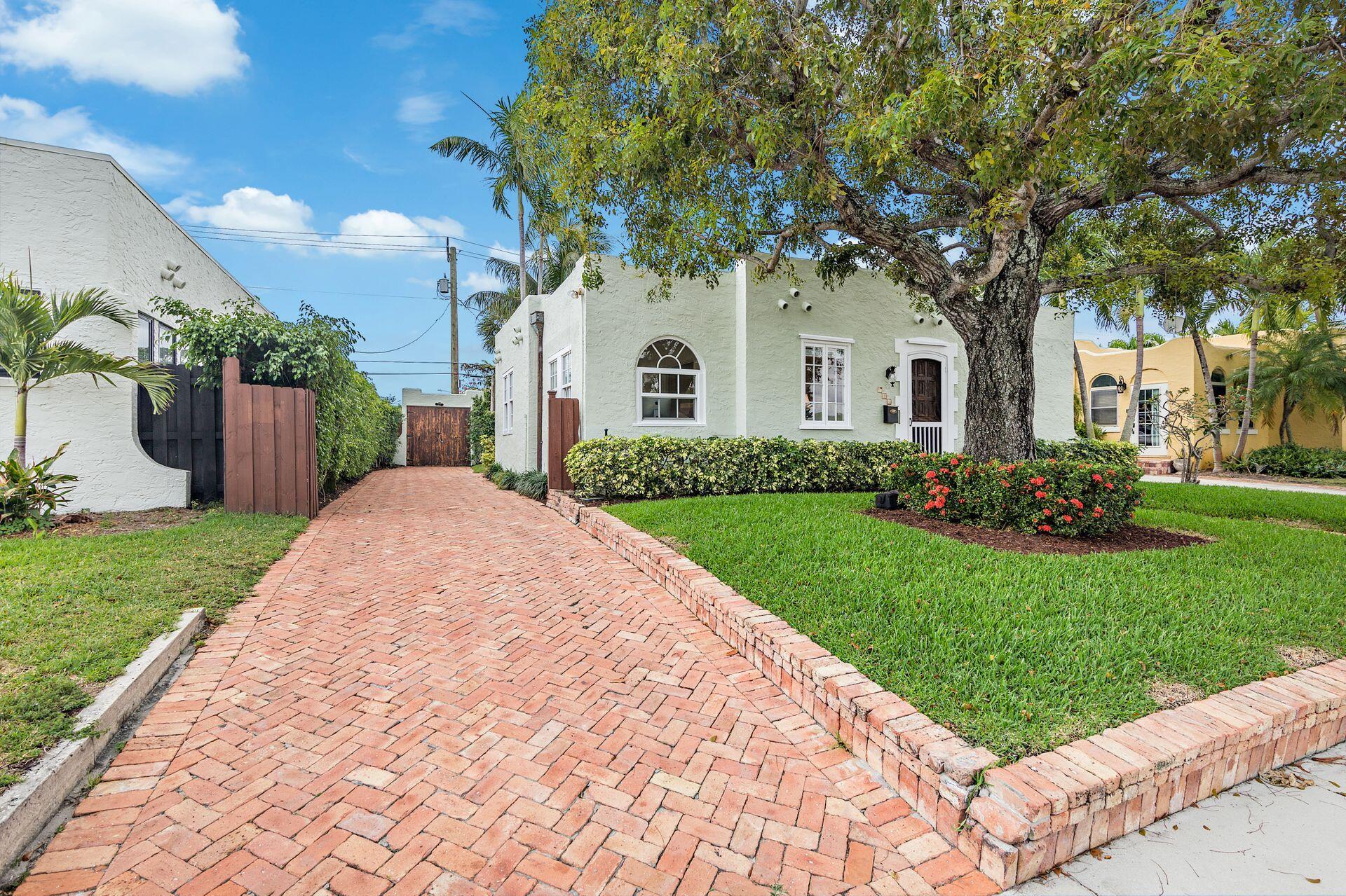 Charming move-in ready 2BR/1BTH Spanish style home in the heart of Antique Row! The Cypress front door opens to an airy and light filled living room with high ceilings and gleaming original hardwood floors throughout. Off of the living room is a family/dining room that leads into the galley style kitchen with an abundance of cabinet space and features a gas-range. Besides the hallway, there is a bonus sunroom that can be used as a den/office. Down the hall lies the primary and additional bedroom that are flooded with light from the generous number of windows. The back door leads to a private and spacious backyard that features the detached garage, mature landscaping, and a paver patio/driveway. Newer water heater, A/C, & W/D. Close proximity to Rosemary Square, PBIA, and Palm Beach Island.