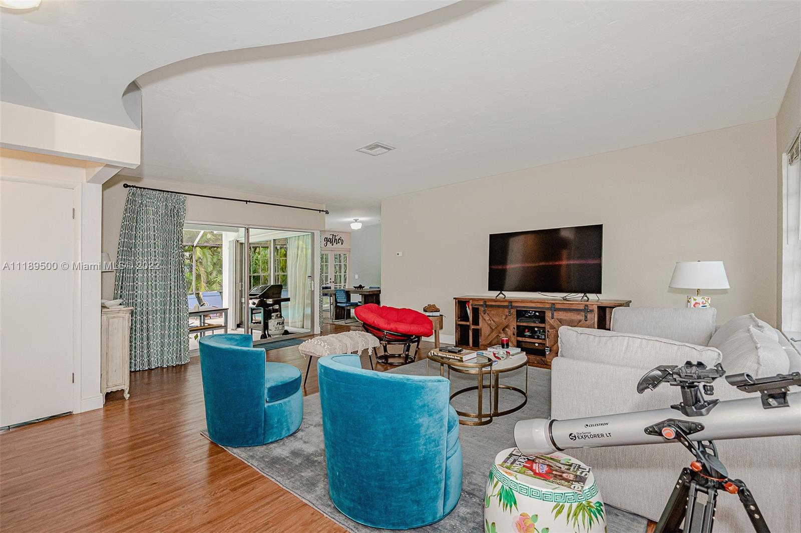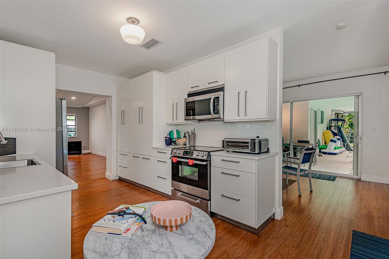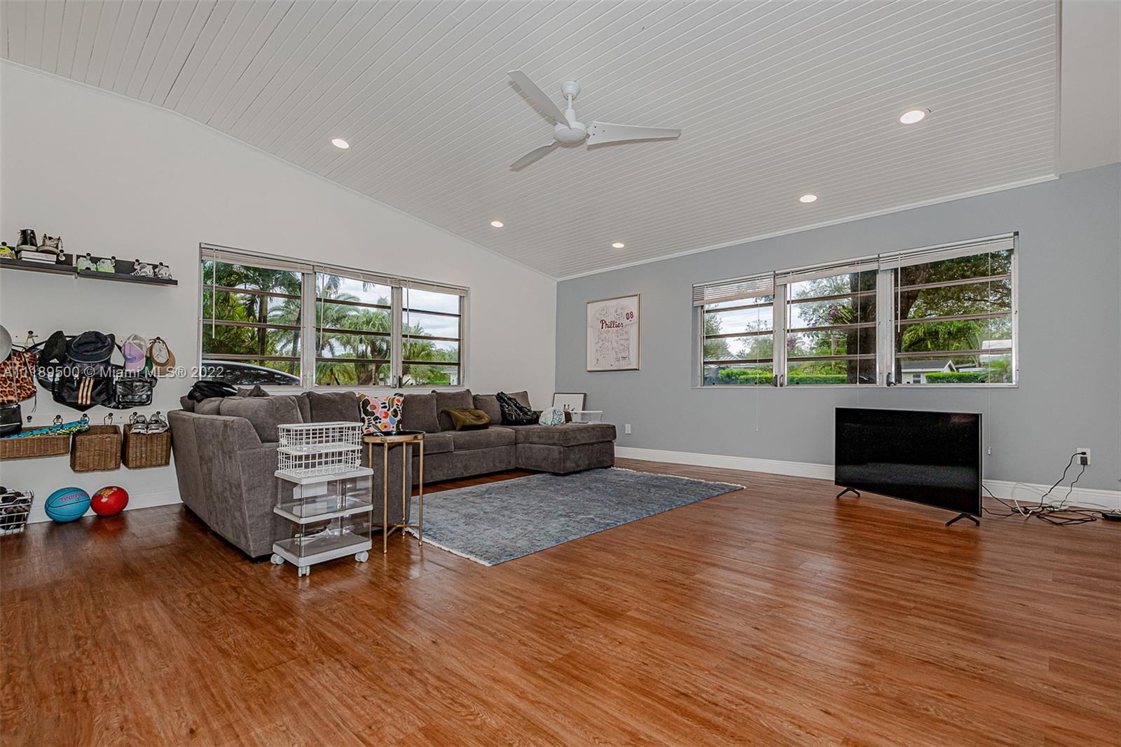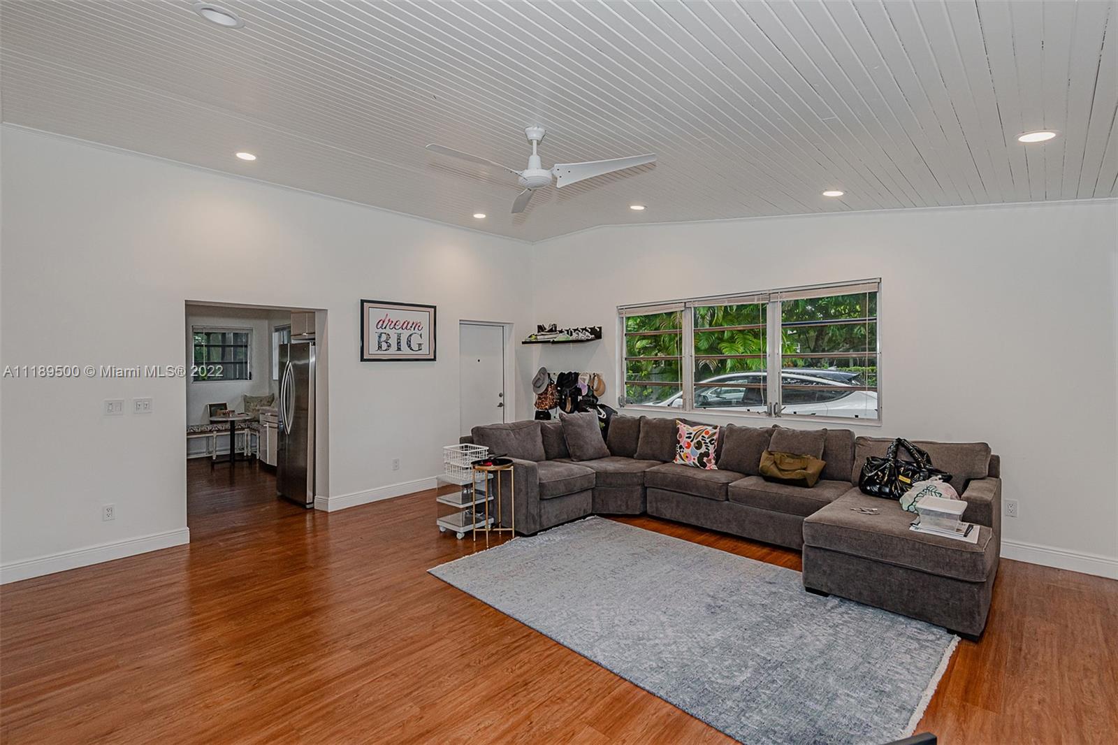 Beautifully and well maintained Pinecrest gem! This 3br/2ba house is located on a quiet and private street and features updated kitchen and bathrooms with tile/wood floors throughout. Nice covered and screened patio and pool, huge family room with vaulted ceilings, separate formal living and dining rooms, laundry room and excellent schools. Nice big lot giving you space and privacy from your neighbors!