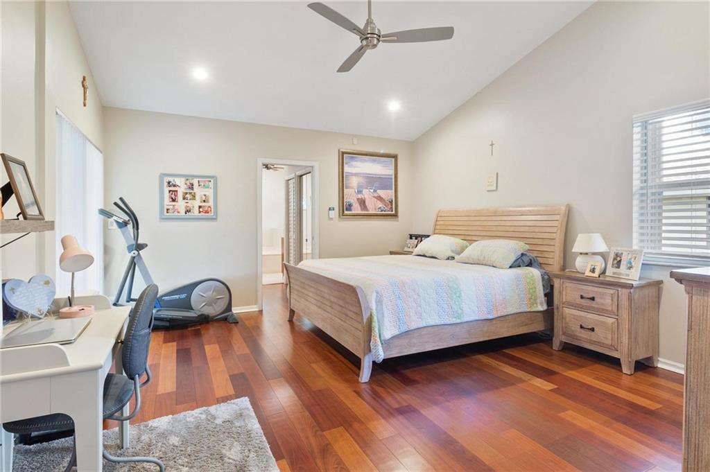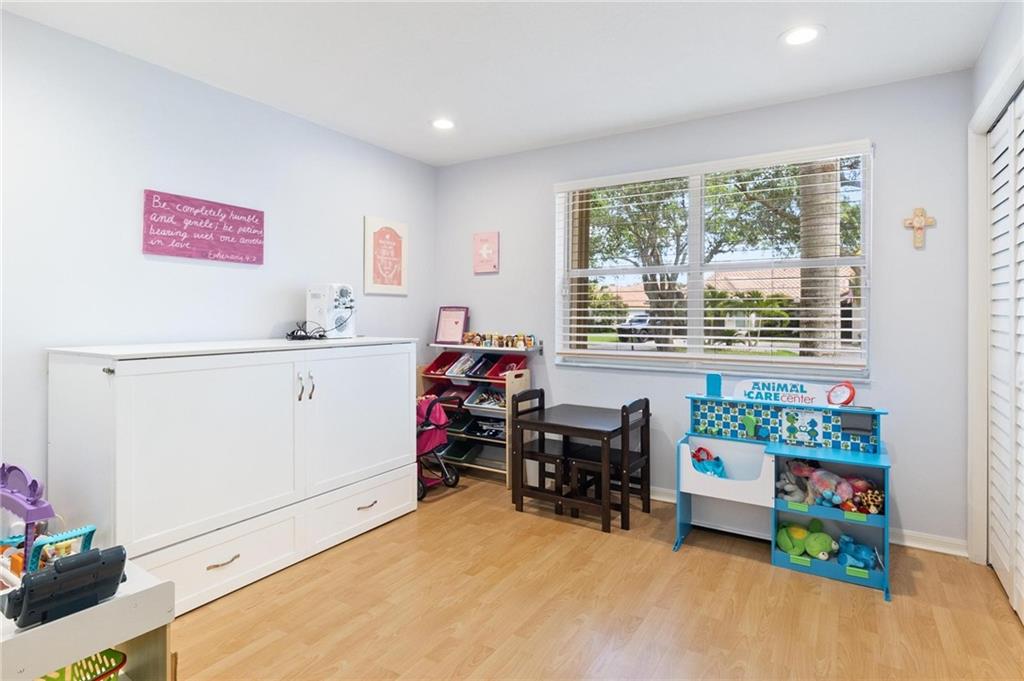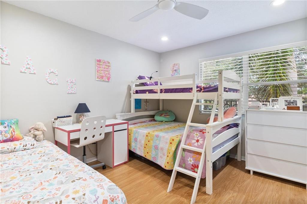 Country Isles Executive Homes/Oaks II in the heart of Weston. Immaculate sought after 5 Bedroom 3 Bathroom Pool Home. Great room with vaulted ceilings leading to screened patio overlooking the pool. Granite countertops, kitchen island and family room. Laundry room leading out to the 2 car garage. Primary bedroom conveniently located downstairs with cabana style bathroom shower and large tub. Two additional bedrooms and full bathroom downstairs. Two bedrooms upstairs with full bath. Paved backyard patio, fenced pie shaped lot with side yard. Gorgeous tree lined streets adjacent to park and elementary school.