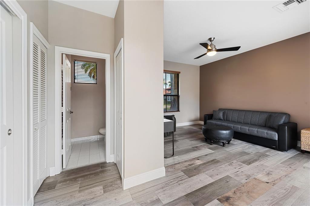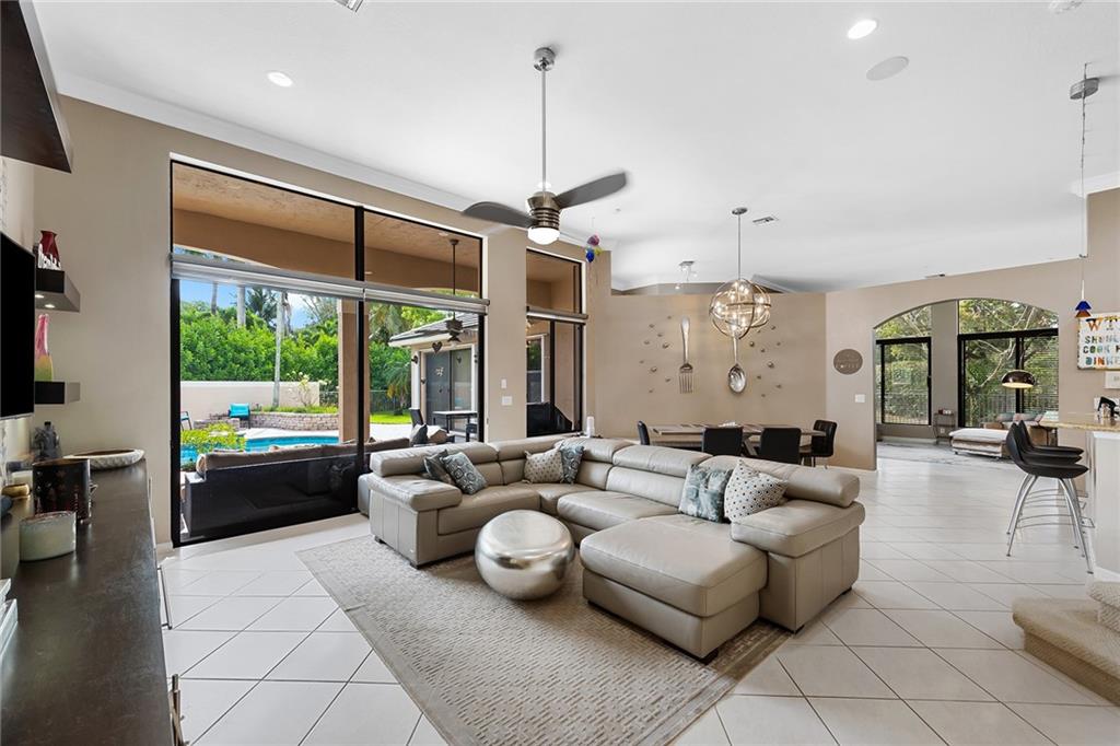 Welcome Home! This 7 bedroom, 5 bathroom home will fit all of your needs and more! With one of the largest lots on the block, it is perfect for indoor/outdoor living. The pool and courtyard area is expansive and great for entertaining. Kitchen includes newer appliances. Family room has beautiful built in cabinetry and shelving and the living room TV is included with the home! Primary bedroom has his/hers closets. Main house has 3 bedrooms and 2 bathrooms upstairs, 3 bedrooms & 2 baths downstairs. The pool/guest house includes a full bathroom, new A/C, new flooring. 3-car garage. Impact windows/Accordion shutters for storm protection. Community amenities: community pool, tennis courts, fitness center, guarded gates and security.