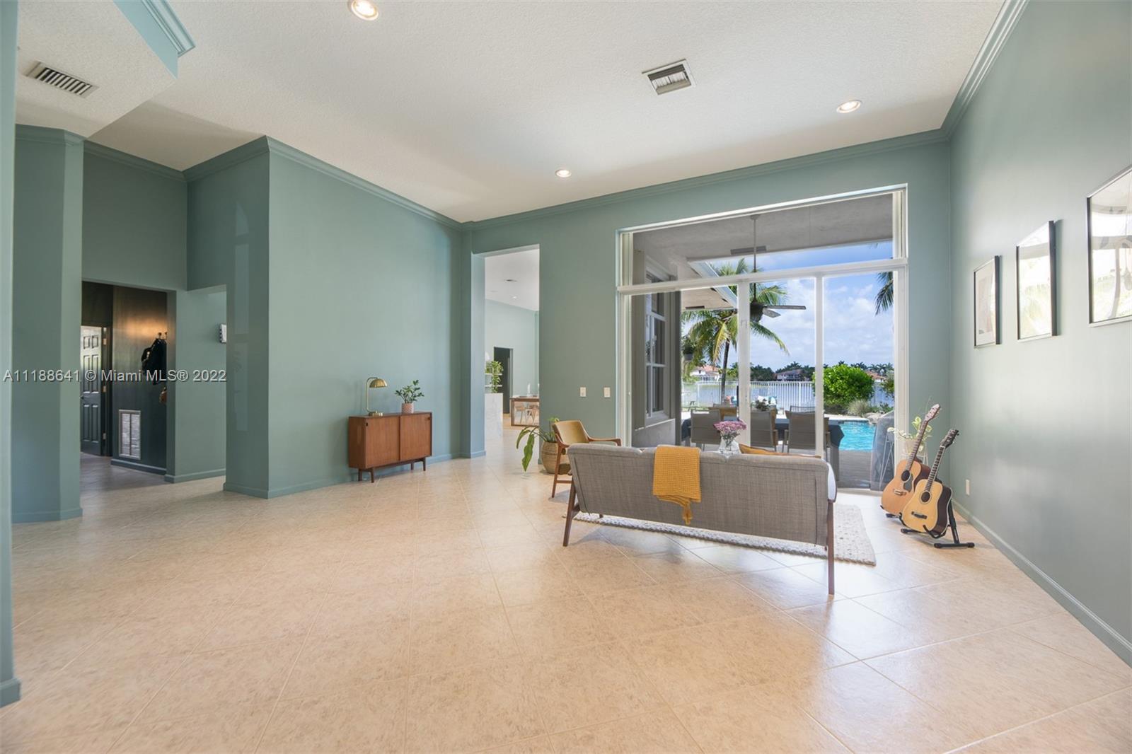 Imagine your family & friends gathering on this beautiful patio watching the sunset. Swim in the free form pool and enjoy the waterfall and this picturesque view of the lake. When you walk through the front door you will be in awe of the open floor plan with vaulted ceilings and gorgeous natural lighting. Multiple living areas and the triple split floor plan on 3879 sf provide plenty of room for entertaining. This well maintained home features a fully remodeled kitchen,renovated bathrooms,California closets,newer AC,complete Accordian Shutters,partial Impact windows and Plantation shutters. Nestled in the prestige subdivision 'The Cove' in Savanna, Weston. This highly desired community has resort style amenities, low HOA and is located in one of the best school districts in Broward County.