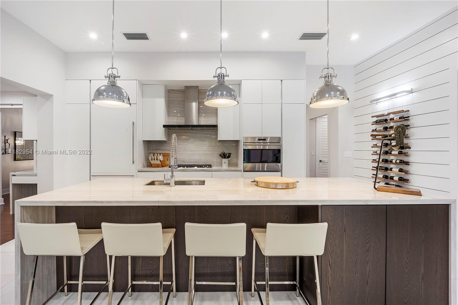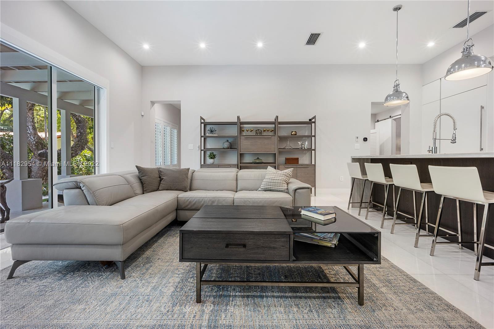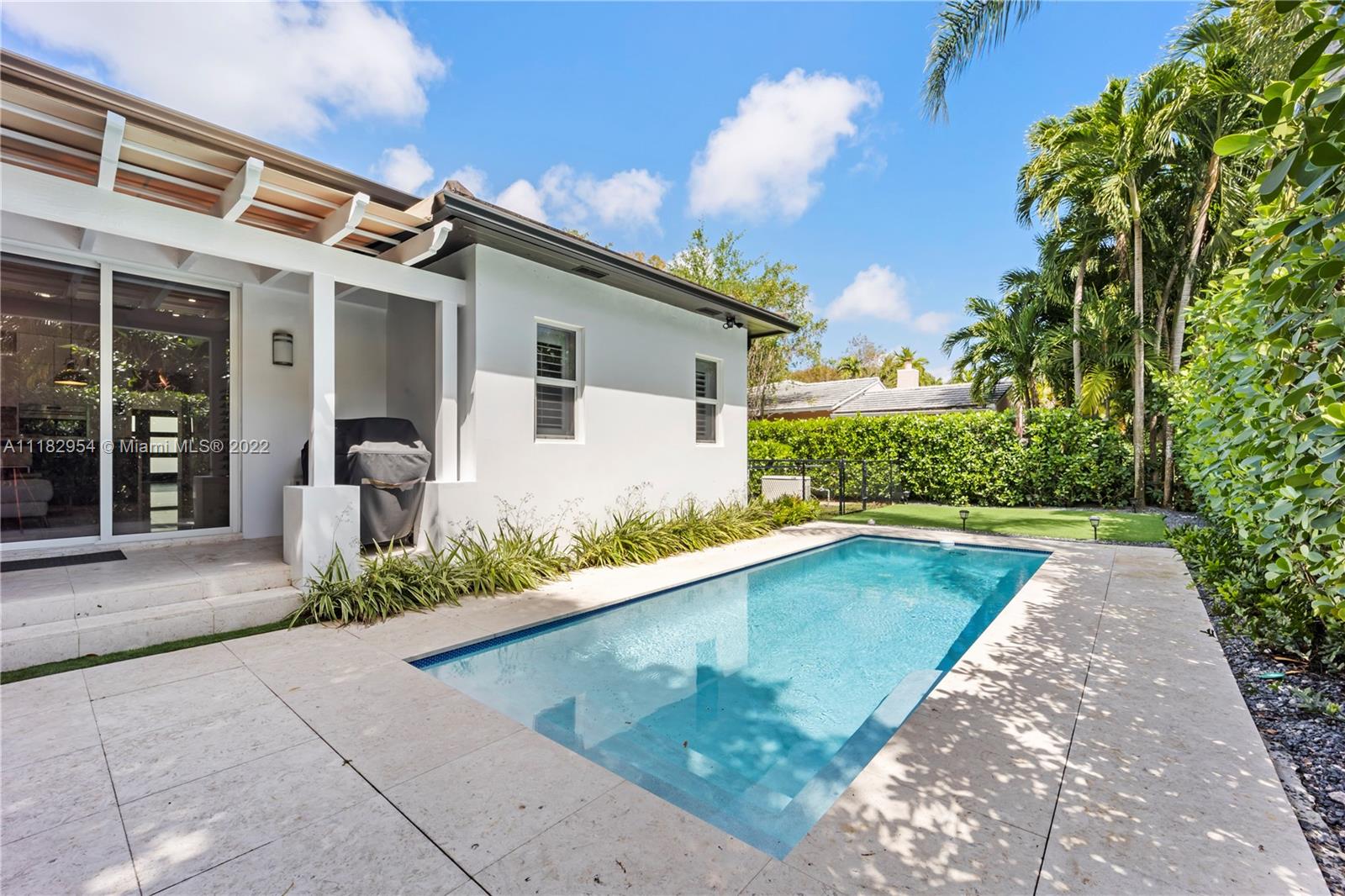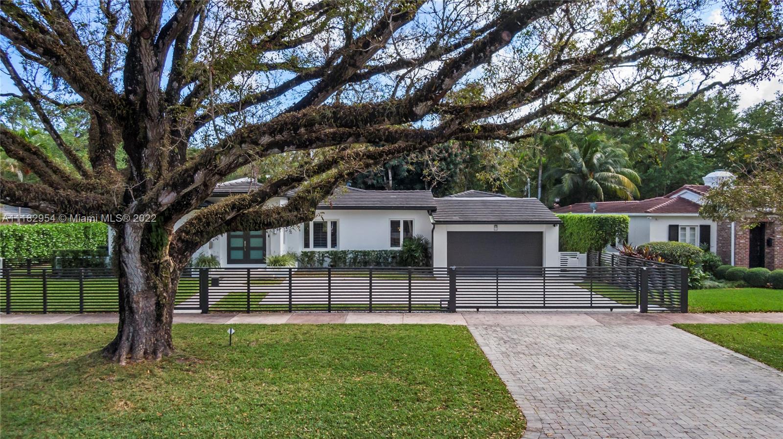 This stylish and contemporary one-story home is located in the Golden Triangle of Coral Gables on a beautiful street w/wide swale. Walking distance to the Biltmore Hotel and Golf Course and Downtown Coral Gables and within a short stroll to Fine dining and entertainment at Miracle Mile. All done with high-end finishes and excellent quality. This spacious family home features a welcoming foyer entrance with a formal living and dining room area with an adjacent butler’s pantry. The gourmet kitchen, with Wolf appliances (gas range), Sub-Zero refrigerator, and custom ITALKRAFT cabinetry, overlooks the family room area with a beautiful shiplap accent wall. Full house generator! Move-in ready! Location! Location! Location! Outstanding! A must-see!