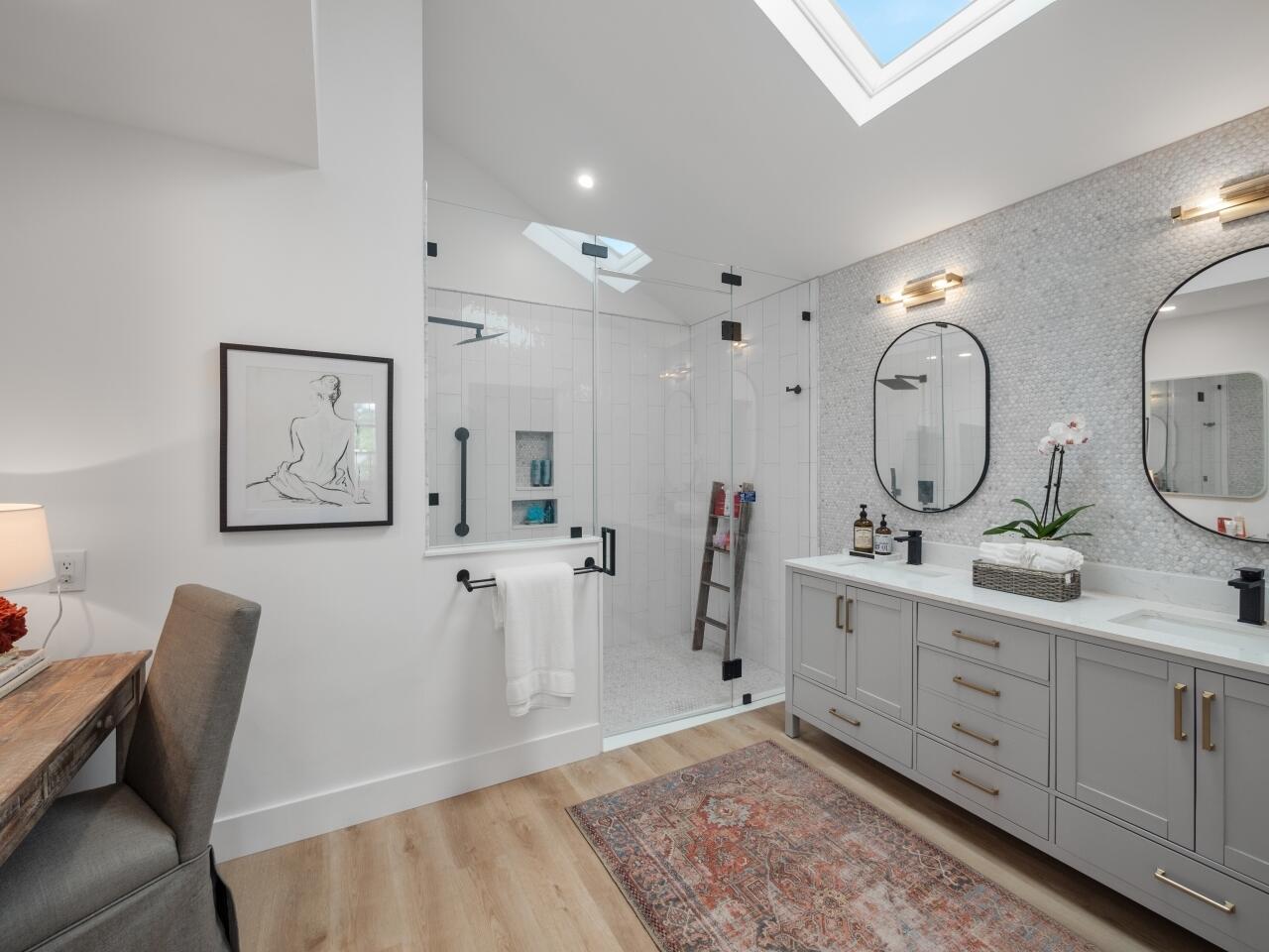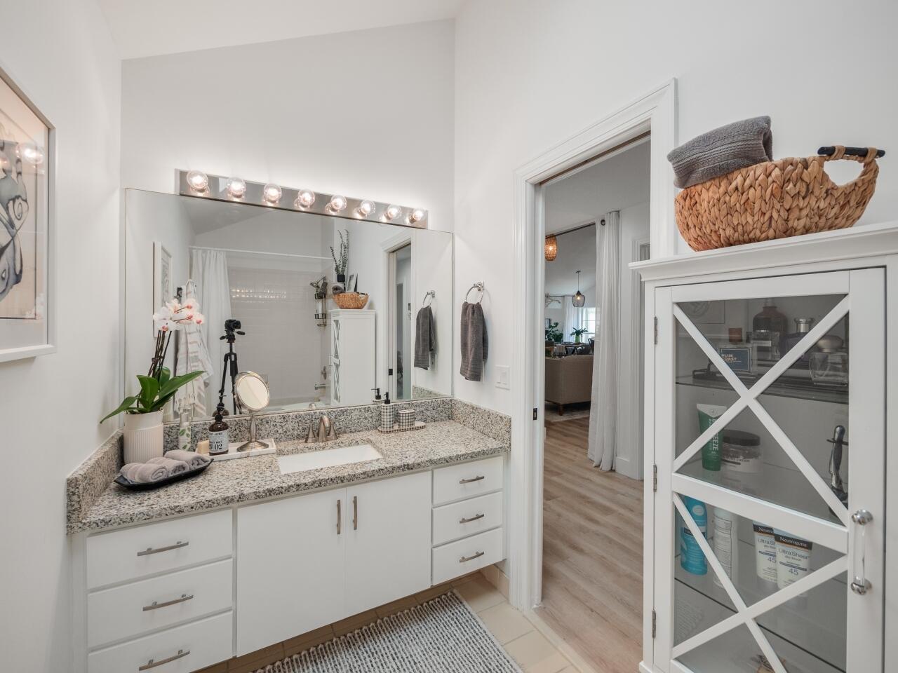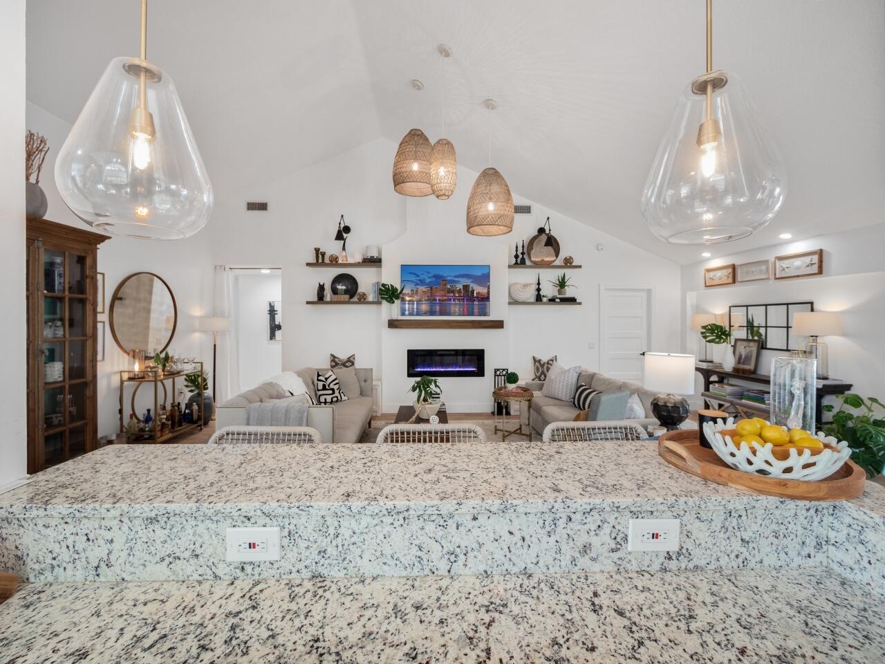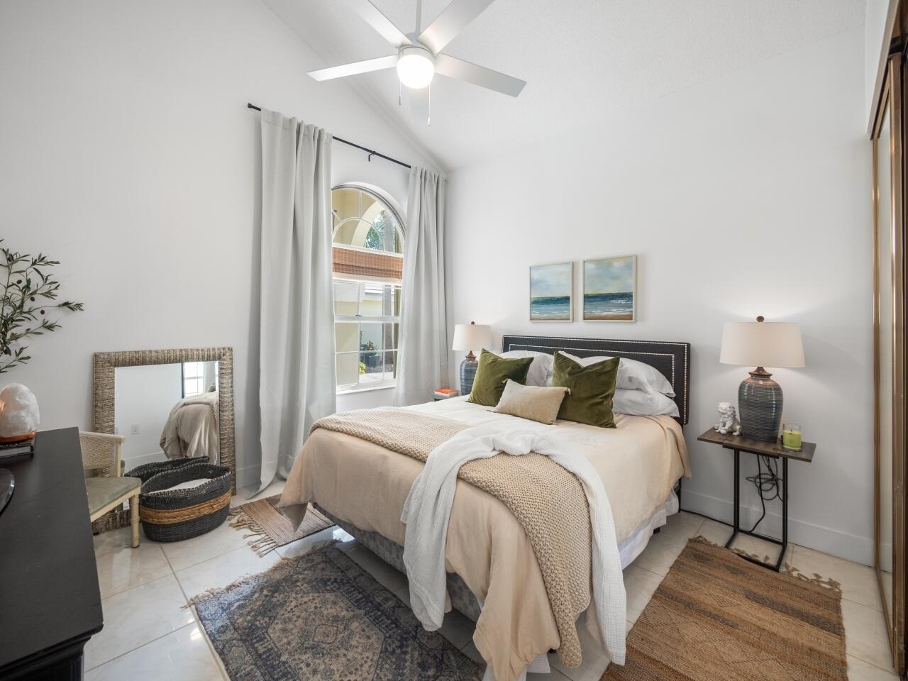 No detail has been overlooked in this absolutely stunning renovated pool home owned by an interior designer. Close to downtown, Rosemary Square, and the restaurants and shops of Palm Beach, and minutes to the ocean. The entire home has been reimagined from its original floor plan. This heated pool home sits on a large corner lot in the desirable gated golf course community of Bear Island. This is the Saratoga model, the larger of the two models in Bear Island, with 2271 square feet under air. The home is bright and light with 3 BRs, 2 baths, plus an office with split floor plan. White oak luxury vinyl plank flooring, all new designer transitional light fixtures, new baseboards and 5 panel custom doors throughout set the tone for the home. The living