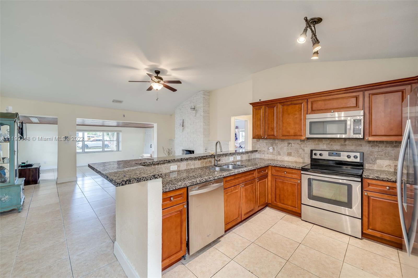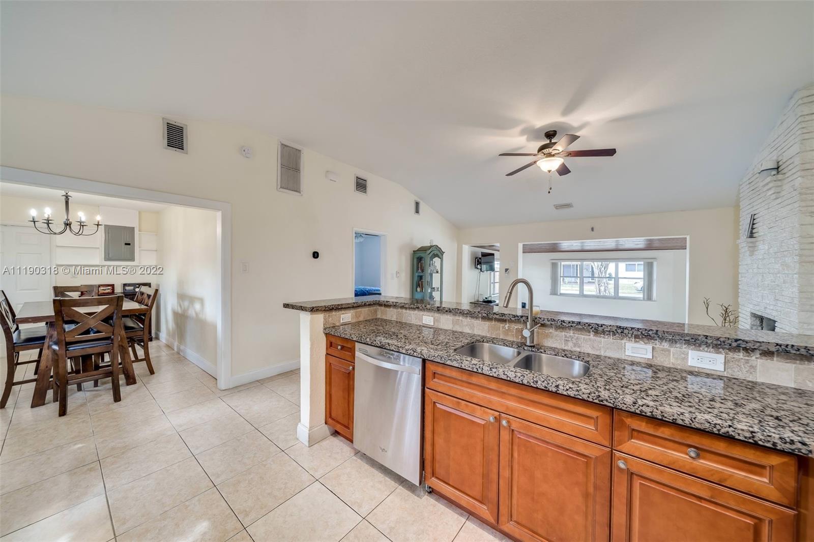 3 bedroom 2 bath, single story, on a large fenced corner lot. Roof 2018, tankless water heater, A/C 3 yrs. old. Split floorplan. Both bathrooms are beautifully remodeled. Shower in Primary Bath and tub/shower combo in guest bath. Tile flooring in living areas and carpet in Bedrooms. Kitchen has also been remodeled with granite countertops and Stainless Steel Appliances. Living room has vaulted ceiling, family room with wood ceiling and separate formal dining room. Fireplace in Living room - Seller has never used it. Large laundry room with additional storage. Big fenced corner lot with built in BBQ on the back patio. The large shade tree is great for a swing. Multiple offer situation, highest and best offer due by Monday 4/25/22 Sellers will decide Tuesday 4/26/22