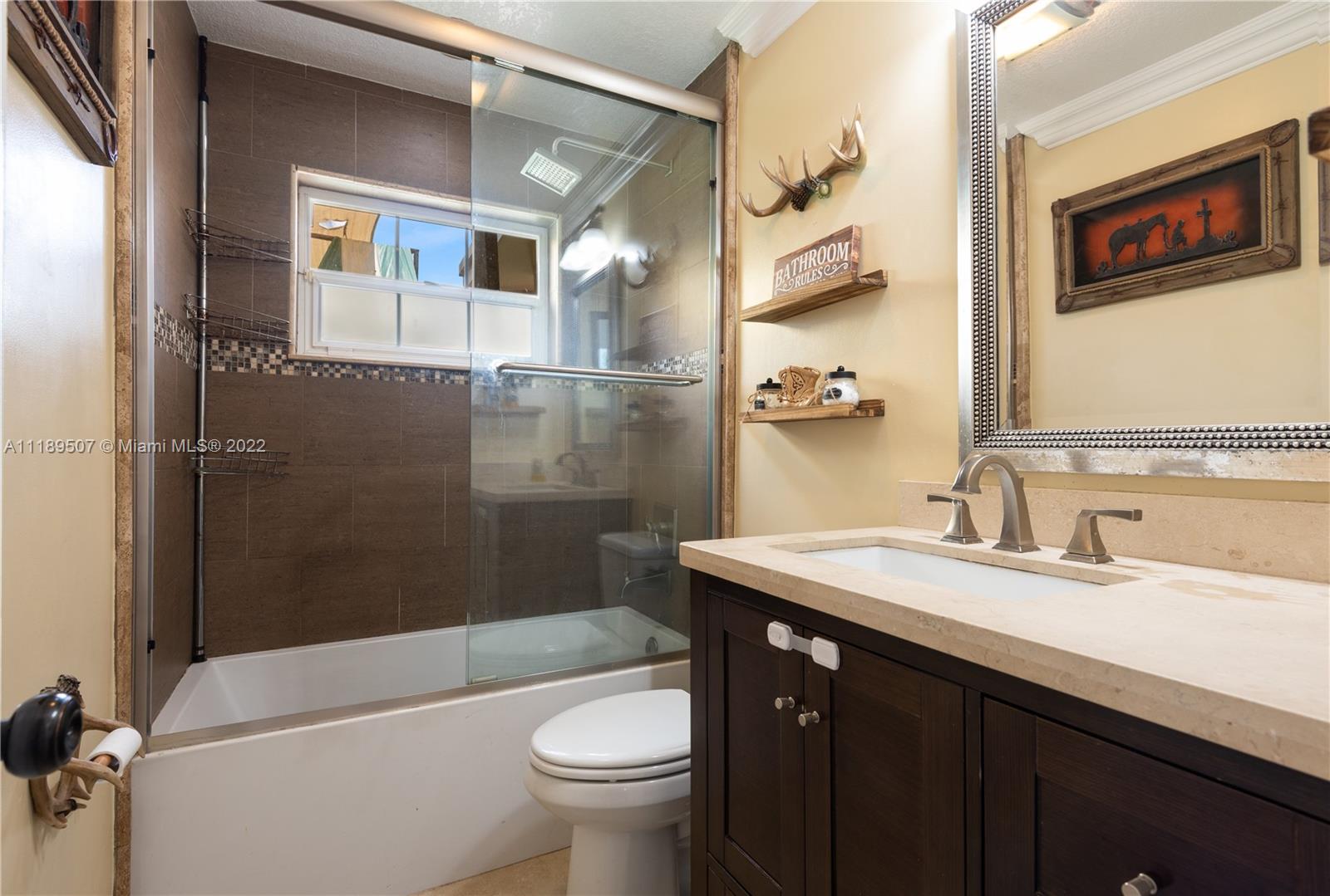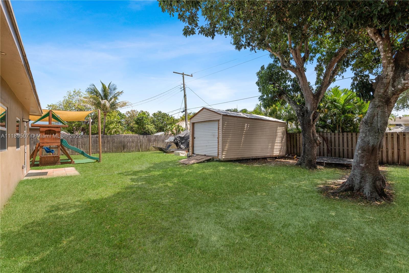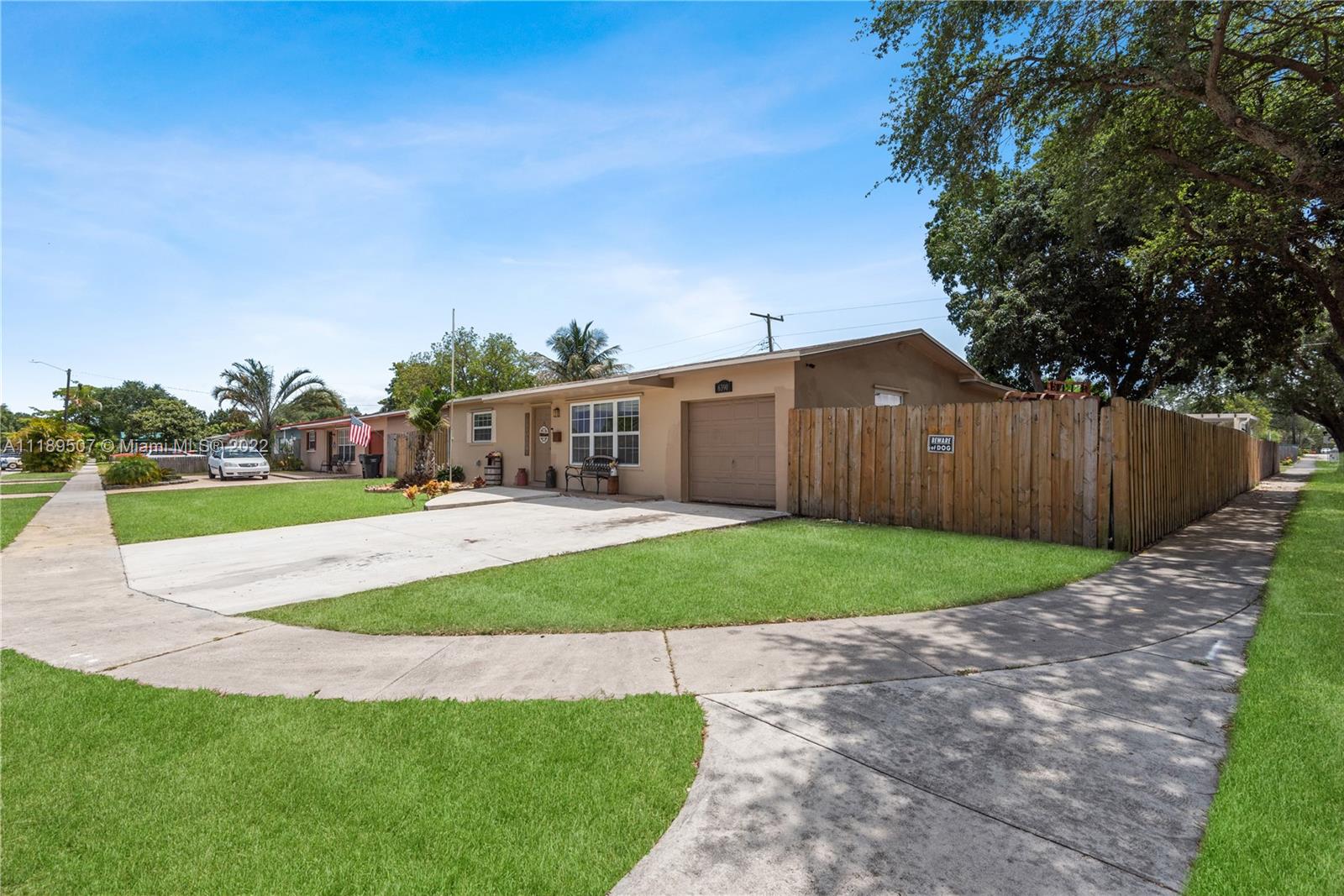 Immaculate 3/1 single family home with a one car garage on an oversized fenced corner lot in the heart of Hollywood. Home was originally a 2/1, the third bedroom was completed with permits. Interior features include: modern/plank tile flooring throughout, newer cabinetry, granite countertops, stainless appliances and recessed lighting in the kitchen, updated bathroom with shower/tub combo. Hurricane Impact windows, front door and garage door (manual), Roof was replaced in 2011, Tankless Hot Water Heater (2015), Septic Tank serviced (9/2021), Alarm system with four cameras, Oversized backyard is perfect for entertaining family and friends, plenty of room for a pool, large storage shed is staying. Great location, close to major highways, shopping, etc. No HOA
