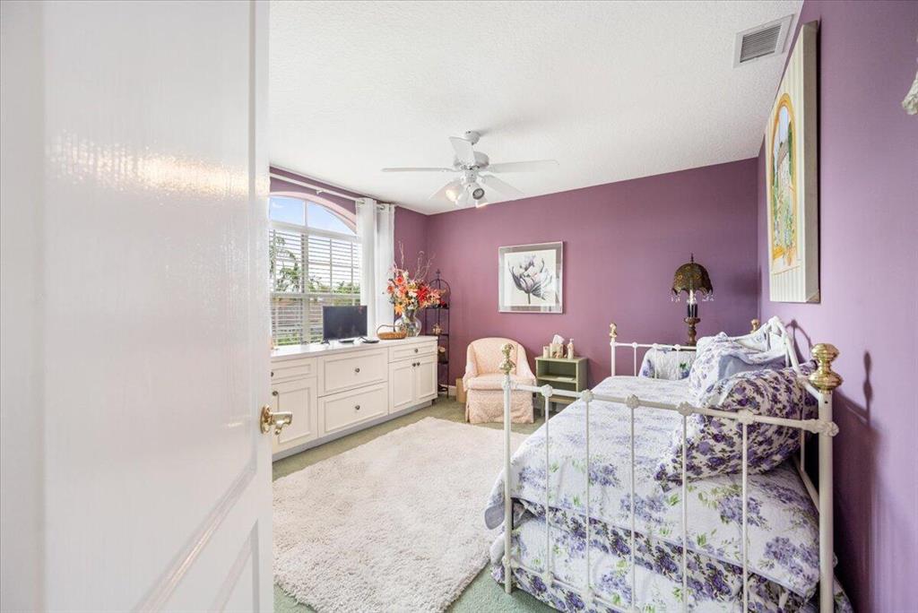 Major Price Reduction! Very sought after down stairs Master Bedroom and second downstairs bedroom / bathroom design. Directly on the Heritage golf course this 3Bd/3Ba plus loft home boasts stellar water/golf views of holes 4,5,6 and 7 from the fully screened back yard patio area and great room. The owner has recently updated with fresh paint of the entire interior. along with a new roof in 2020. Kitchen has warm wood cabinetry, granite counter tops, stainless appliances and flows into the great room for enjoying family and friends while entertaining. Book your showing now before it's gone!