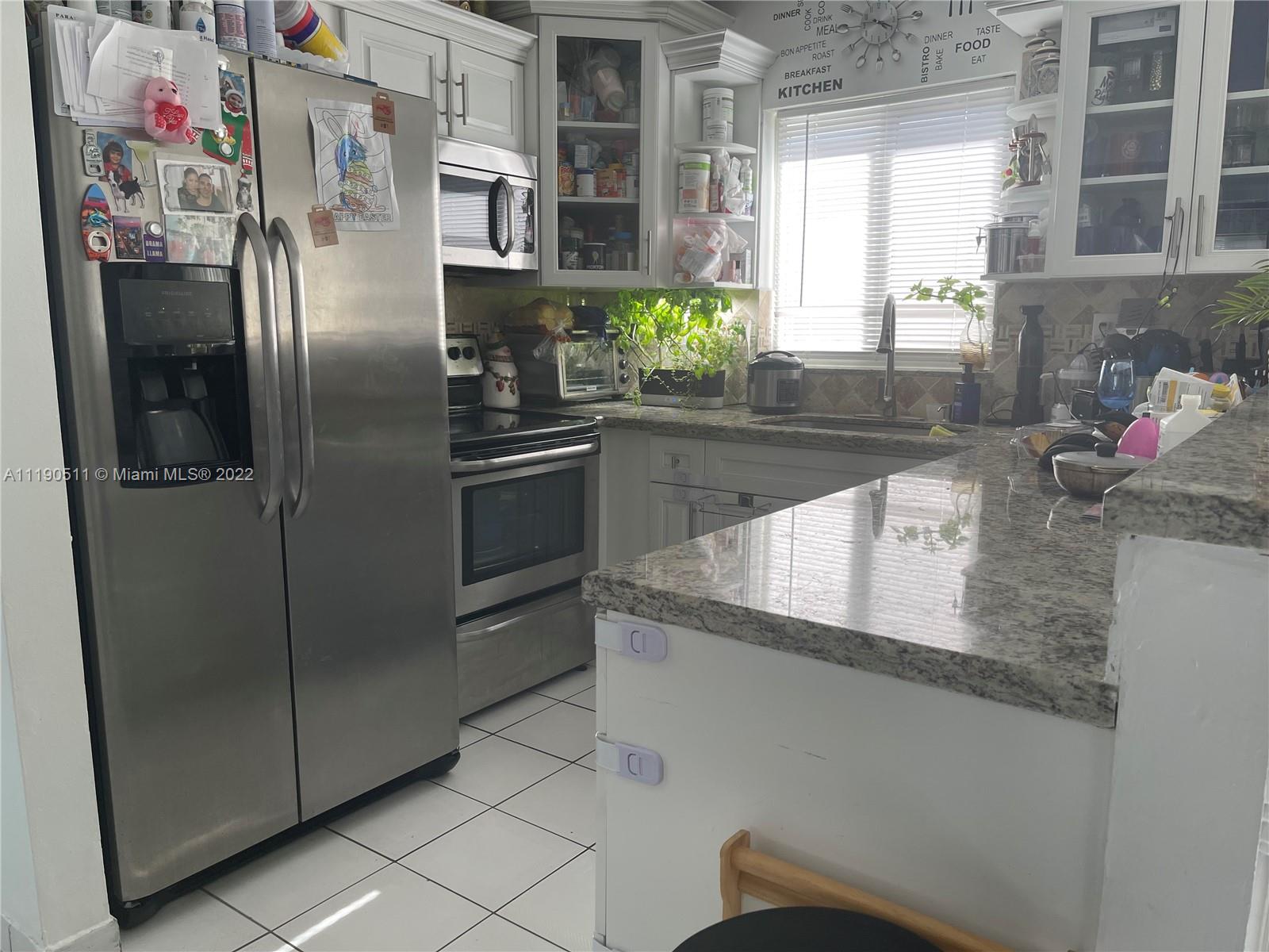 Light and bright 3/2 home in desirable West Hialeah location close to shopping/dining/schools. Open floor plan with separate living, dining, kitchen and family room areas. Completely tiled and ample closet space in all 3 bedrooms. New Wood kitchen cabinets with granite counters and tumbled marble backsplash, all new stainless steel appliances. Impact doors and windows, 2 years old a/c and 8 year shingle roof. Stamped concrete driveway and new aluminum fencing and gates around property. don't miss this opportunity to live in a sought after location.