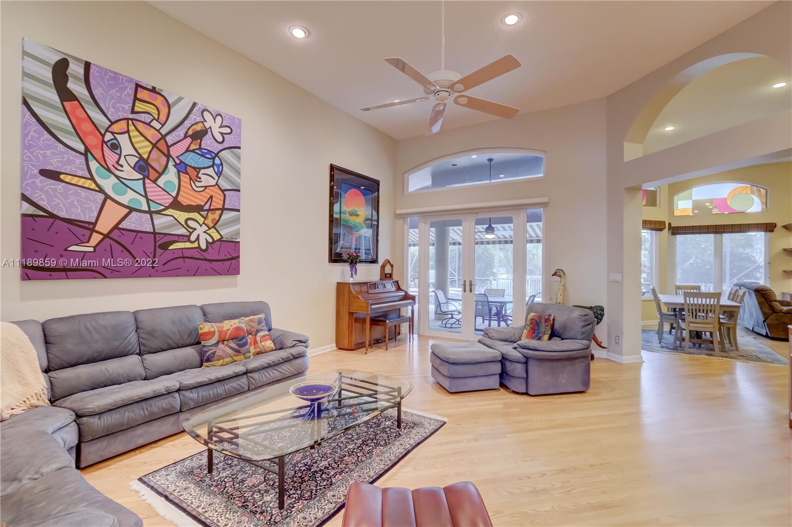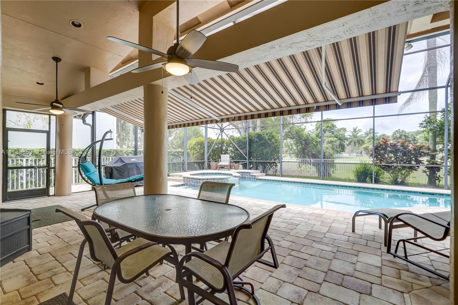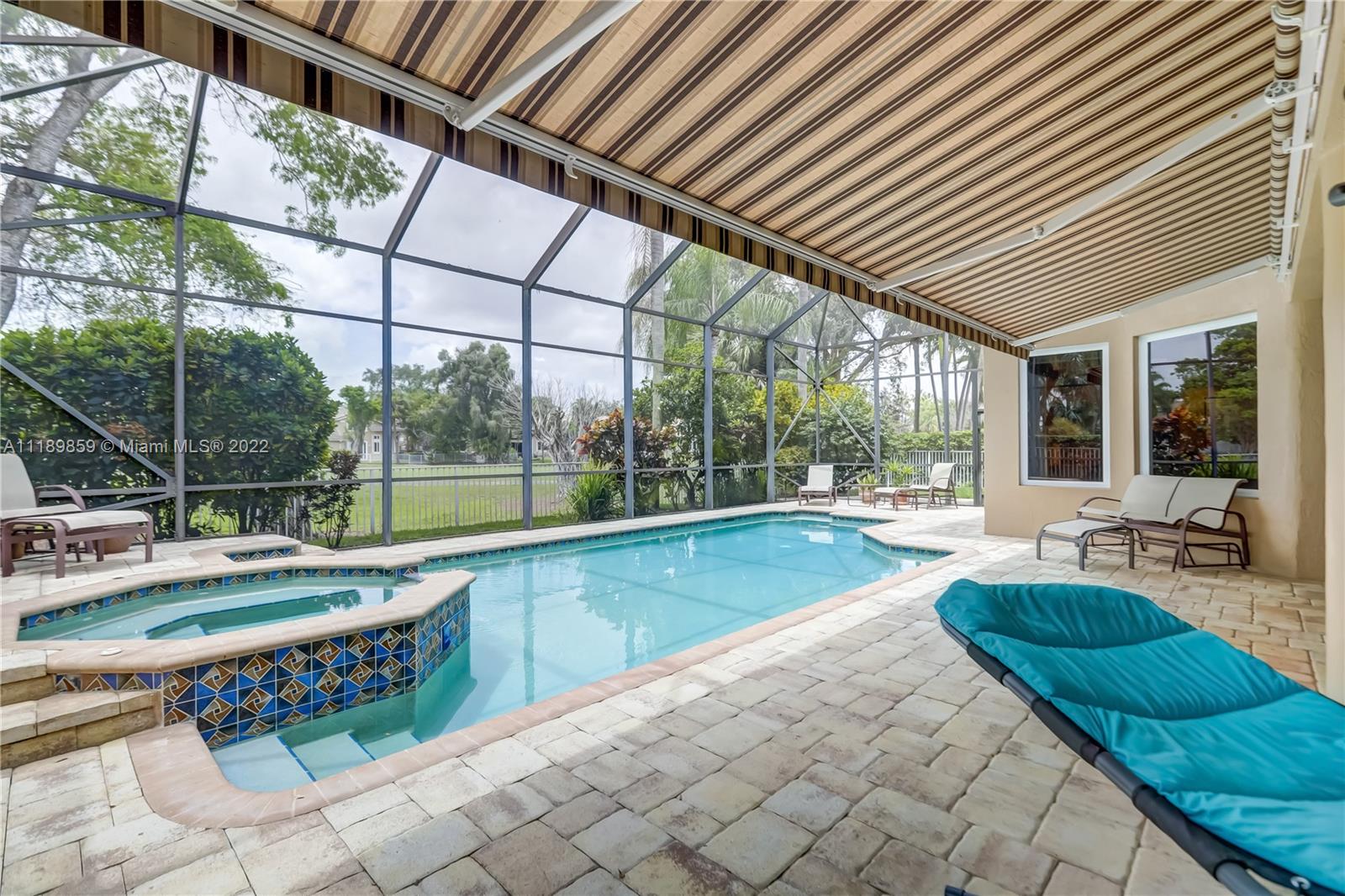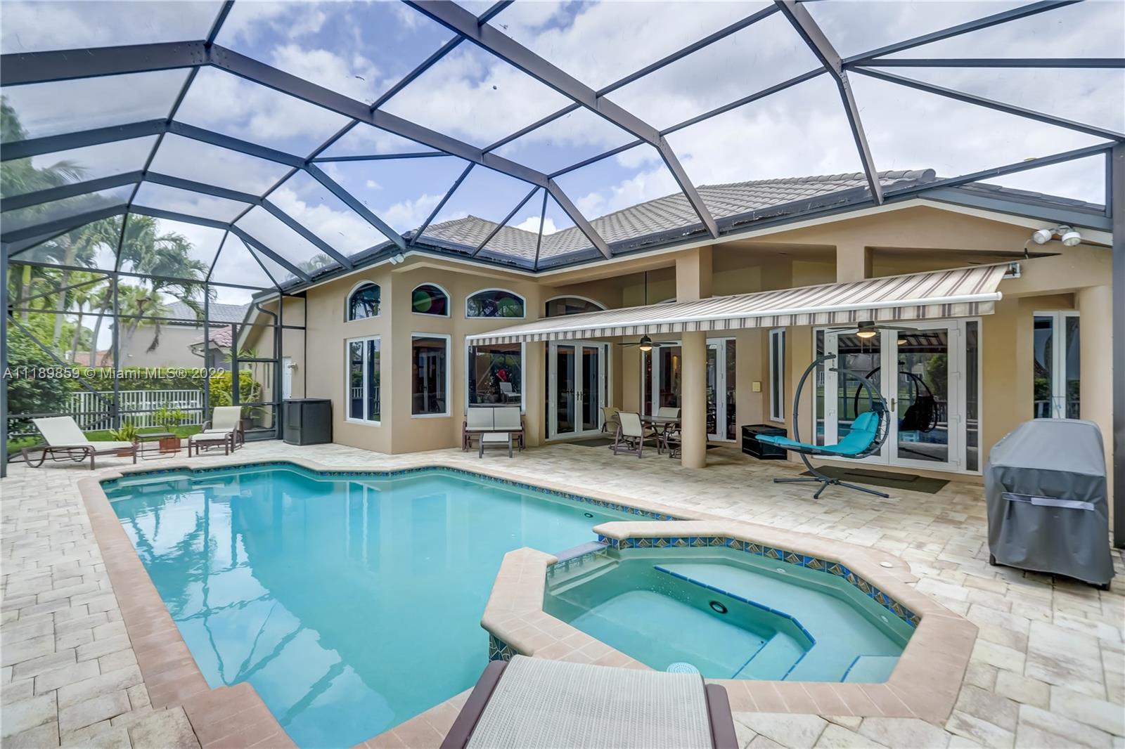 Stunning & highly desirable estate located in most sought after Santa Barbara subdivision in Grand Palms Golf Resort private and gated community! This home offers you the design & open floor plan layout everyone wants along with the protection of having a customized 50 yr lifetime aluminum roof, best in class high impact windows and doors, solar panels & full home generator back up. Custom large kitchen w island, granite counters, GE Profile SS appliances, updated bathrooms, marble, hardwood floors thru-out & carpet in bedrooms, huge main bedroom with updated bathroom. Large office w built-ins. Screened in resort style pool & spa right on golf course w views of the lake for great outdoor entertainment. A+ schools, great shopping nearby (Publix, Whole Foods, Costco) 25 min to FLL airport.