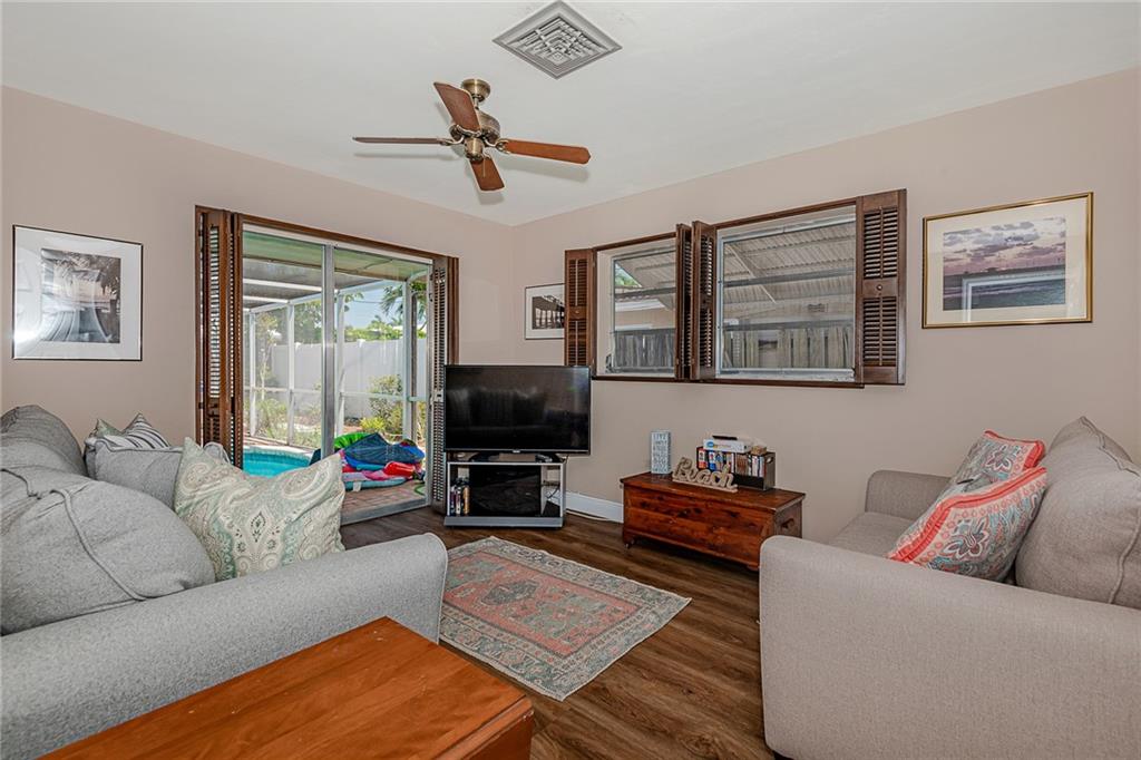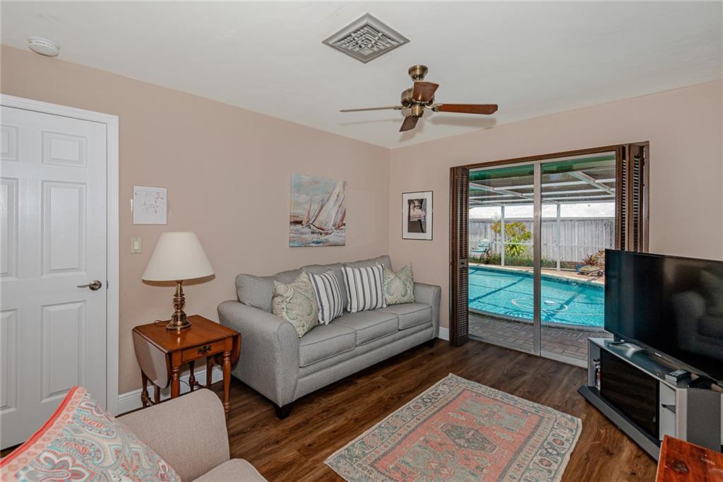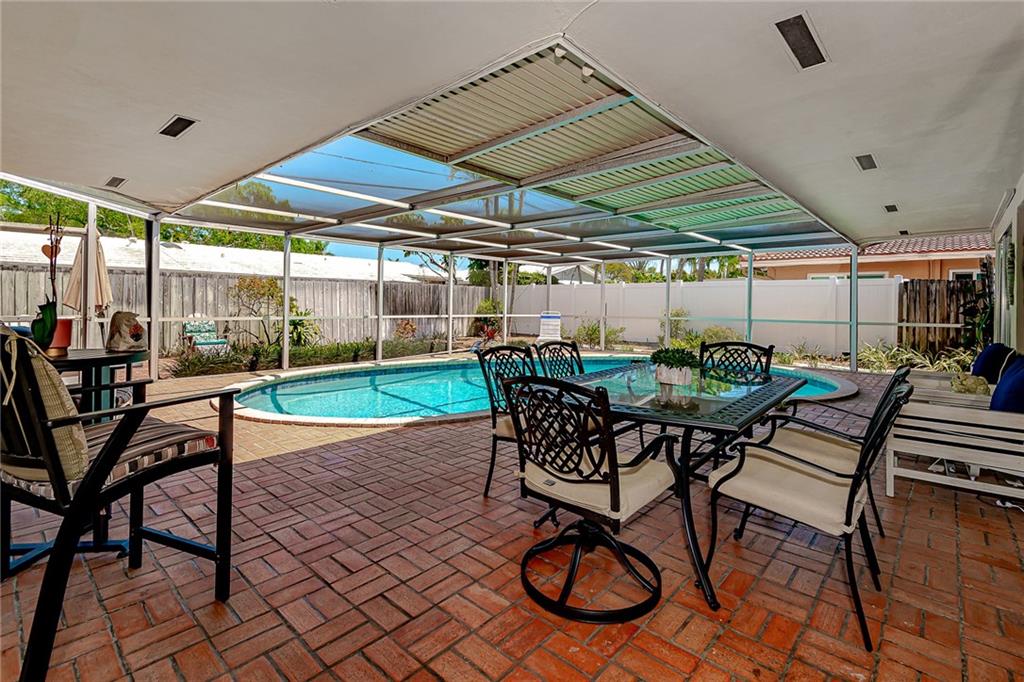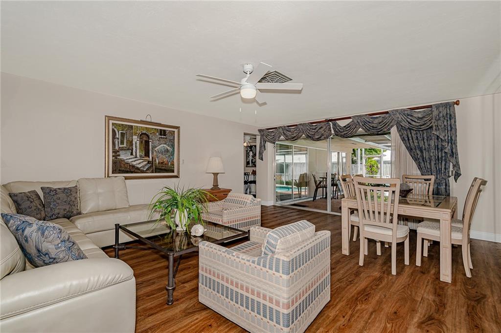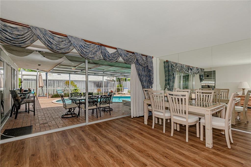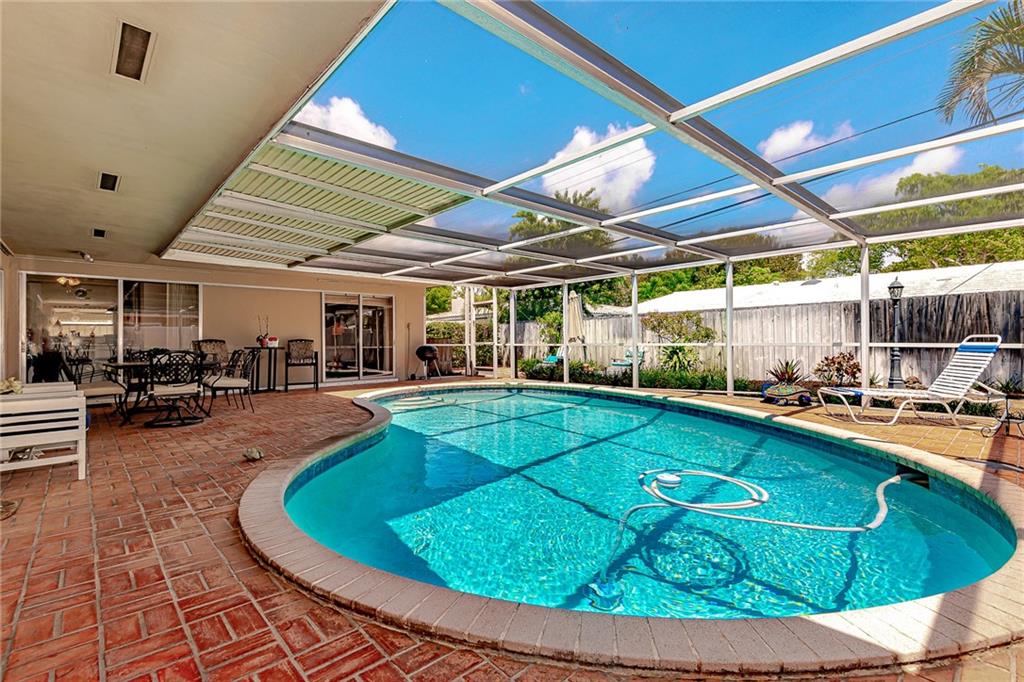 Lovely Pool Home in a Beautiful, perfectly located, and well-established neighborhood can now be yours! There are many recent updates including a gourmet kitchen with high-end stainless appliances, a gas stove, and tons of cabinets and storage space, as well as all new flooring throughout. The two bathrooms have been updated while keeping some Mid-Century charm. The 2-car garage is spacious and has lots of storage cabinets. This is a very friendly and quiet neighborhood, but You will really love dining by the sparkling, heated pool in your private lanai.