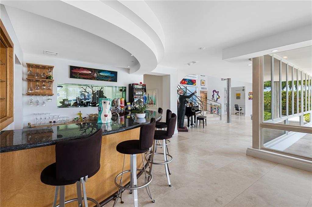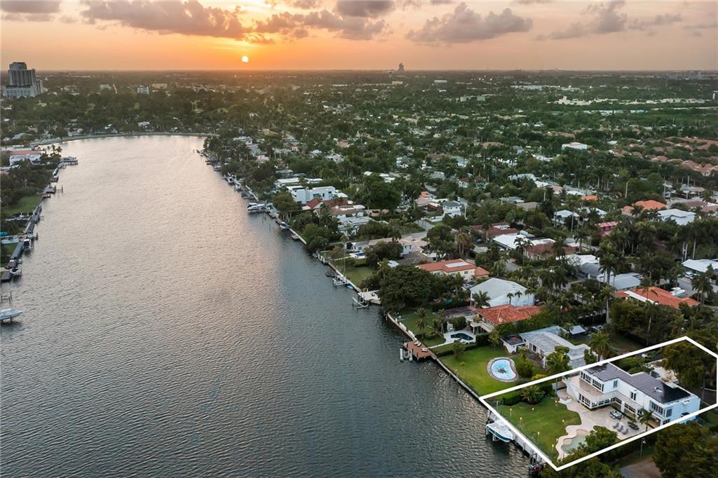 Overlooking Hollywood’s prized North Lake, this 5,000+ sq ft estate w/ unparalleled vistas has starred in movies, telenovelas + more. Are you its next star? Backyard paradise w/ 80-foot dock, boat/jet-ski lifts + no fixed bridges to ocean. Newly reinforced seawall, pool, jacuzzi, tile + pops of towering palms throughout. Only the finest materials – reinforced concrete, 108 solar panels, Sonos audio + new water, sewage, natural gas lines. Residence gleams w/ marble, natural light + one-of-a-kind semi-spiral staircase w/ Mondrian steel railing. Kitchen w/ granite counters + stainless steel appliances (commercial Thermador oven). Massive primary suite w/ water views, marble-clad ensuite + huge walk-in w/safe. Main level in-law suite + guest room in separate building. A dream location + home!