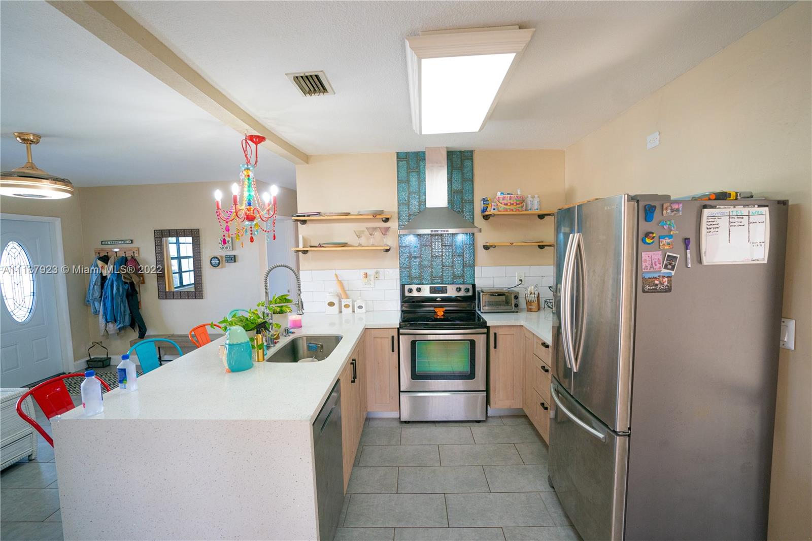 You will love this charming, immaculately-maintained 3/1 home with detached 300 sq foot workshop. NO HOA. Roof installed in 2019. Over-sized Florida room with lots of windows. Tons of natural light in this bright home. Remodeled kitchen with quartz countertops and stainless steel appliances. Separate dining room perfect for Thanksgiving dinners. Covered patio provides sheltered walkway from main house to guest house. Room to park a boat under canopy for which seller has brand new canvas top available. New washer/dryer in separate laundry room. Great location for purchase as an AirB&B 20 minutes from Hollywood Beach, 5 miles from Hollywood Arts Park at Young Circle, and 3 miles from the Hard Rock Hotel & Casino.