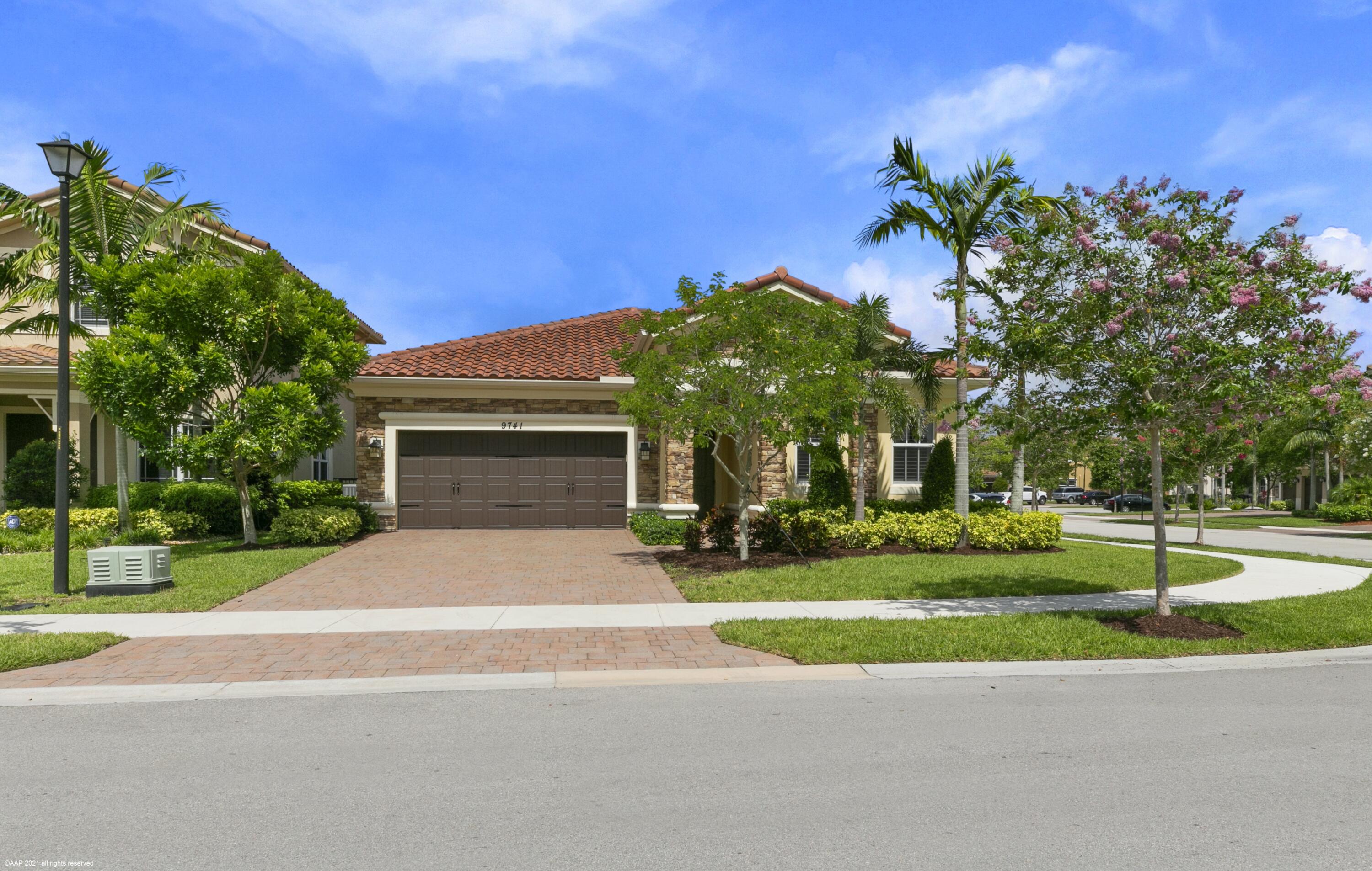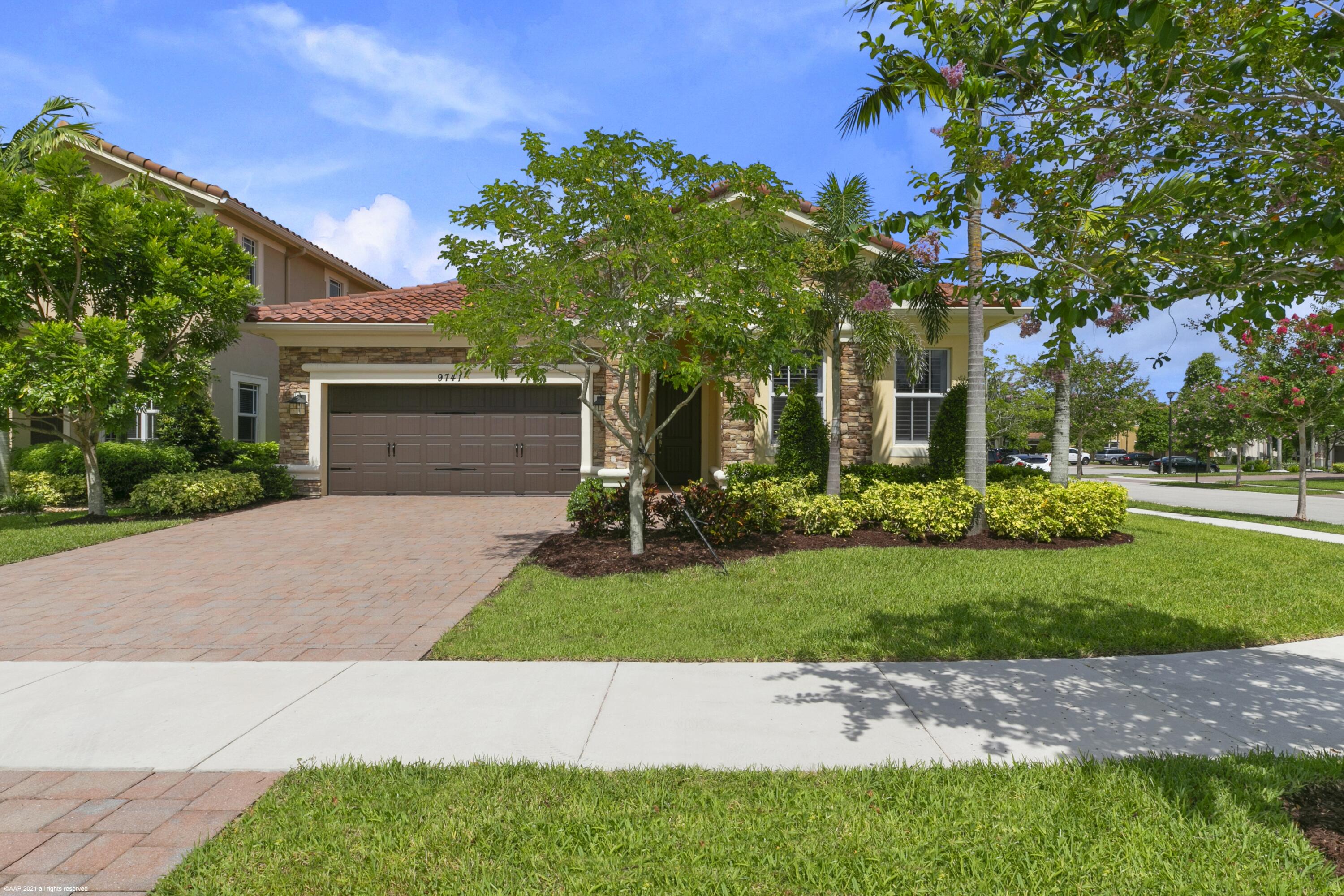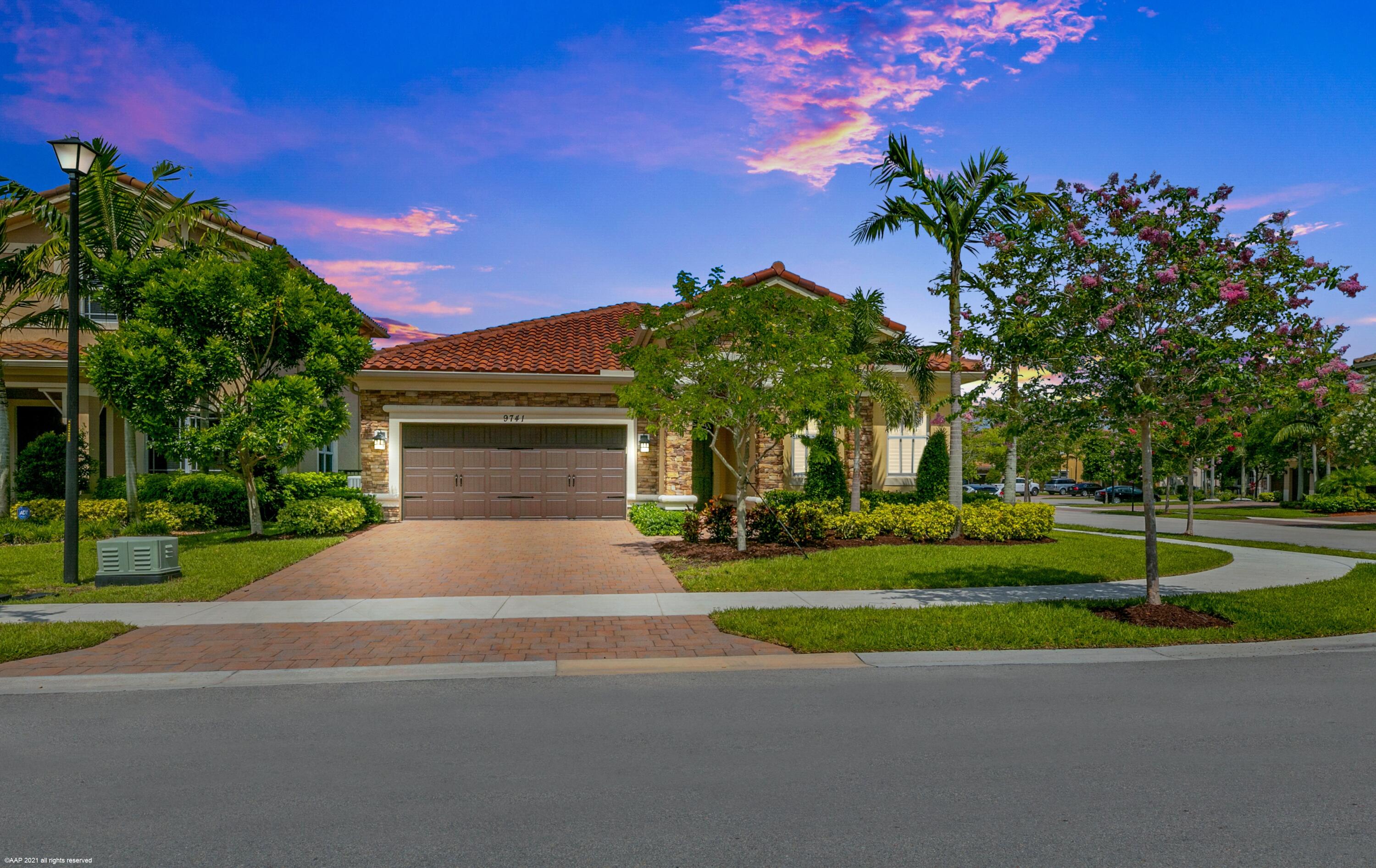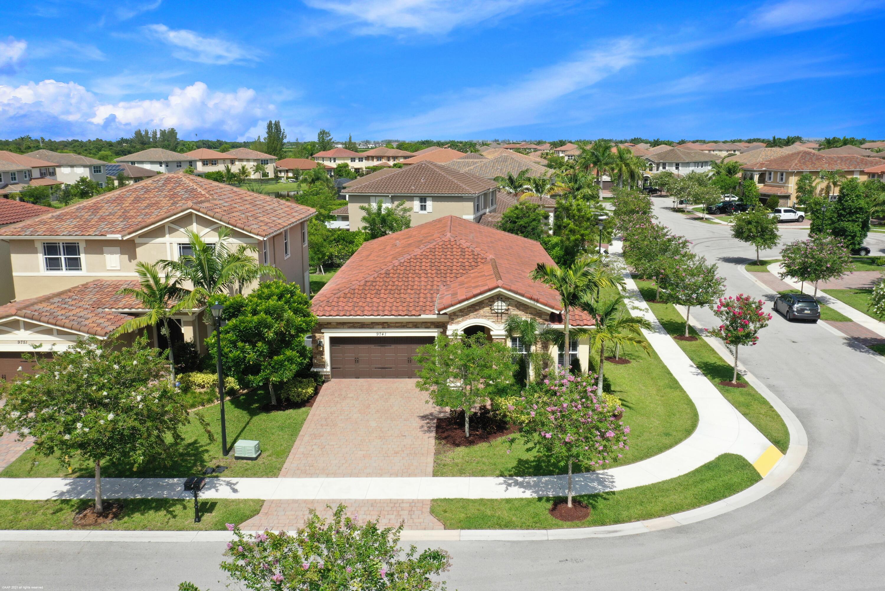Move-In ready 4 Beds, 3 Baths Carlyle Model on private corner lot. Foyer entrance to open, spacious living room & formal dinning room area. Spacious kitchen w/ granite counters, island, stainless steel appliances and double wall oven. Large primary suite w/ tray ceilings and his & hers walk in closets with separate shower and jetted tub & dual sinks. Features throughout include impact windows & door, upgraded plantation shutters on all windows. Enjoy living in this prestigious guard gated community w/ resort style amenities, sports complex with A rated schools.OPEN HOUSE: Saturday May 7, 2022 11:00AM to 3:00PM