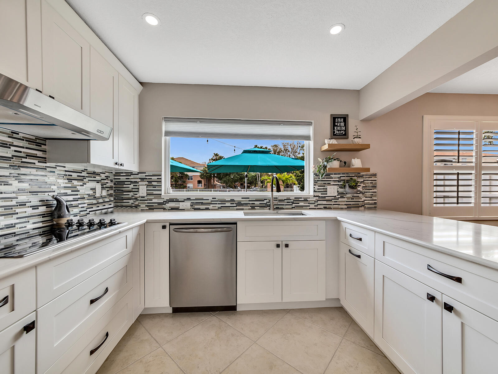 BRAND NEW ROOF!!! Stunning, LAKEFRONT 3 bedroom, 2.5 bath home on huge fenced-in, professionally landscaped lot with plenty of room for a pool. One of biggest lots in the community, with over 12.000 Sqft and expansive water views. Property has 1,982 sq ft and boasts a completely renovated kitchen with Frigidaire appliances. Every appliance in the house is less than 4 years old! All three bedrooms located on the second floor along with the laundry room with LG washer and dryer. Main bedroom has large walk-in closet and a massive bathroom with dual sinks, large tub and separate shower. Guest bedrooms share a jack and jill bath. Backyard is perfect for entertaining! Gated community, community pool, playground and great school district. Low HOA. Great opportunity. MUST SEE!