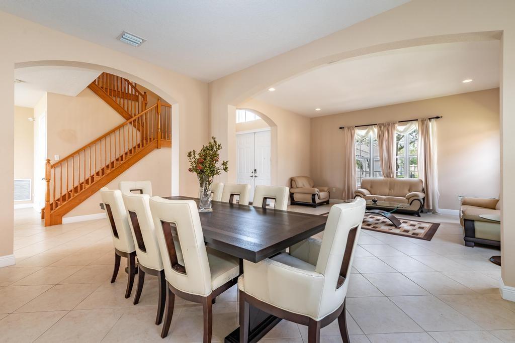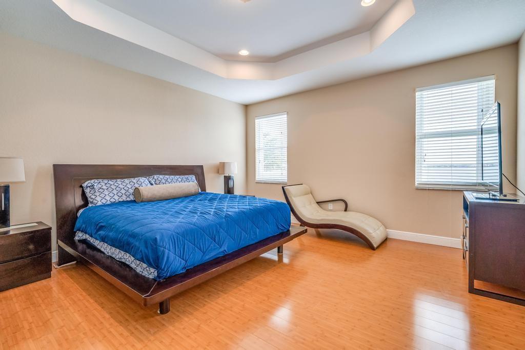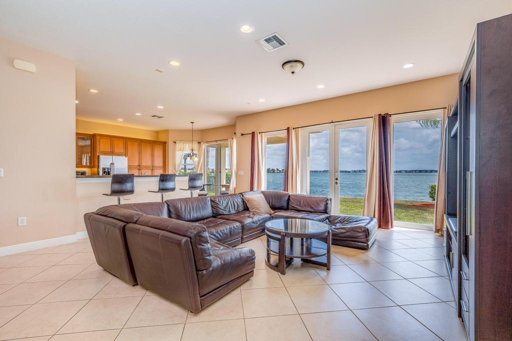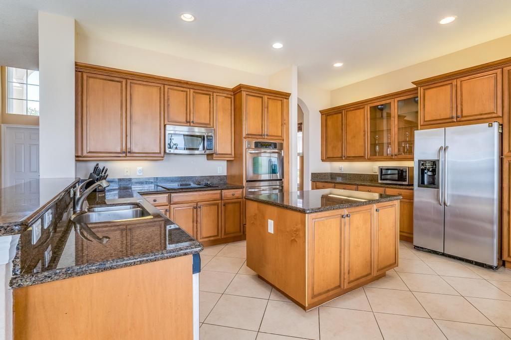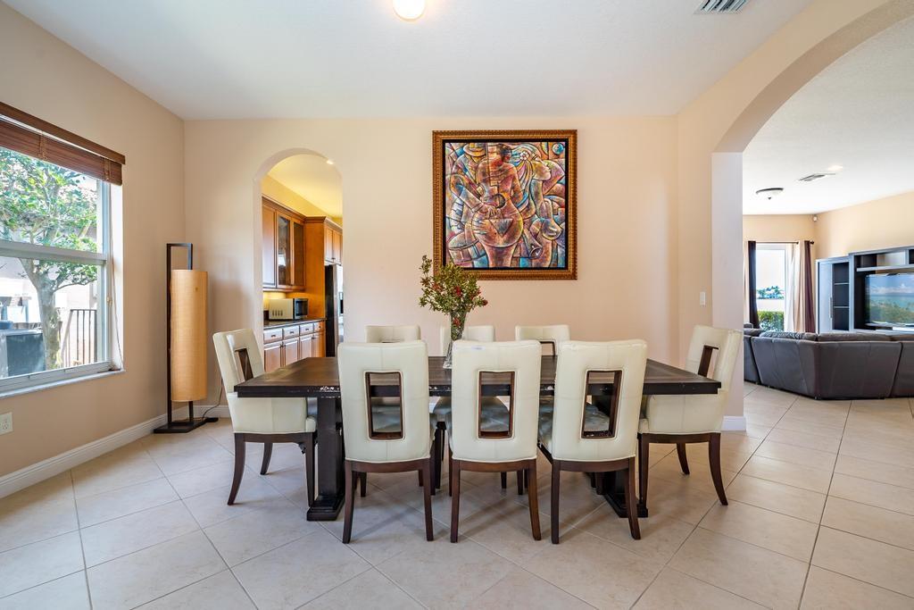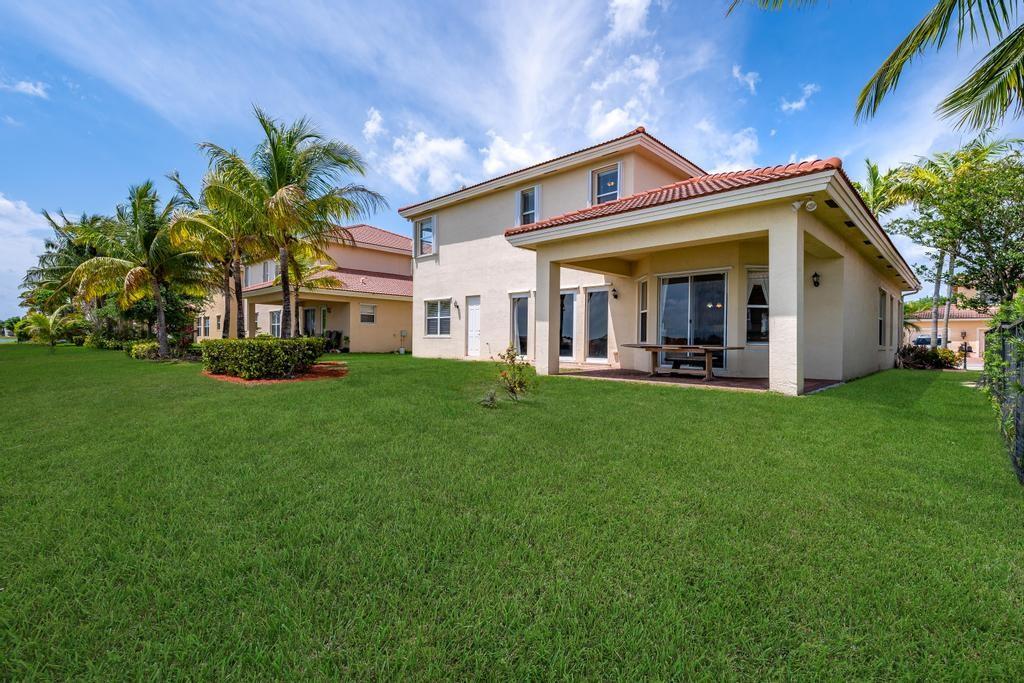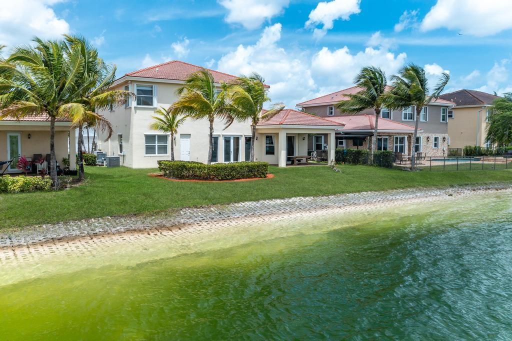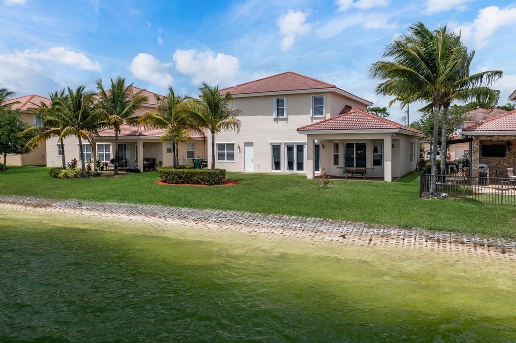 Welcome to Sunset Falls! 5BR/3BA lakefront home boasts an open floor plan, expansive flow through living and dining room spaces, and upgraded granite/stainless kitchen with a large center island. Accordion shutters on second floor make for easy prep for hurricane/inclement weather protection. Gorgeous wide water views with room for pool. Well maintained community features include resort style pool, clubhouse, gym, three tot-lot areas, and 24hr guarded visitor entrance. Sunset Falls is centrally located to schools, highways, hospitals, shopping/dining, airports, professional sporting arenas, and more. Easy to show. Welcome home!