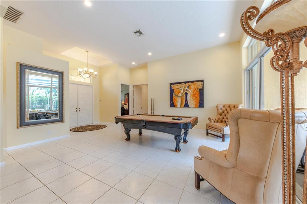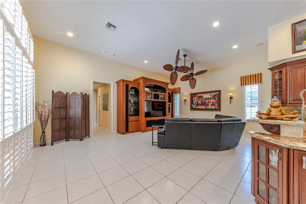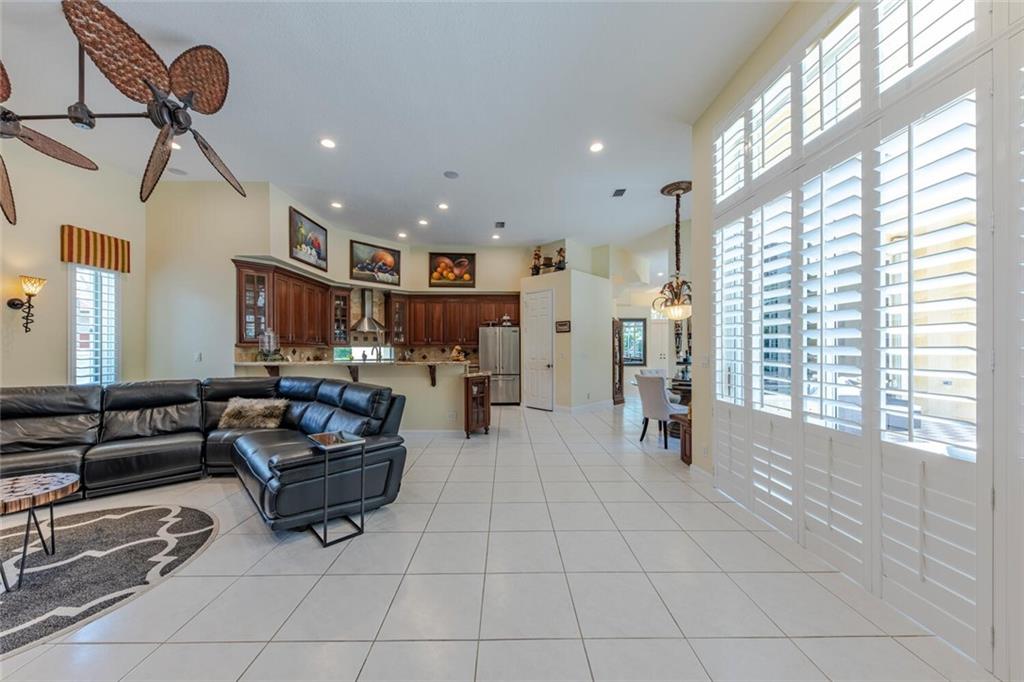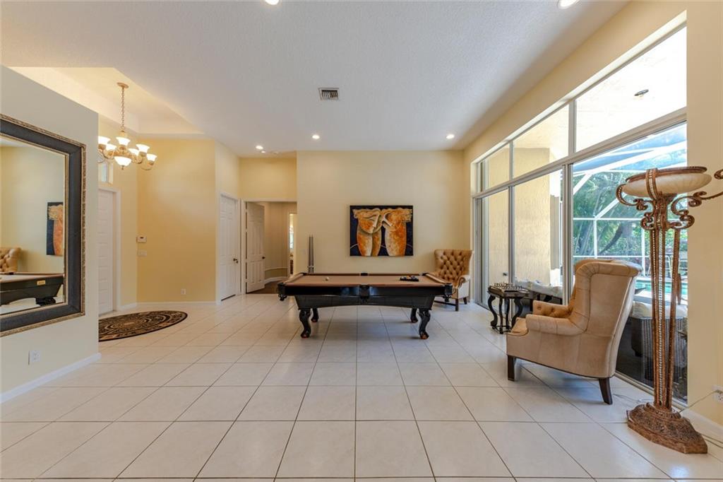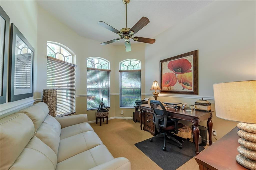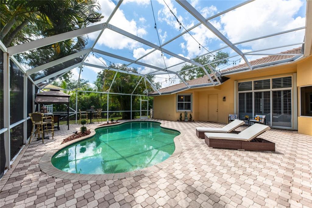 You do not want to miss this beautifully appointed and rarely available home in desirable Fox Ridge! This 5 bedroom (5th bedroom is currently an office), 3 bathroom home features a split bedroom plan; volume ceilings; open, gourmet kitchen with top of the line stainless steel appliances, wood cabinets, granite countertops & tumblestone backsplash; newer a/c's; plantation shutters; neutral tile in living areas & wood/laminate flooring in bedrooms; remodeled cabana bathroom; open courtyard outside of dining room; large, screen-enclosed pool/patio; fully fenced & private yard; accordion hurricane shutters and much more! Fox Ridge offers an "amenity island" with tennis courts, playground, volleyball & walking path. Conveniently located within walking distance to all A-rated schools!