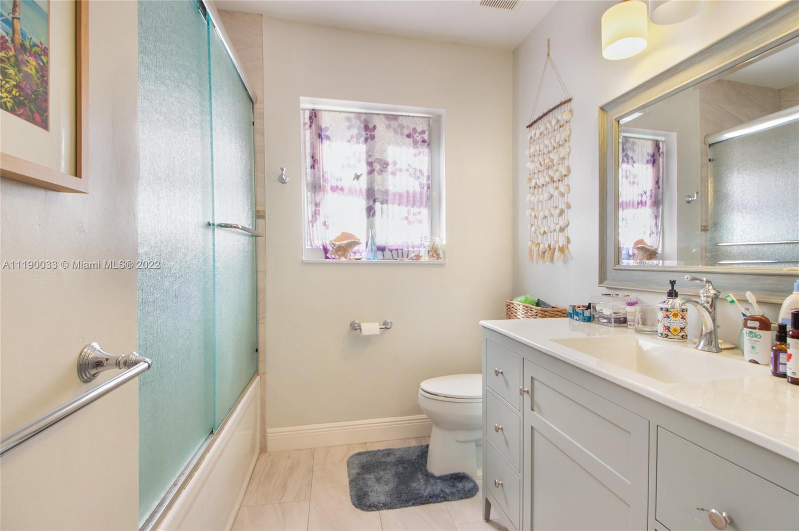 Completely upgraded property with one car garage in Miami Shores, Great for Entertaining! All renovations completed in 2016 including custom kitchen with high-end appliances, electrical, plumbing, AC, impact windows, etc. Recessed speakers in master bedroom, living room, and patio areas. Working fireplace and Hardwood Floors. Gas Appliances: Range/Oven, Dryer, Water Heater for low electricity bills. Fenced in Oversized Lot with landscape lighting, fruit trees such as mango, avocado, citrus, anon. Gas hookup for grill, pergola, beach sand lot for fire-pit, and room for a pool. 100 Sq Ft Separate shed with French Doors and lots of natural light, used as an art studio. Completely new septic system done in 2016. Roof 2011.
