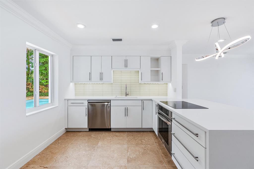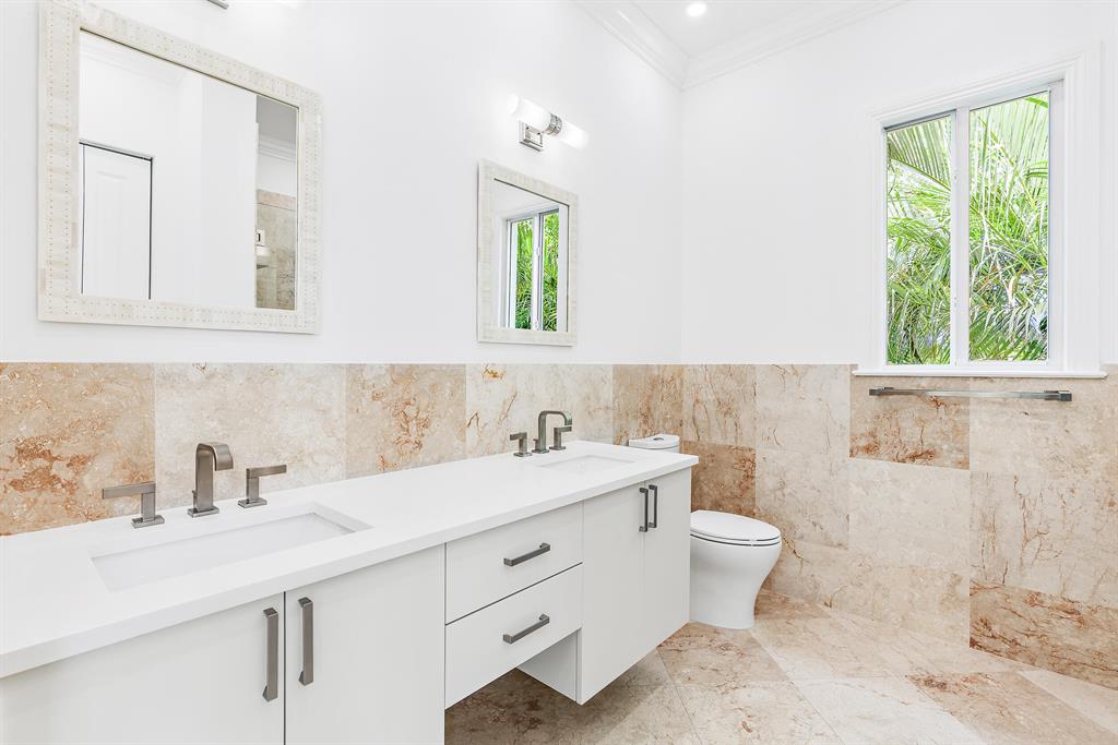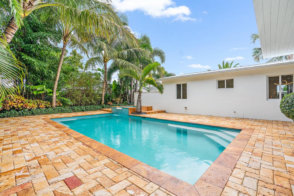 Fabulous SOSO Key West Modern home on a quiet street awaits you. 4 BR, 4BA impact windows and doors. House just completed restoration, lots of new with new custom metal roof, wide plank white oak floors, & bathrooms. Family Room and Master with 10 foot ceilings transform this family home. The open kitchen is updated to meet today's lifestyle including wine fridge.Pool area is magical by night with lush tropical landscaping and lighting. Heated saltwater pool and spa with pool waterfall. Two outdoor showers with hot and cold water. The Master's private balcony looks over the pool capturing views east & south to catch the morning sunrises.Walking distance to Intracoastal waterway, biking, shopping and all services within minutes. Must see to feel the size and quality of the finish.