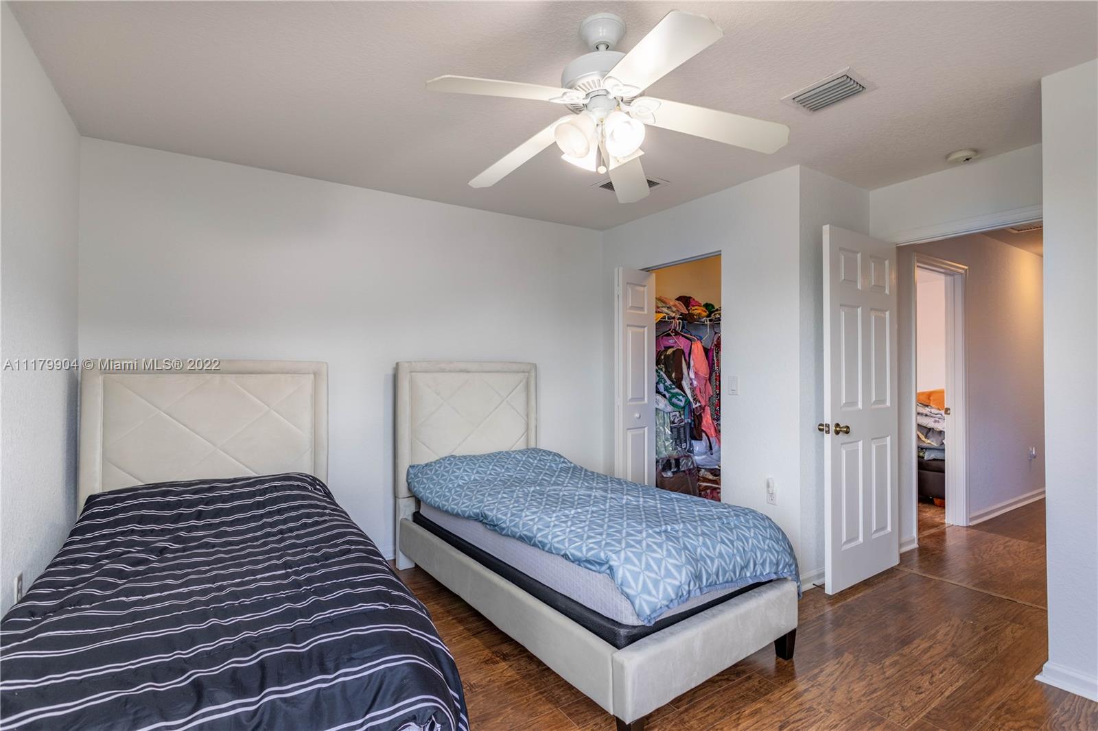 Spectacular 5 Bed, 3 Bath home in the desirable neighborhood of Silver Falls. This spacious layout has one bedroom and full bathroom on the 1st floor, perfect for multigenerational families. Large kitchen with SS appliances and a breakfast nook over looking the screened in patio and lush backyard. The second floor features an oversized master bedroom with two walk-in closets, dual master bathrooms & a balcony with unobstructed water views over looking the serene lake. Laundry room on second floor with sink. Accordion shutters throughout, 3 car garage with plenty of space for storage. Full exterior of home, driveway and 2nd floor interior just painted.