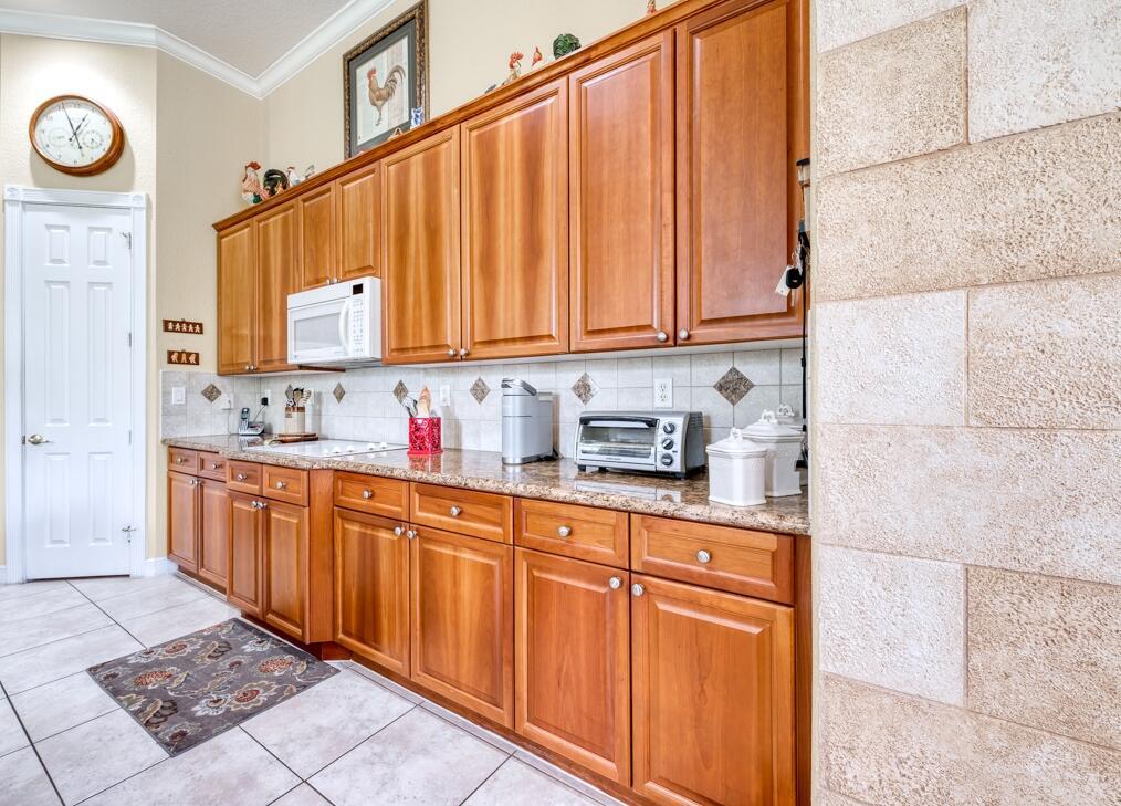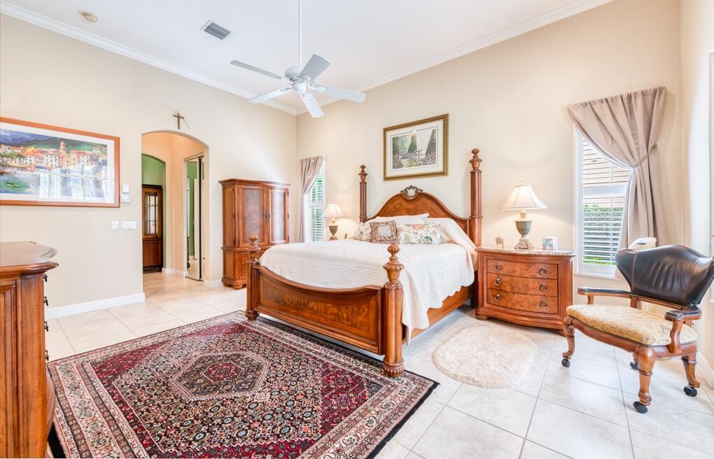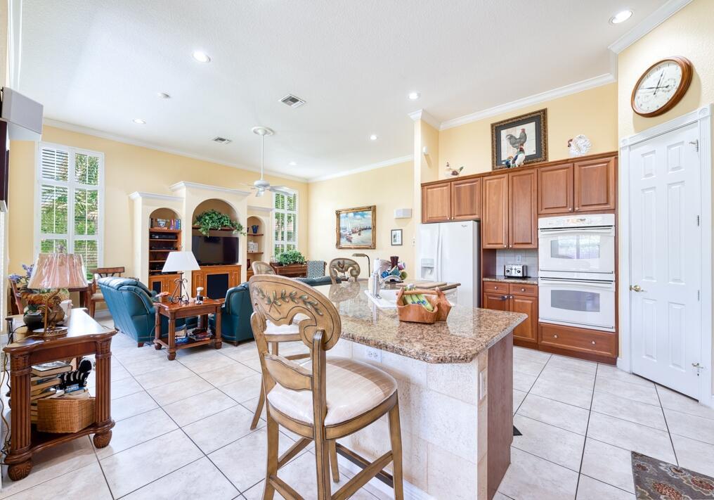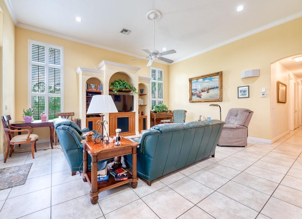 Welcome home! This luxurious one story estate home has a large side and rear yard(plenty of room for pool) with beautiful preserve and golf views.You will be impressed when you enter the grand foyer with the 12' ceilings and crown molding along with ceramic tile throughout. Formal living room includes coral fireplace and French doors leading to the lanai.The oversized master bedroom suite boasts separate sitting area and master bath with soaking tub, separate shower, his and hers sinks and makeup vanity.Three other bedrooms and two full bathrooms are situated on the other side of the house along with an office area and laundry with cabinets and sink.The large kitchen with granite countertops, double wall ovens,ceramic cooktop, pantry and breakfast nook overlooks the family room.