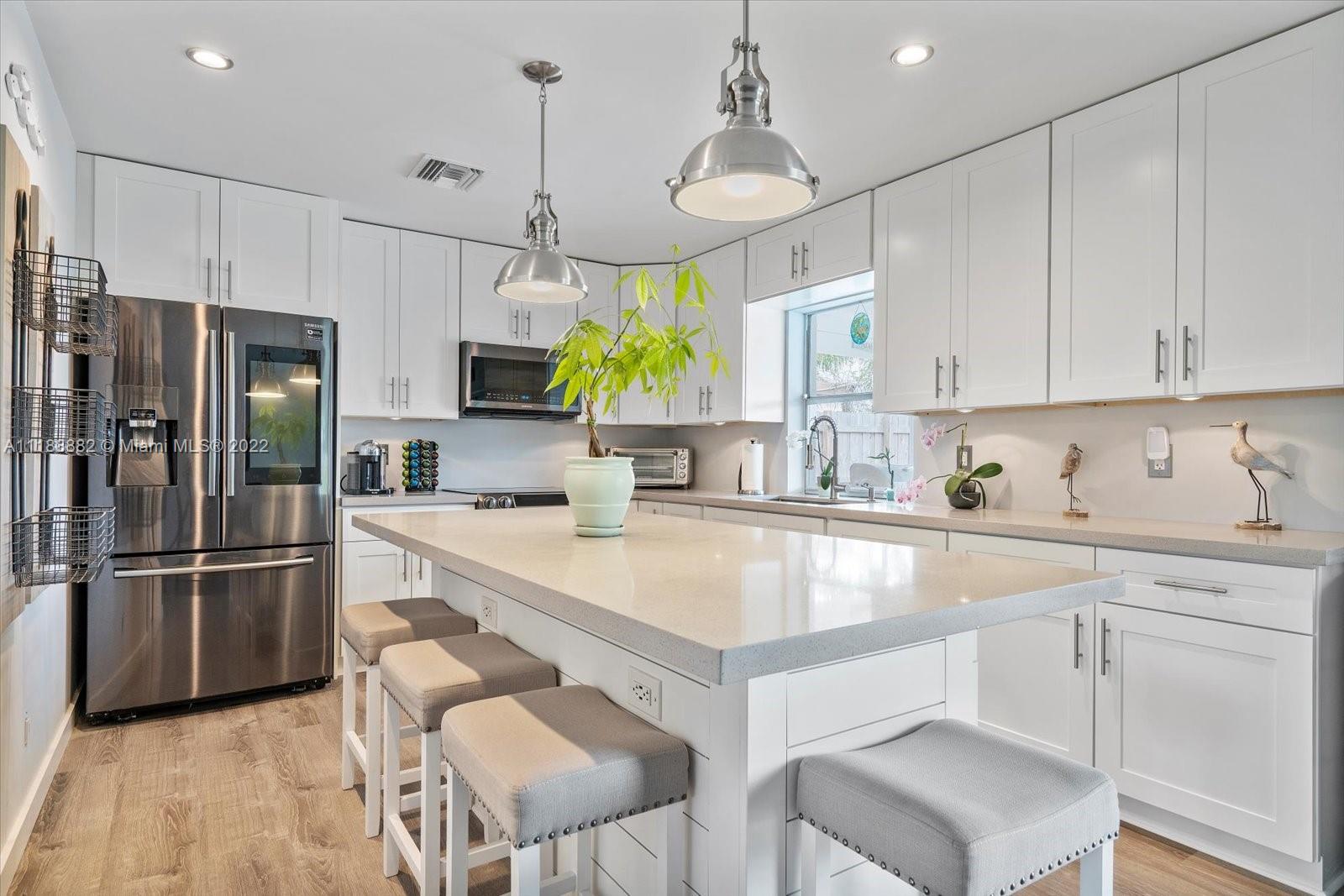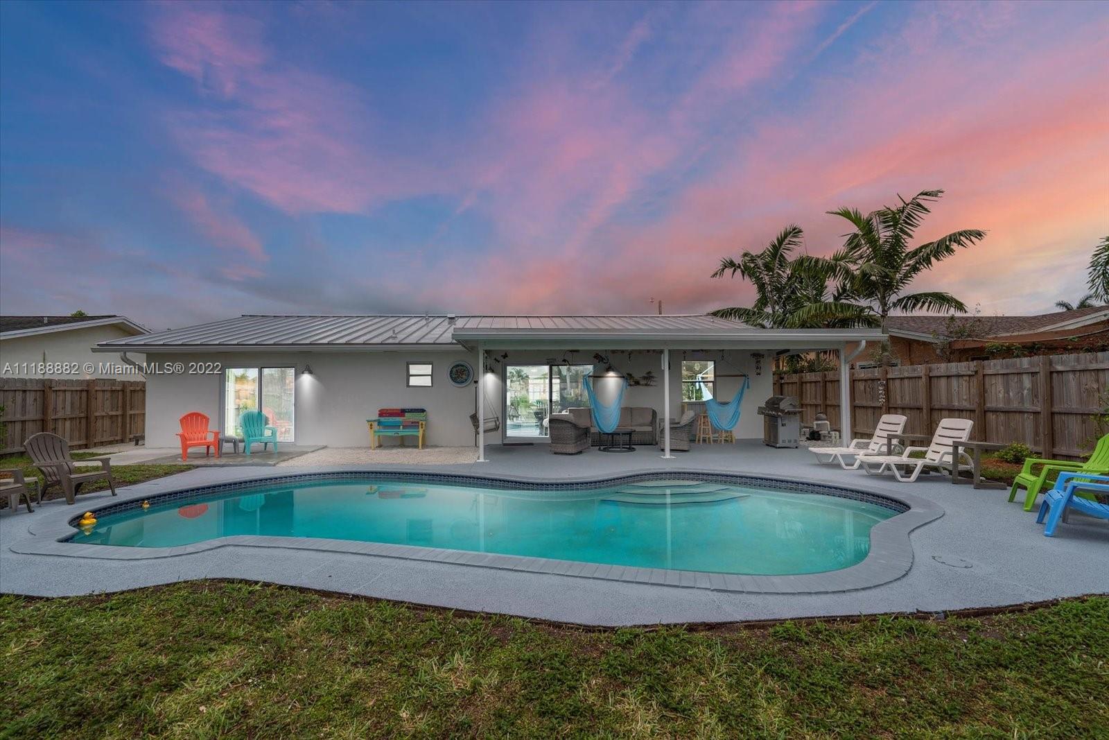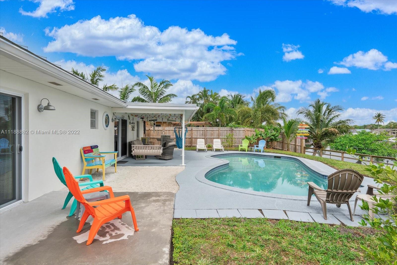 This is Waterfront living at its Best! Renovated 4 bedroom 2 bathroom home in Palm Aire Village is ready for your enjoyment. It has an open floor plan with water views, new flooring throughout, a brand-new kitchen & a new metal roof with a 50-year warranty. The kitchen features wood cabinets, stainless steel appliances, recessed lighting & quartz counters. The large primary suite has an amazing water view, access directly out to the pool & an expansive walk-in closet w/dressing area. Outside there’s a covered patio, pool, fruit trees & plenty of green space. Available w/furniture, exclusions apply. There’s plenty of parking with the garage and circular side driveway. Excellent neighborhood w/ NO HOA! Short Drive to the Beach, shopping, I-95 & the turnpike.