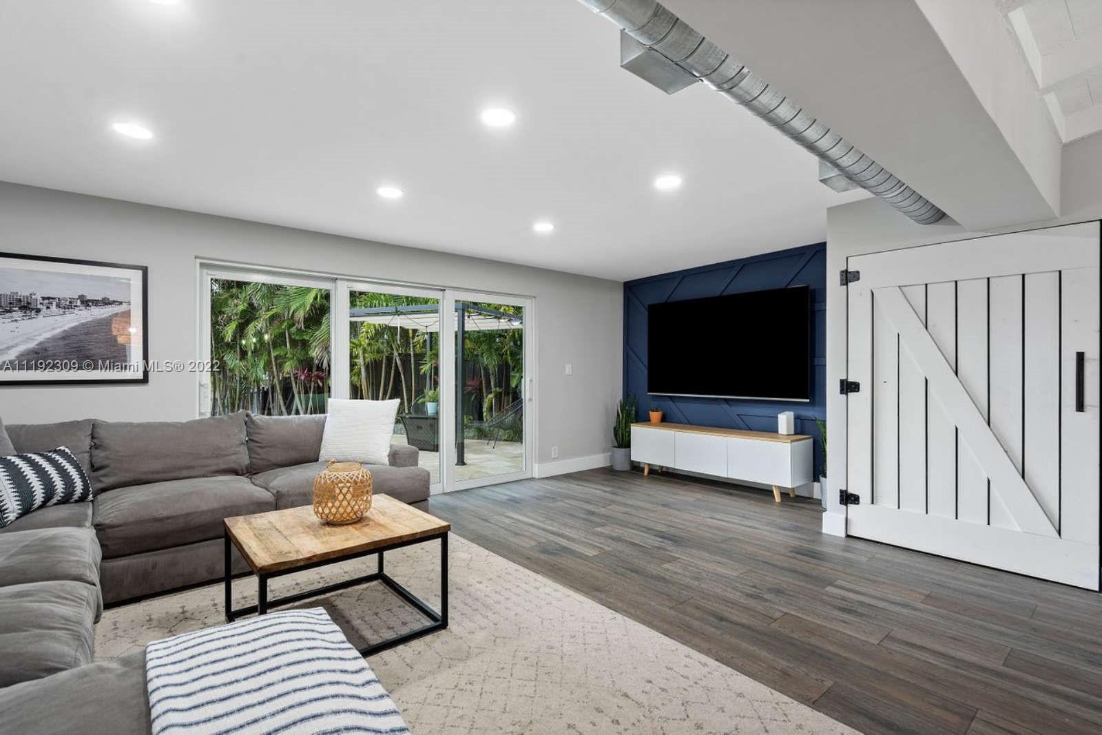 Welcome home to your waterfront paradise in Lauderdale Isles! Step through your double glass doors into the fully renovated interior. Vaulted ceilings with exposed ductwork open the space to an entertainers dream kitchen. The 11’ long quartz island, glass tile backsplash, soft close cabinetry, coffee bar and massive pantries make this kitchen the perfect center point of the house. Beyond the living room you’ll notice a 10’ glass door that leads to the new travertine deck and remodeled saltwater pool with iridescent glass tile. Dock your boat at your private dock with full ocean access and no fixed bridges. In addition, wood look tile throughout, indoor laundry, renovated bathrooms, large shed, Alexa controlled smart lighting, fenced yard, irrigation system, new gutters and much more.